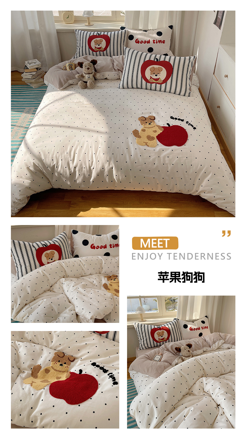 (总)美乐迪家纺 2025新款牛奶绒卡通绣花四件套,露丝的腊肠狗,彩点杯语,狗狗物语,猫咪小屋,猫咪杂物社,苹果猫,气球腊肠狗,天使猫咪,甜蜜伙伴,甜趣卡通,小狗的世界,雪人童话