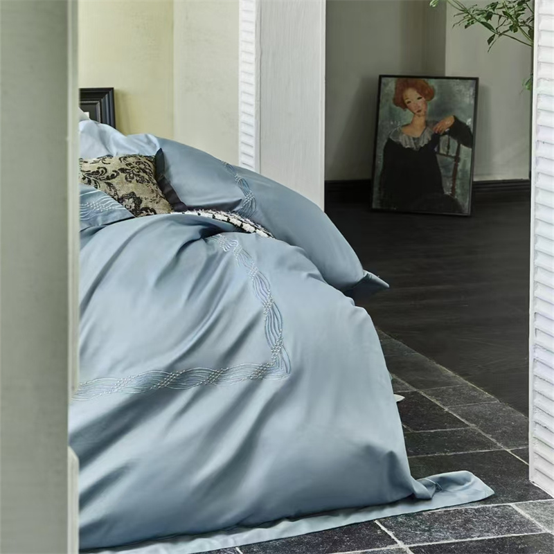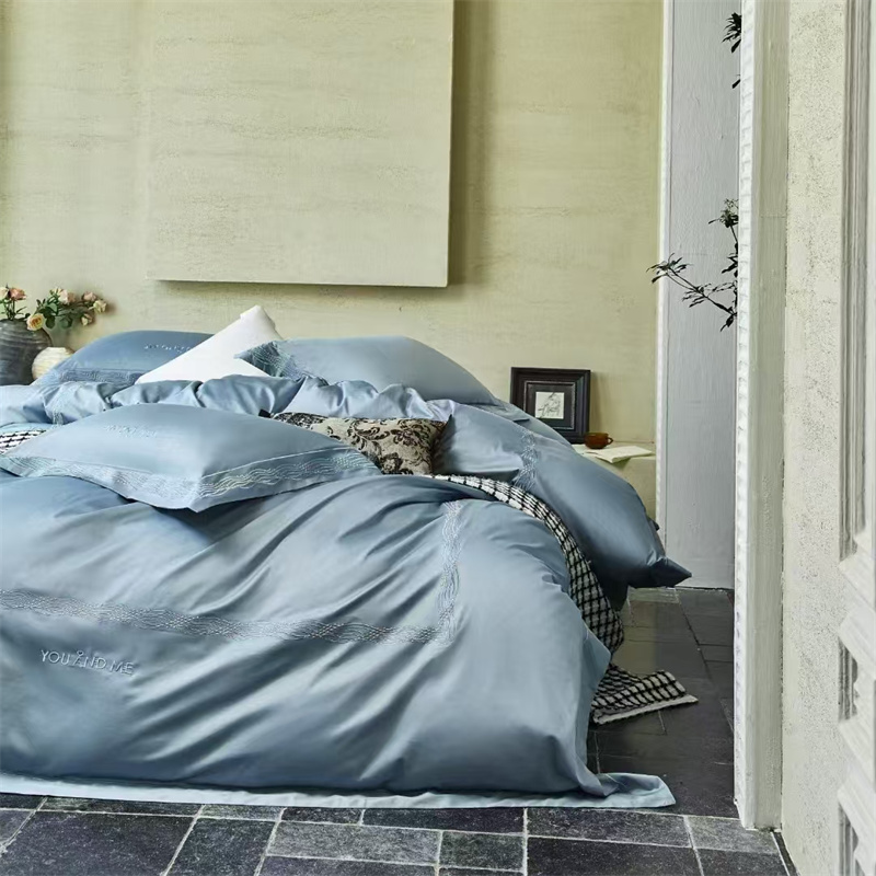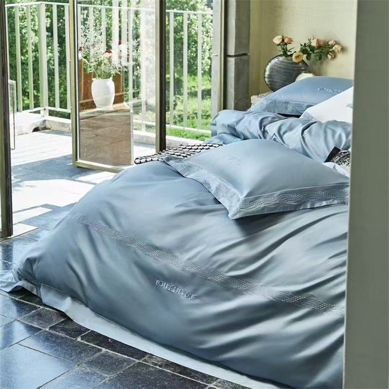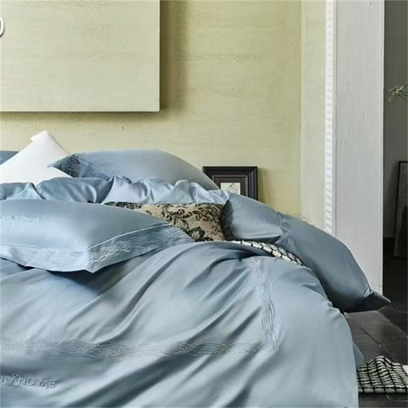 (总)玖玖爱家纺 2023新款120支贡缎长绒棉刺绣梦柔系列四件套,梦柔-香槟金,梦柔-香橙桔,梦柔-高级灰,梦柔-水蓝,梦柔-芙蓉玉