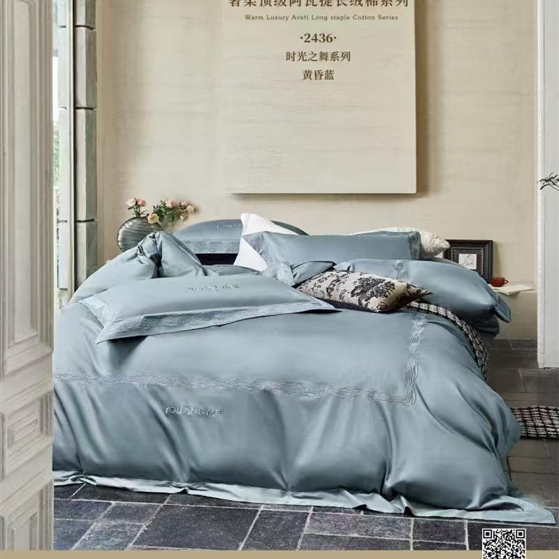 玖玖爱家纺 2025新款180支植物甑棉四件套-时光之舞 时光之舞-黄昏蓝