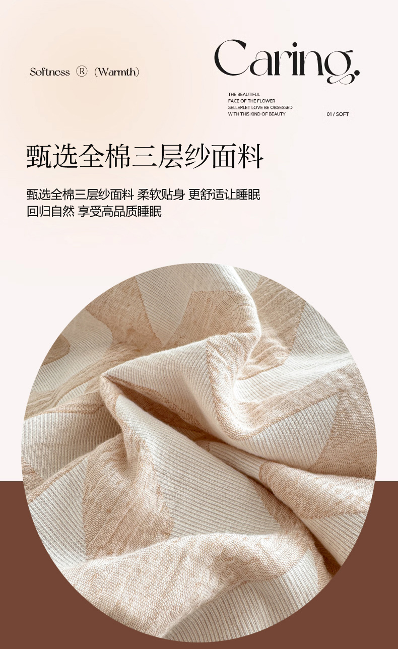 当前位置: 91家纺网 > 商品网购 > 床品套件 > 四件套 > 全棉普通四件套 > 眠博士 2025新款AB版简约时尚A类全棉三层纱系列四件套 三层纱-慕斯-杏