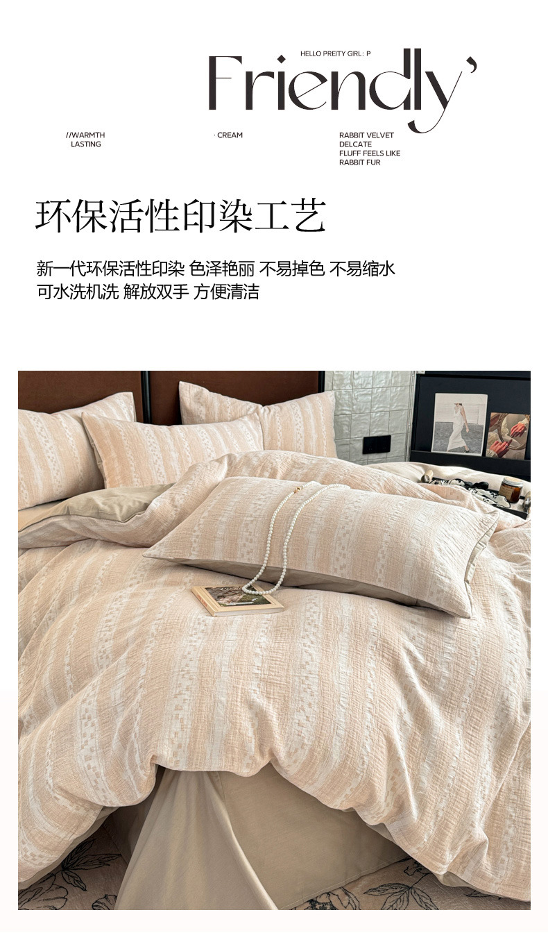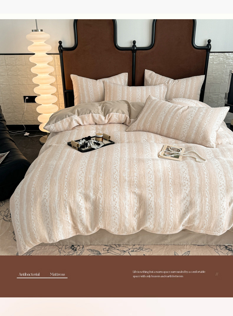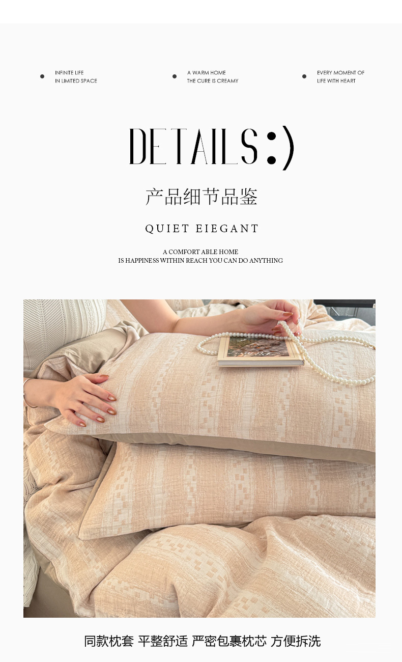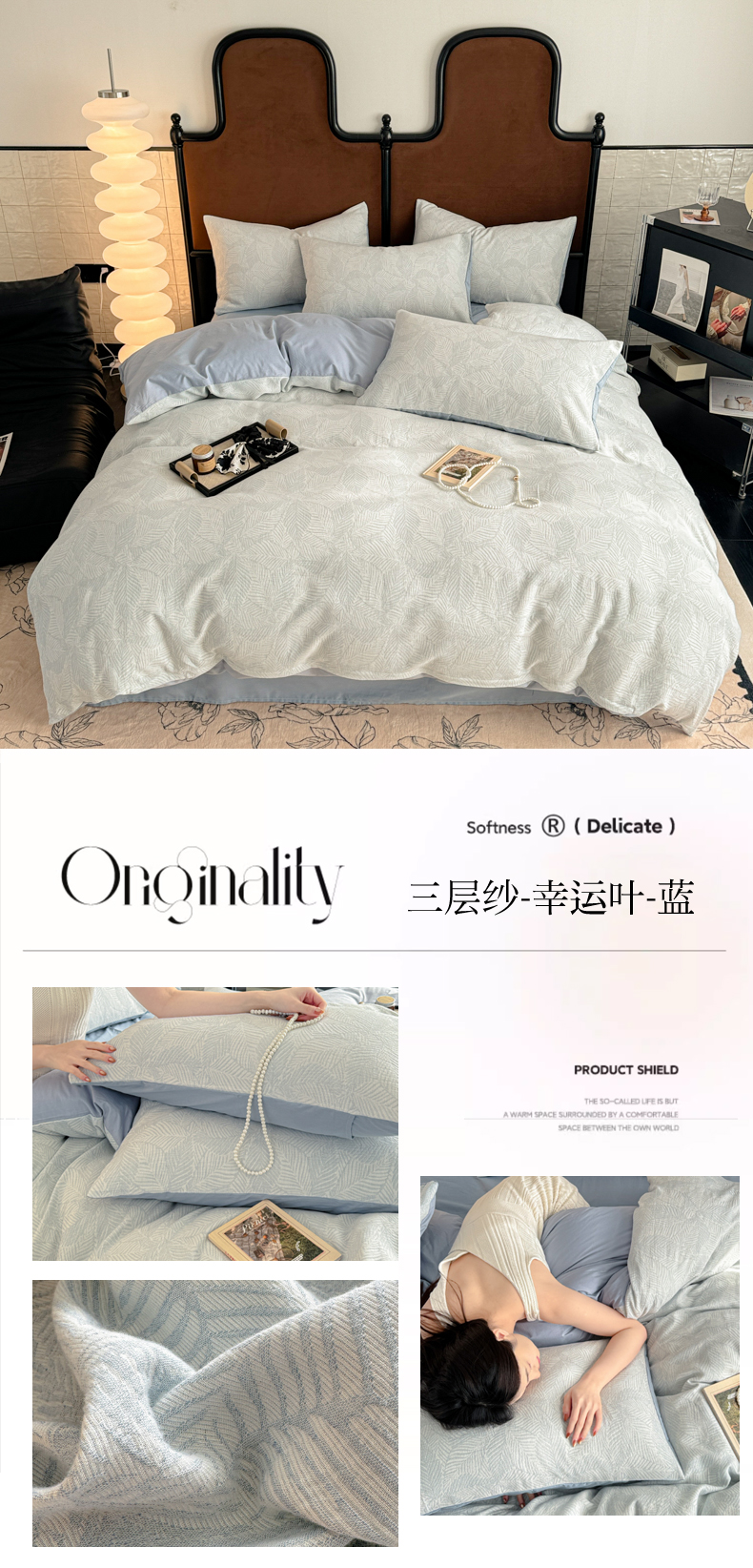 当前位置: 91家纺网 > 商品网购 > 床品套件 > 四件套 > 全棉普通四件套 > 眠博士 2025新款AB版简约时尚A类全棉三层纱系列四件套 三层纱-时光-杏