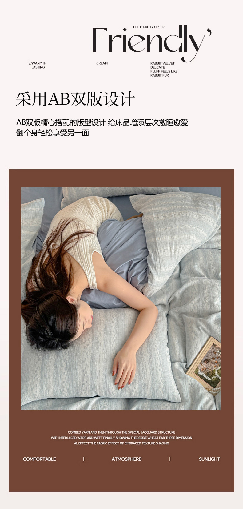 • 91家纺网 家纺一手货源 找家纺 (总)眠博士 2025新款阳离子兔兔绒四件套,兔兔绒阳离子-波纹豆沙,兔兔绒阳离子-波纹暖咖,兔兔绒阳离子-波纹深灰,兔兔绒阳离子-抽条暖咖,兔兔绒阳离子-抽条浅灰,兔兔绒阳离子-抽条雾蓝