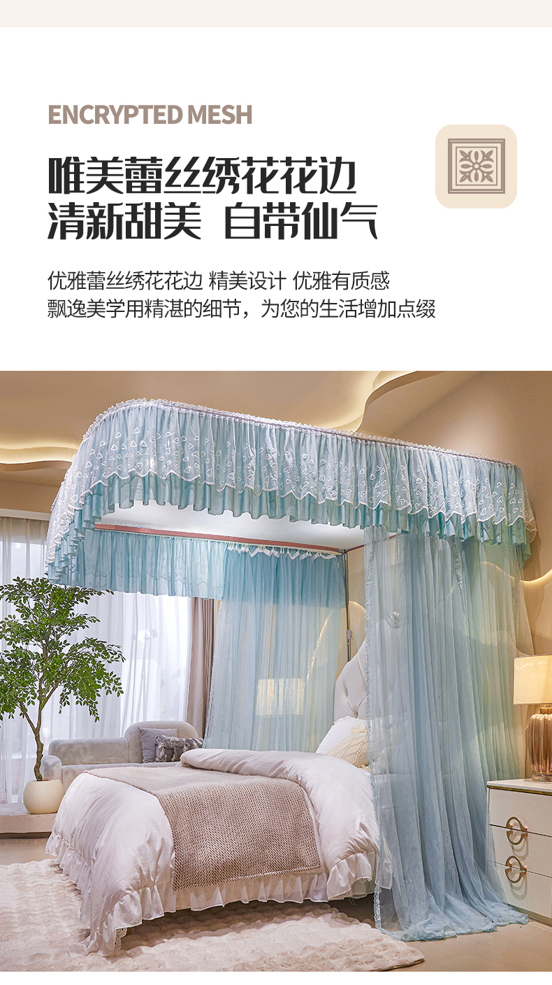 商品名称:(总)夏彩 2025新款绣花加柔加密铝合金接口高度可调节轨道蚊帐88620