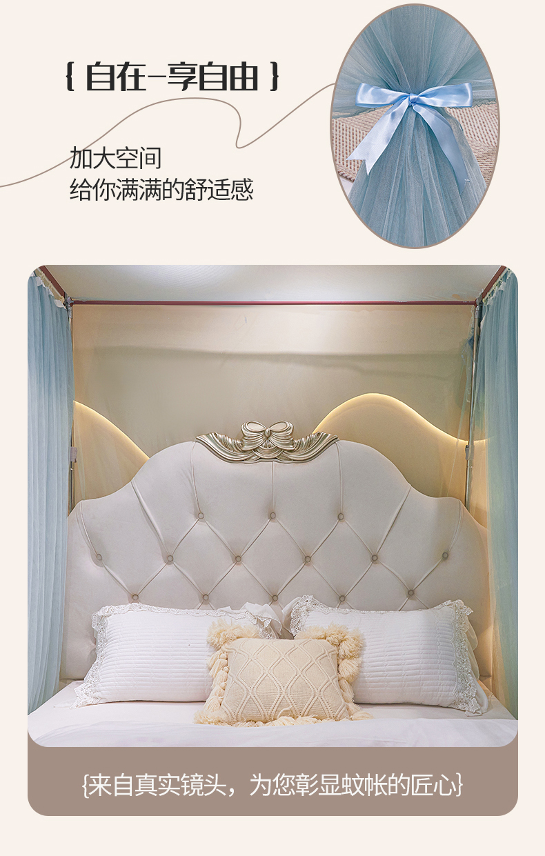 (总)夏彩 2025新款浪漫唯美T+U床笠式坐床外穿防摔蚊帐-88610,886610冰海蓝,886610极光白,886610浅粉玉,886610浅水蓝,886610蔷薇粉,886610杏仁黄,886610雅士灰