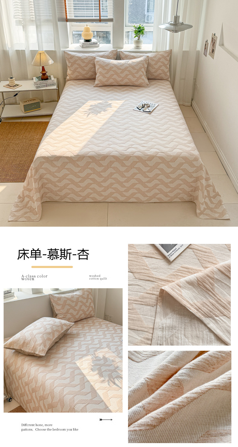 • 91家纺网 家纺一手货源 找家纺 眠博士2025新款AB版简约时尚A类全棉三层纱系列单床单 三层纱单床单-幸运叶-杏