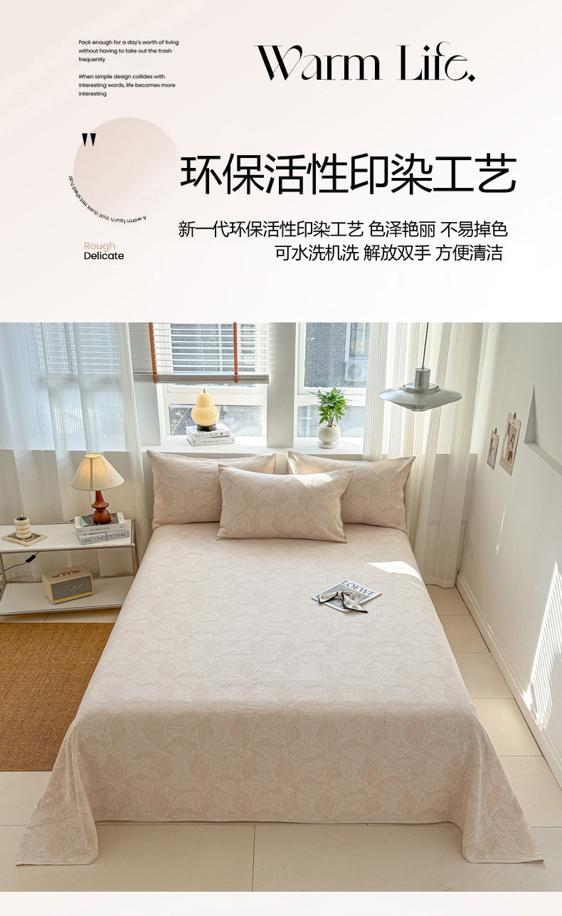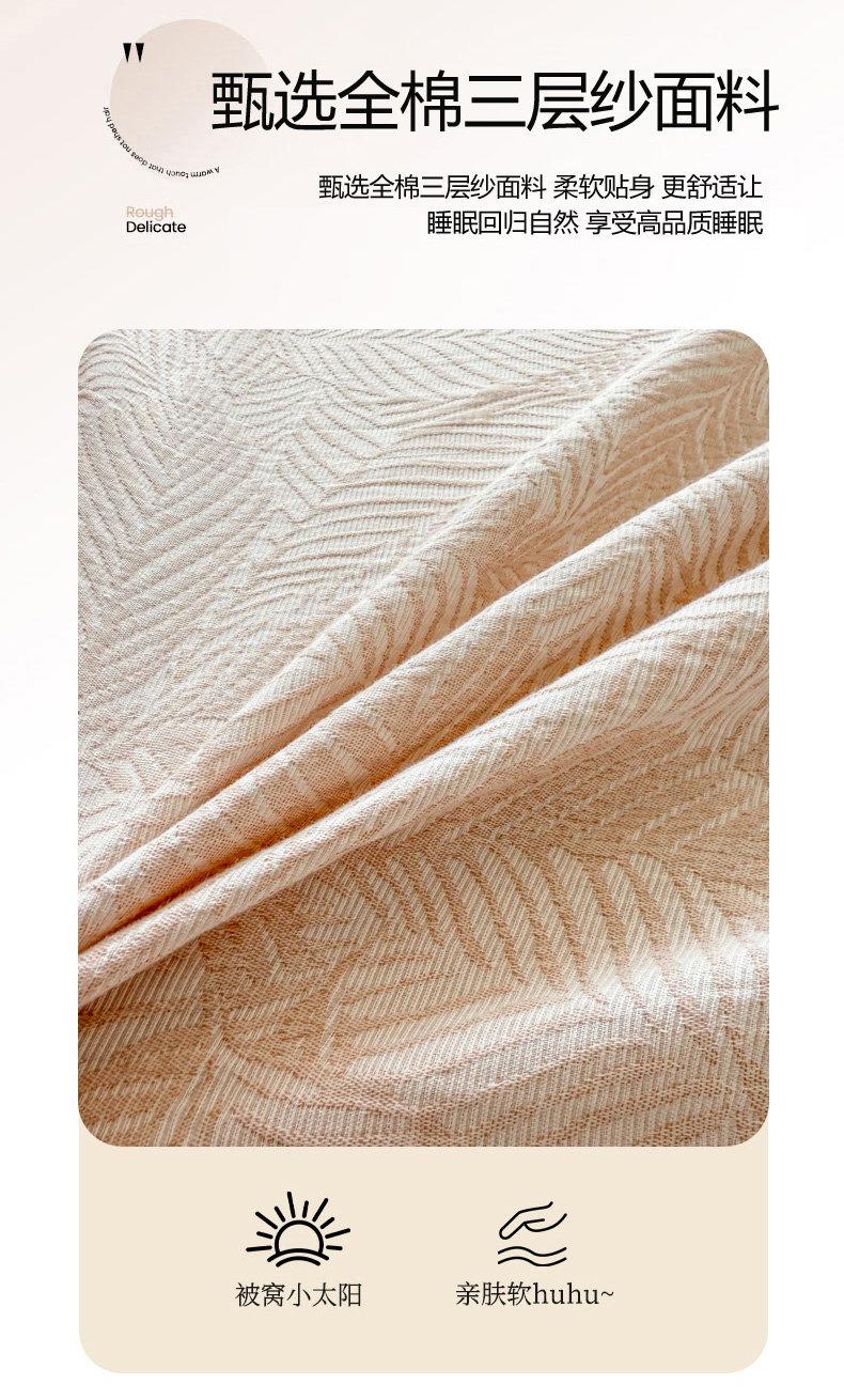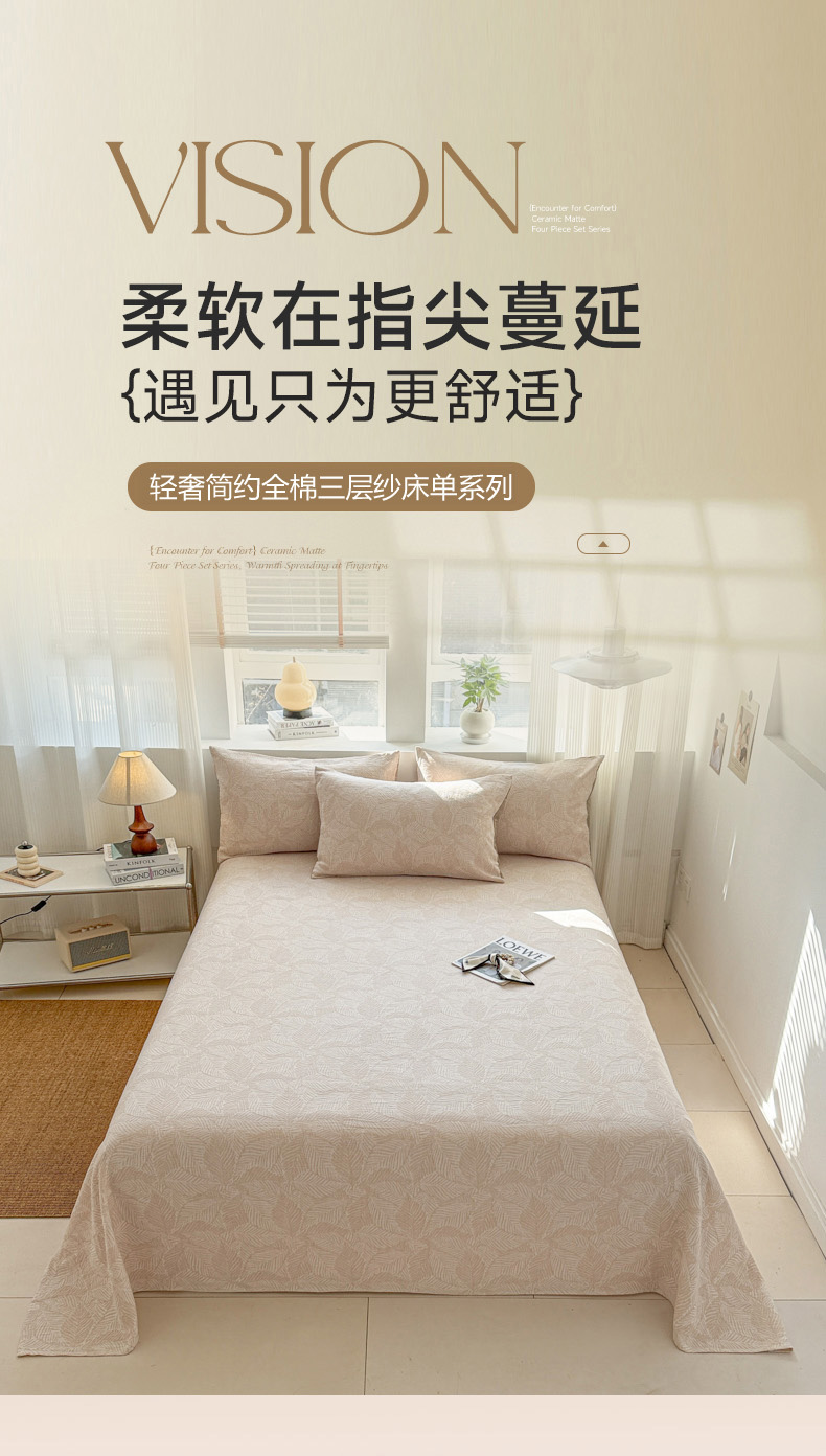 当前位置: 91家纺网 > 商品网购 > 床上用品 > 床单 > 眠博士2025新款AB版简约时尚A类全棉三层纱系列单床单 三层纱单床单-幸运叶-杏