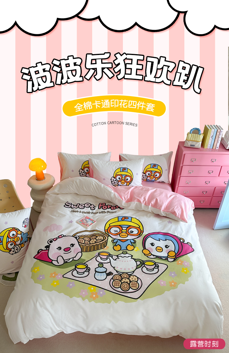 当前位置: 91家纺网 > 商品网购 > 床品套件 > 四件套 > 全棉普通四件套 > 金爱家 2025新款波乐乐系列纯棉数码印花系列四件套 波乐乐-露营时刻