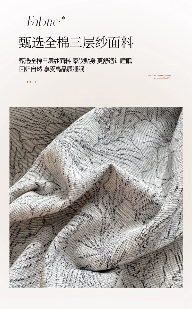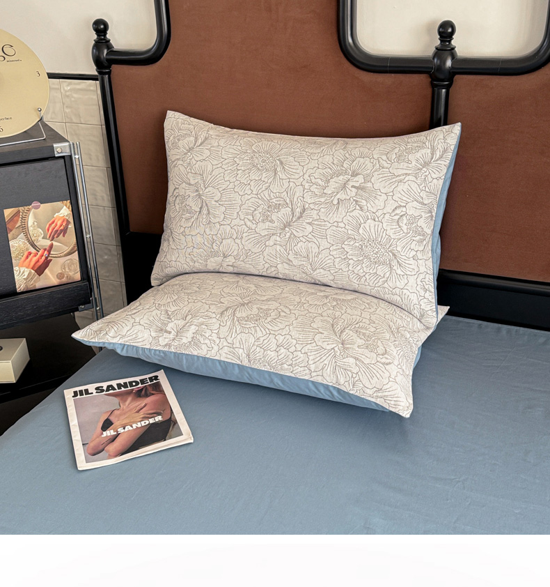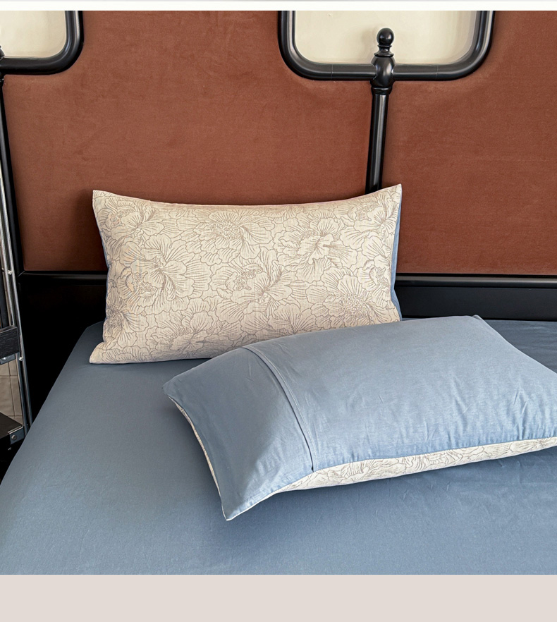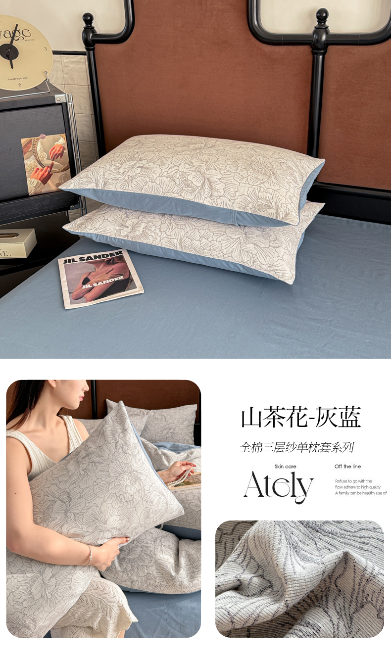 商品名称:眠博士2025新款AB版简约时尚A类全棉三层纱系列单枕套 三层纱-山茶花-灰蓝