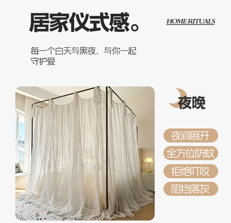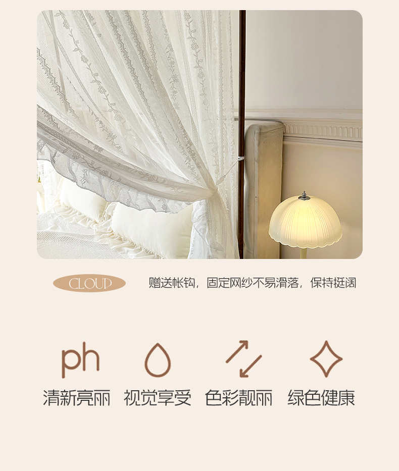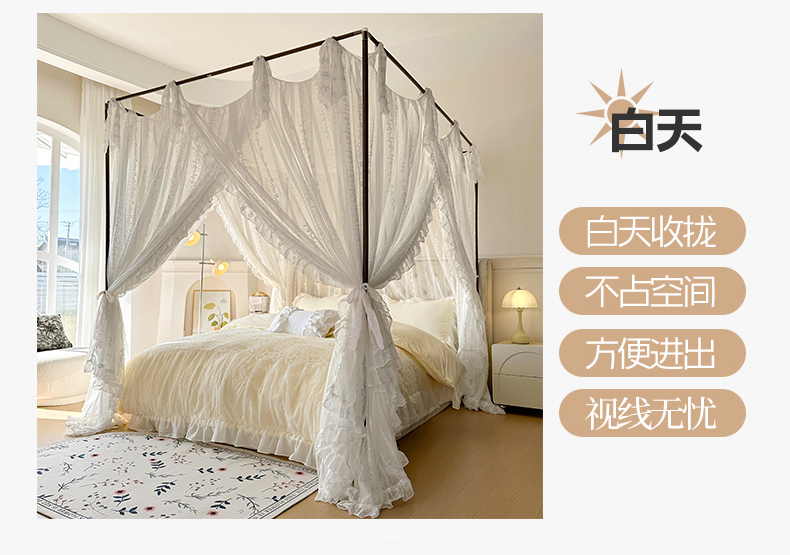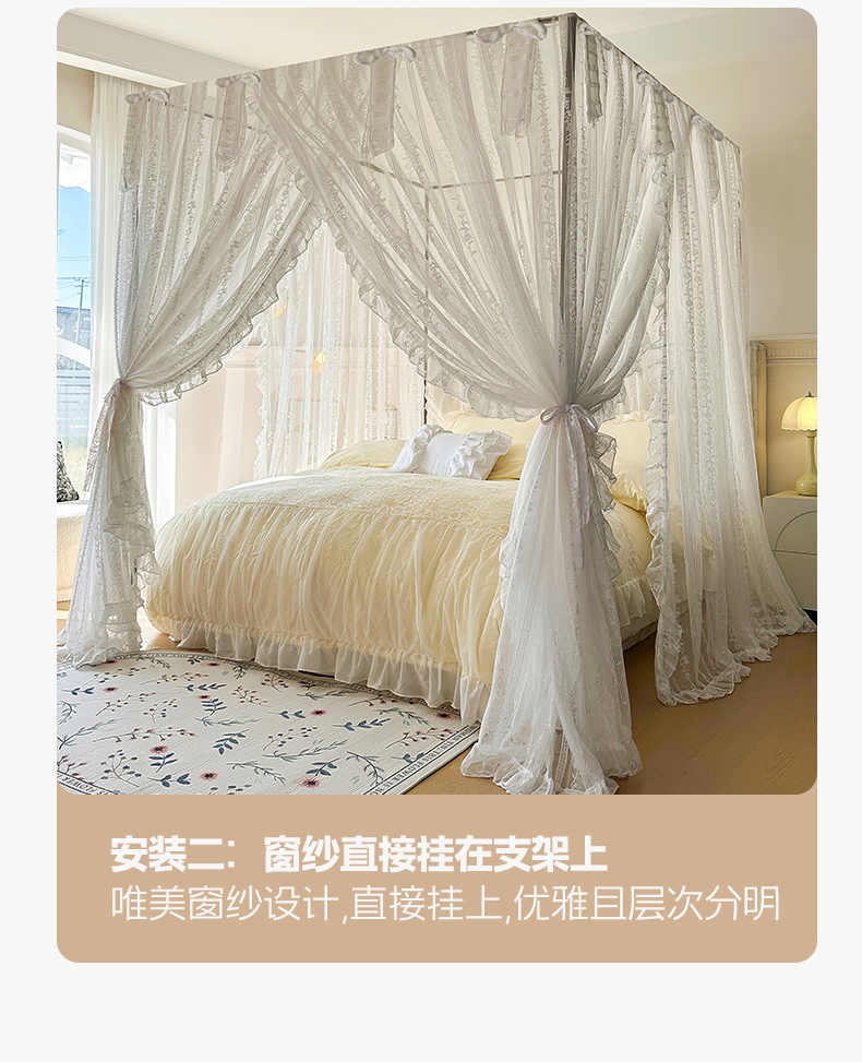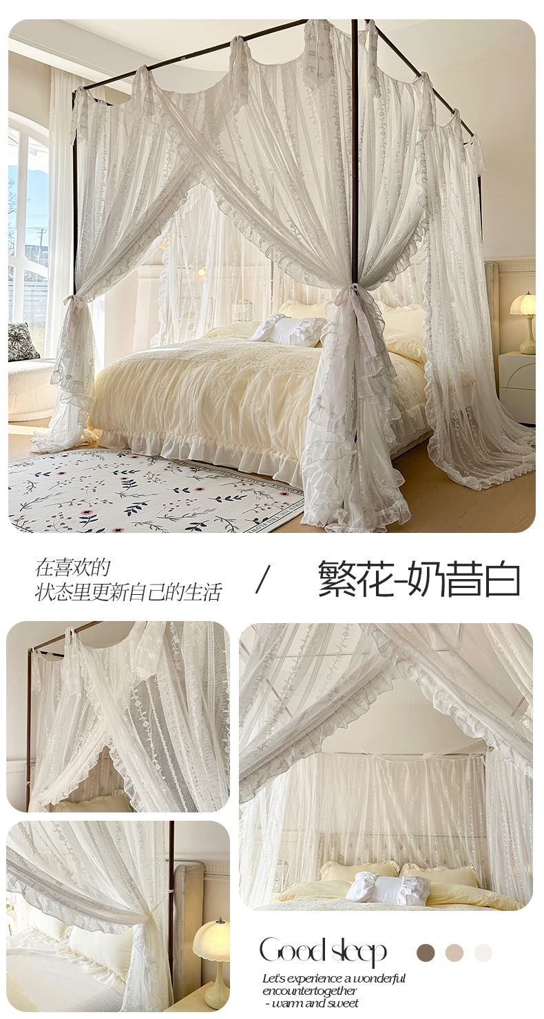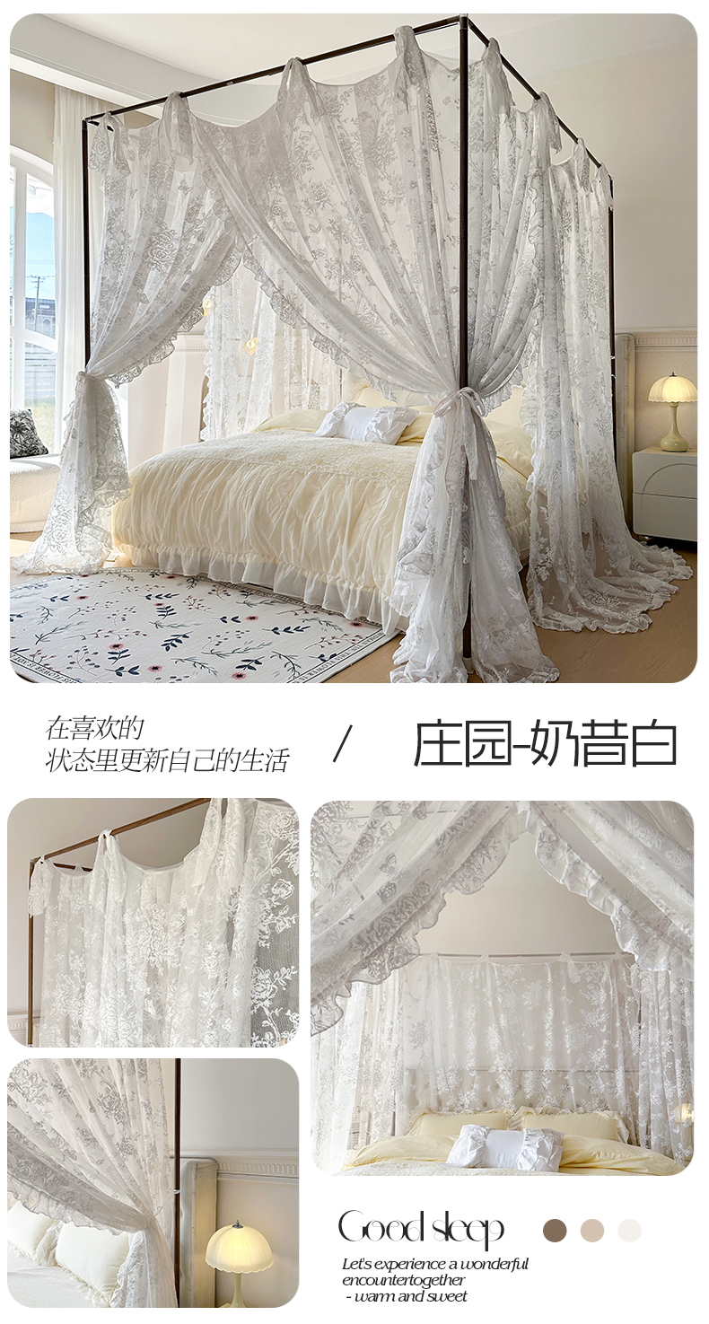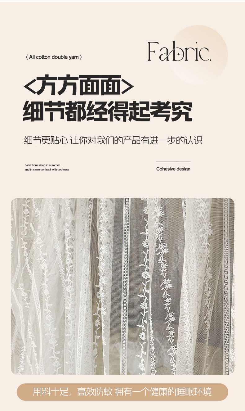 当前位置: 91家纺网 > 商品网购 > 床上用品 > 蚊帐 > 坐床式蚊帐 > (总)夏彩 2025新款优雅蕾丝提花豪华宫廷落地式蚊帐88622