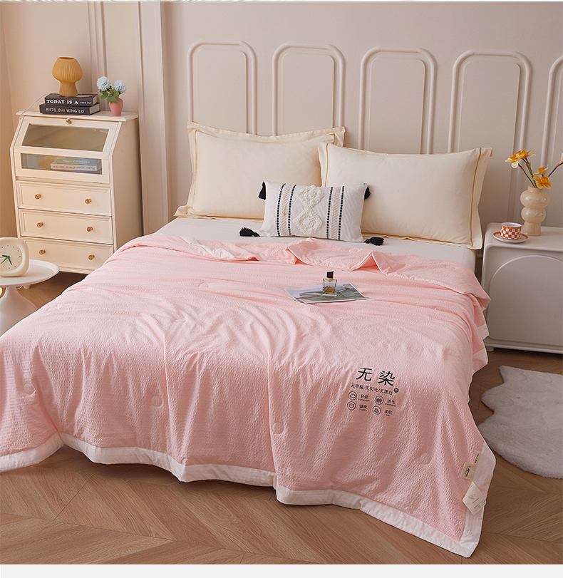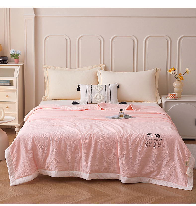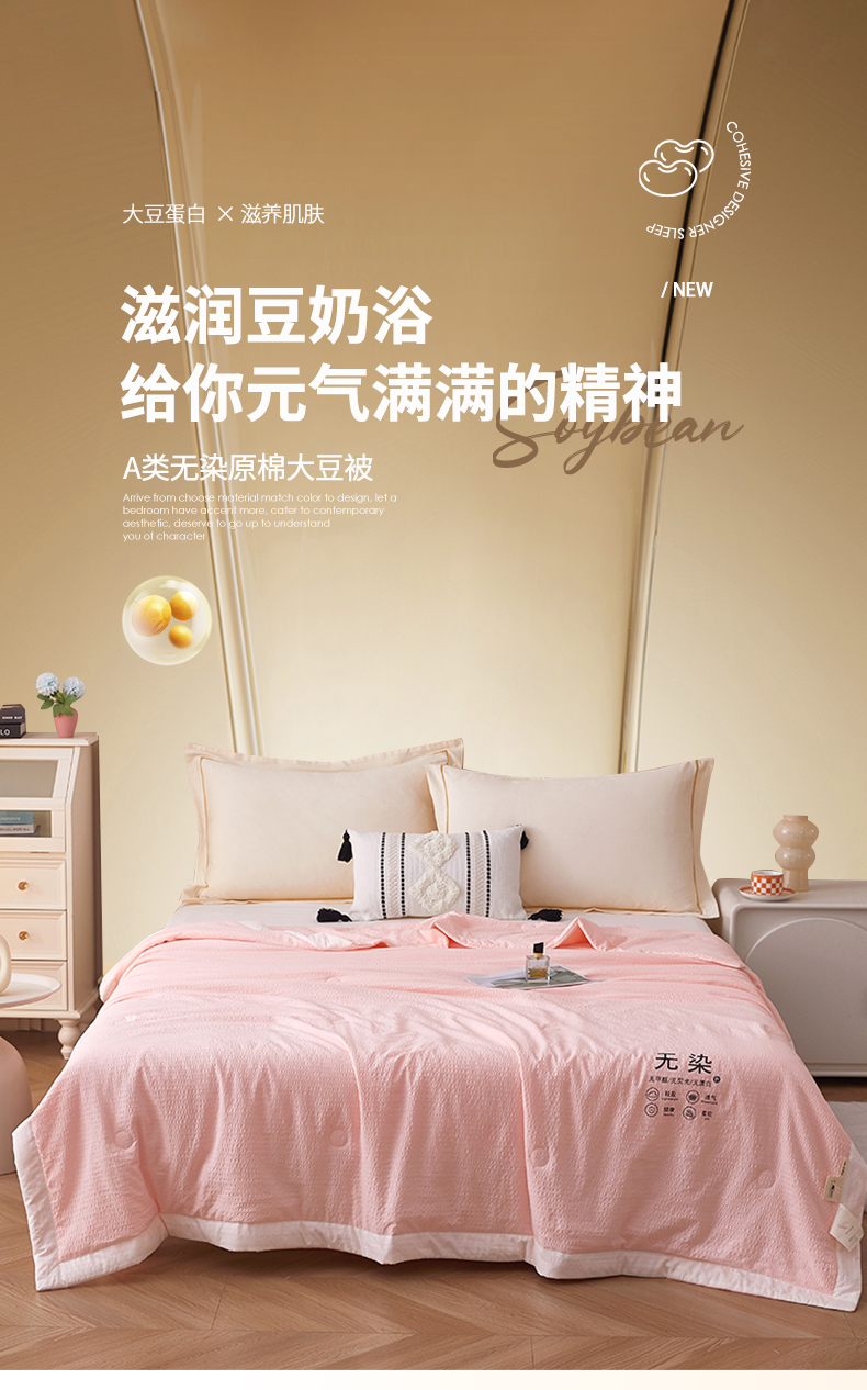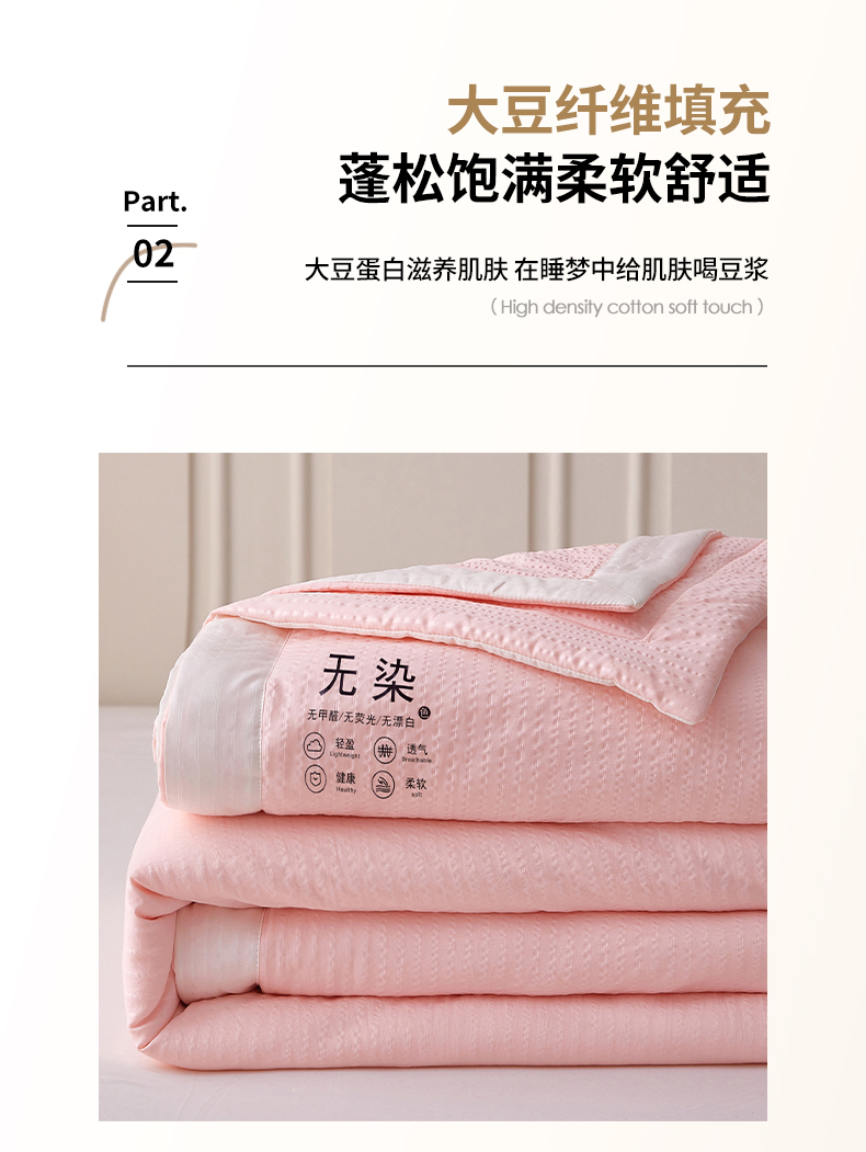 仁凯家纺 2025新款A类无染原棉大豆被夏被夏凉被空调被子 温柔粉-白边