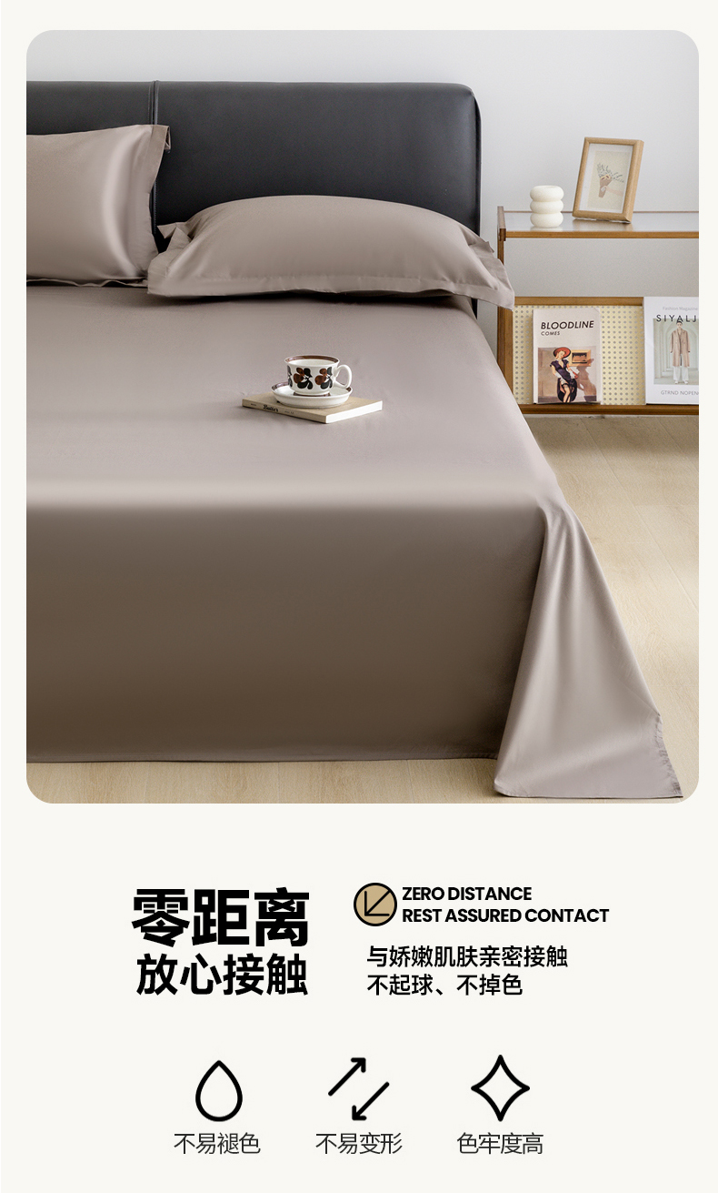 商品名称:宝时兰 2025新款100支新疆长绒棉单品床单全棉枕套纯棉三件套 雅棕灰