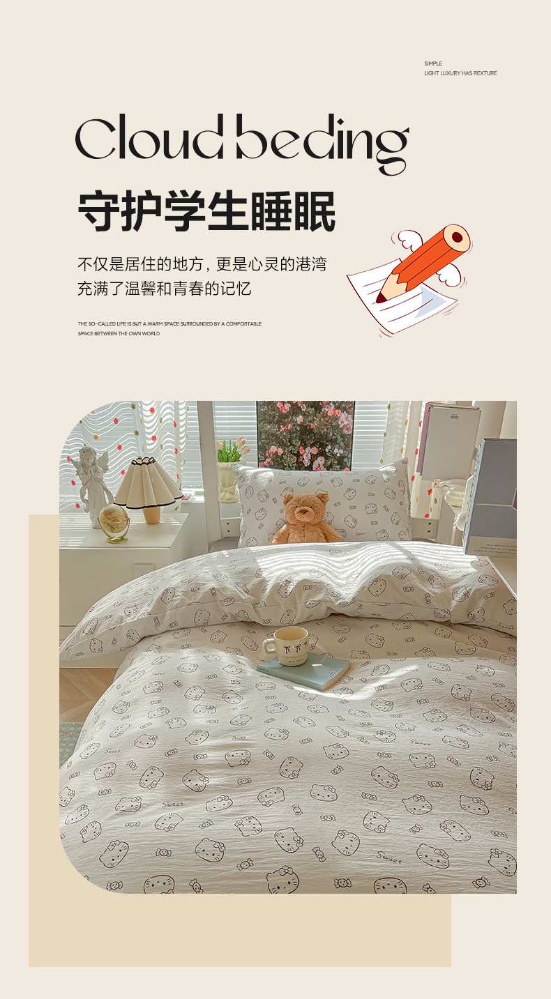 当前位置: 91家纺网 > 商品网购 > 床品套件 > 三件套 > 韩巢家纺 2025新款云感双层纱超柔裸睡级学生宿舍上下铺床单被套三件套-(提供卖家秀) 猫咪恋人