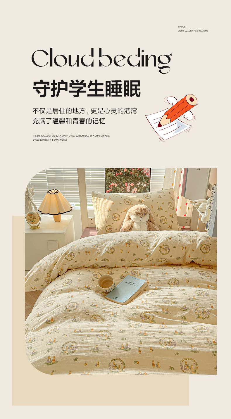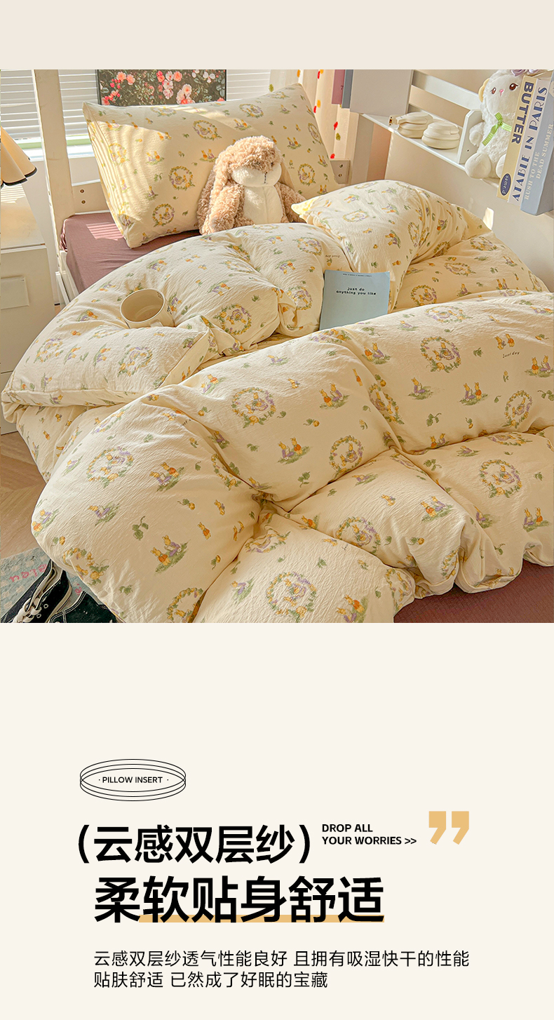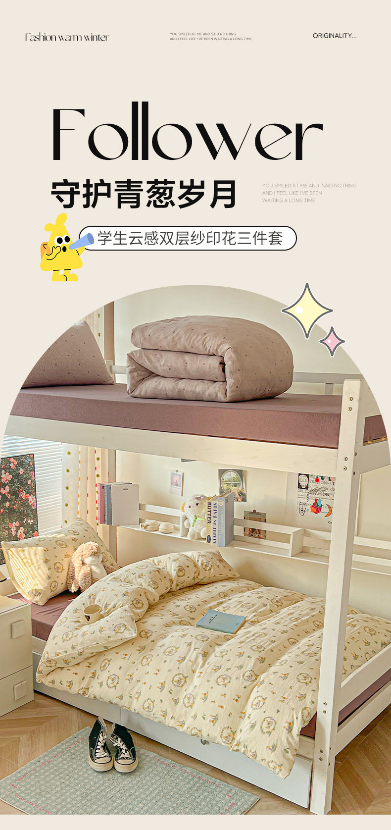 当前位置: 91家纺网 > 商品网购 > 床品套件 > 三件套 > 韩巢家纺 2025新款云感双层纱超柔裸睡级学生宿舍上下铺床单被套三件套-(提供卖家秀) 兔子的欢喜