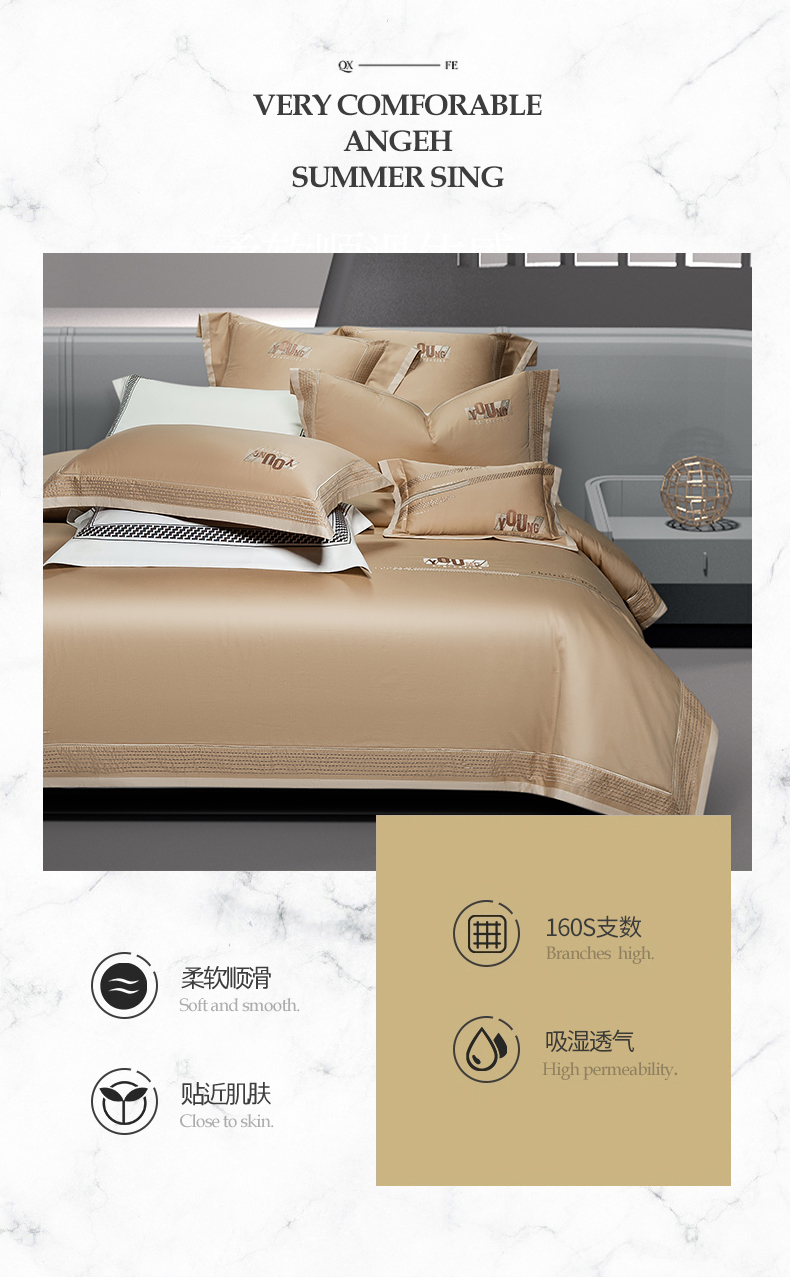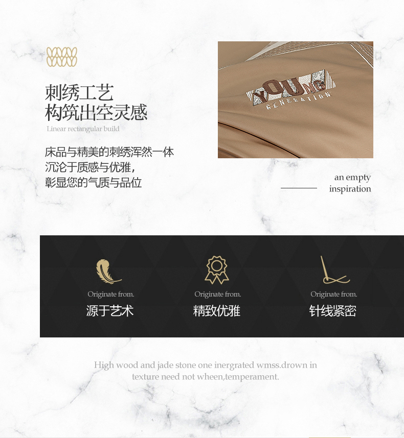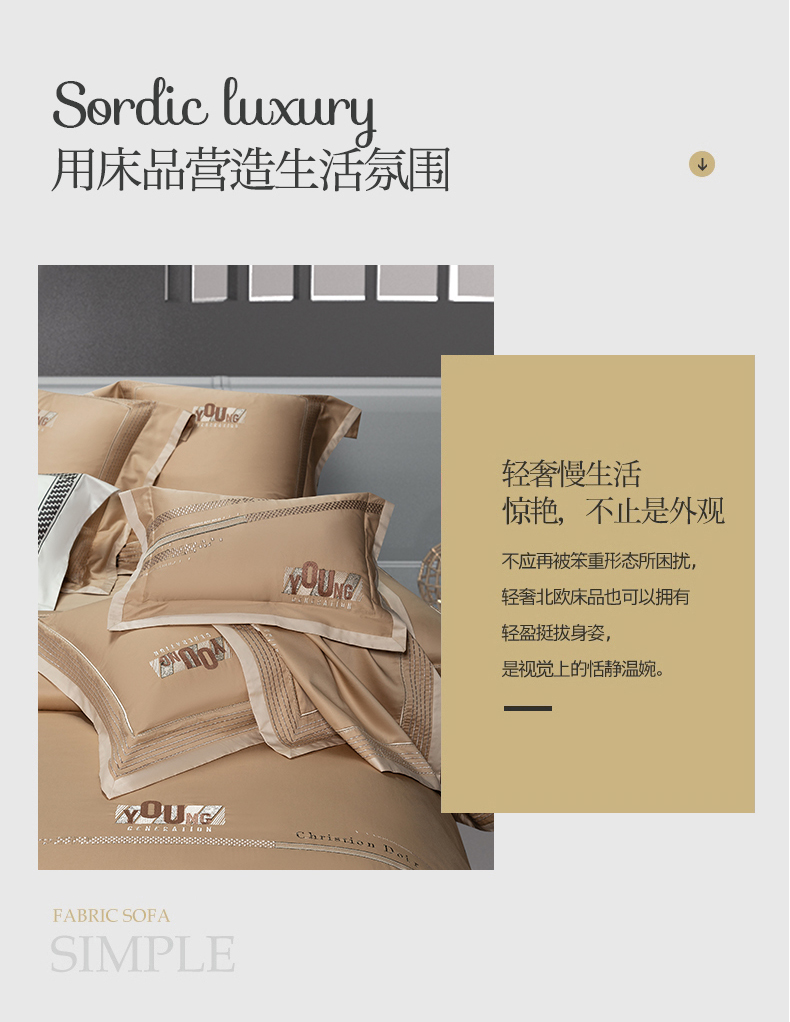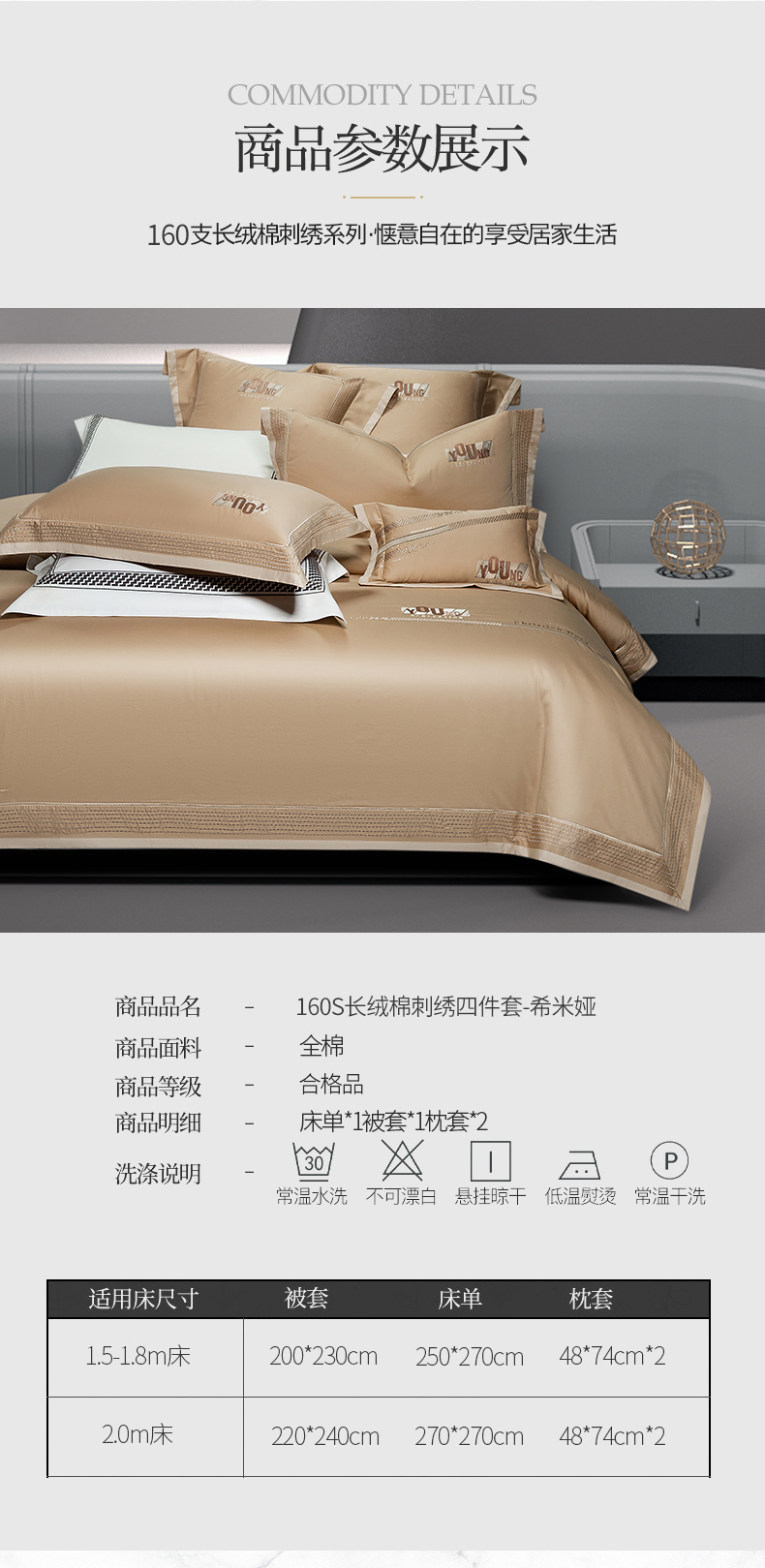 商品名称:高大尚婚庆馆 2025春夏新款 长绒棉高端绣花四件套-希米娅 奶咖色