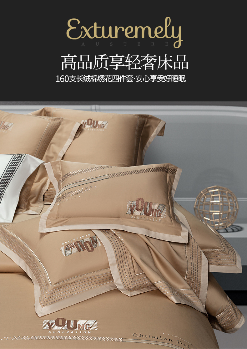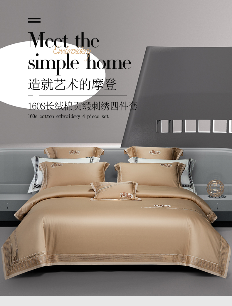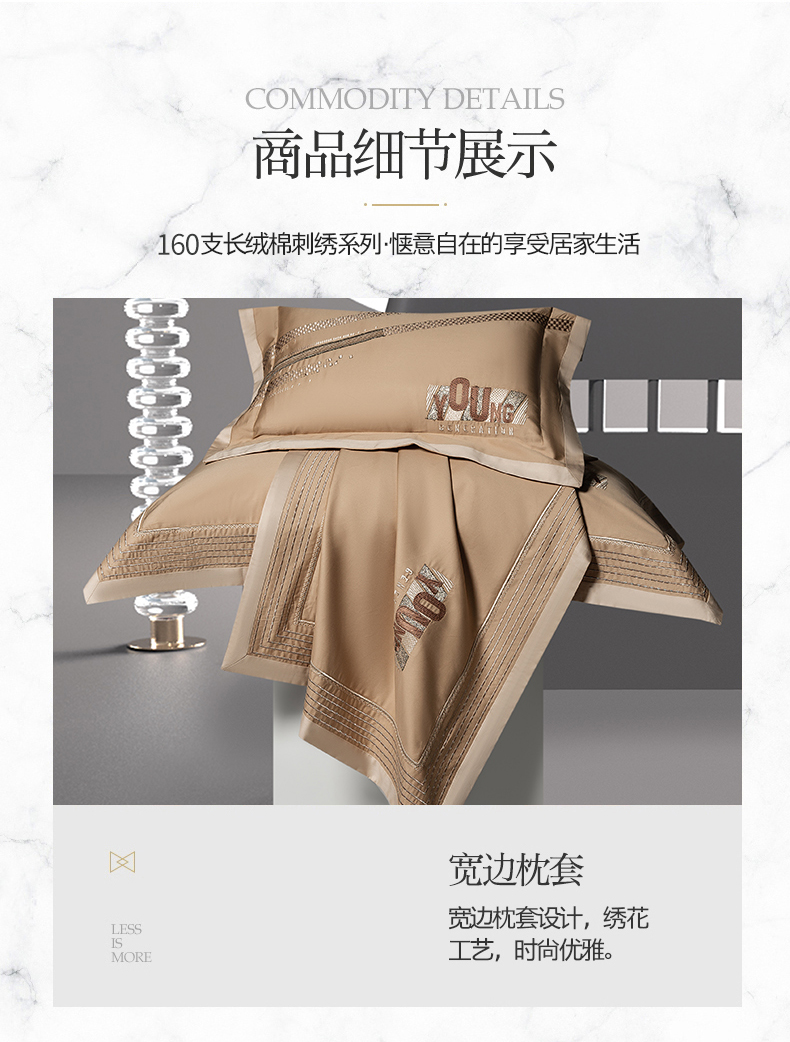 高大尚婚庆馆 2025春夏新款 长绒棉高端绣花四件套-希米娅 奶咖色