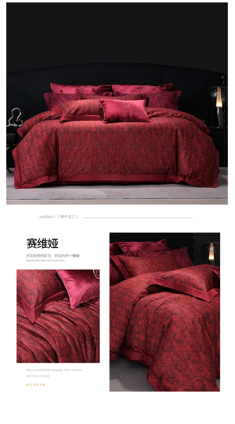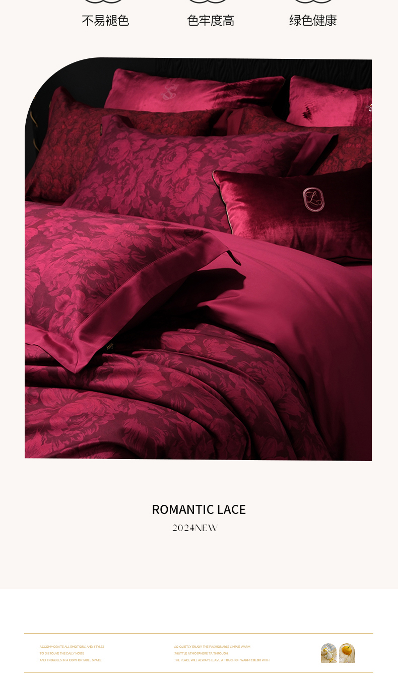 (总)阿那亚 2025新款雅缎婚庆大红数码印花四件套,法利娅,科罗娜,赛维娅