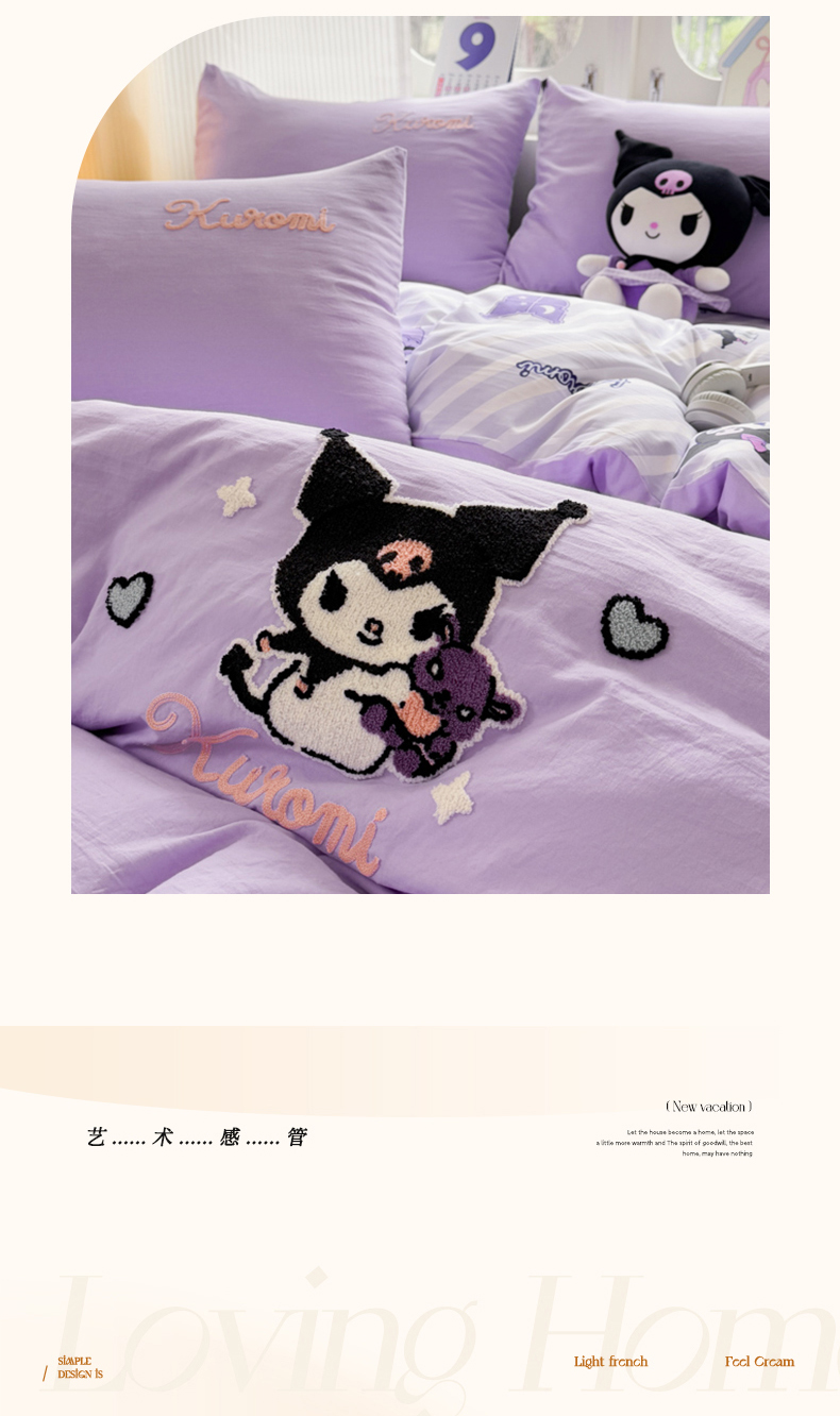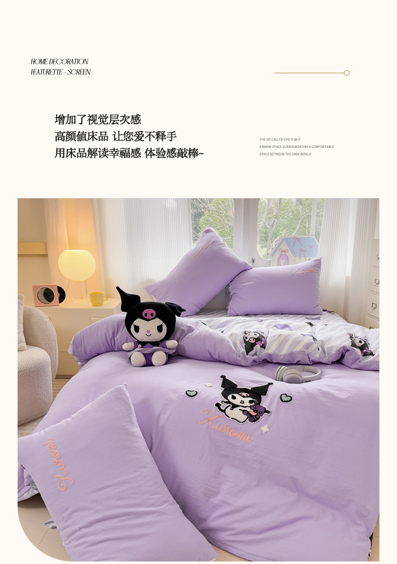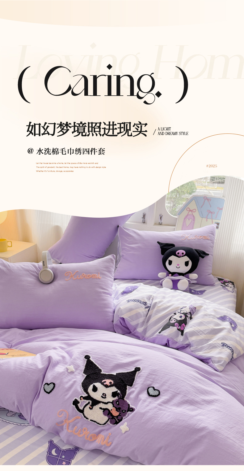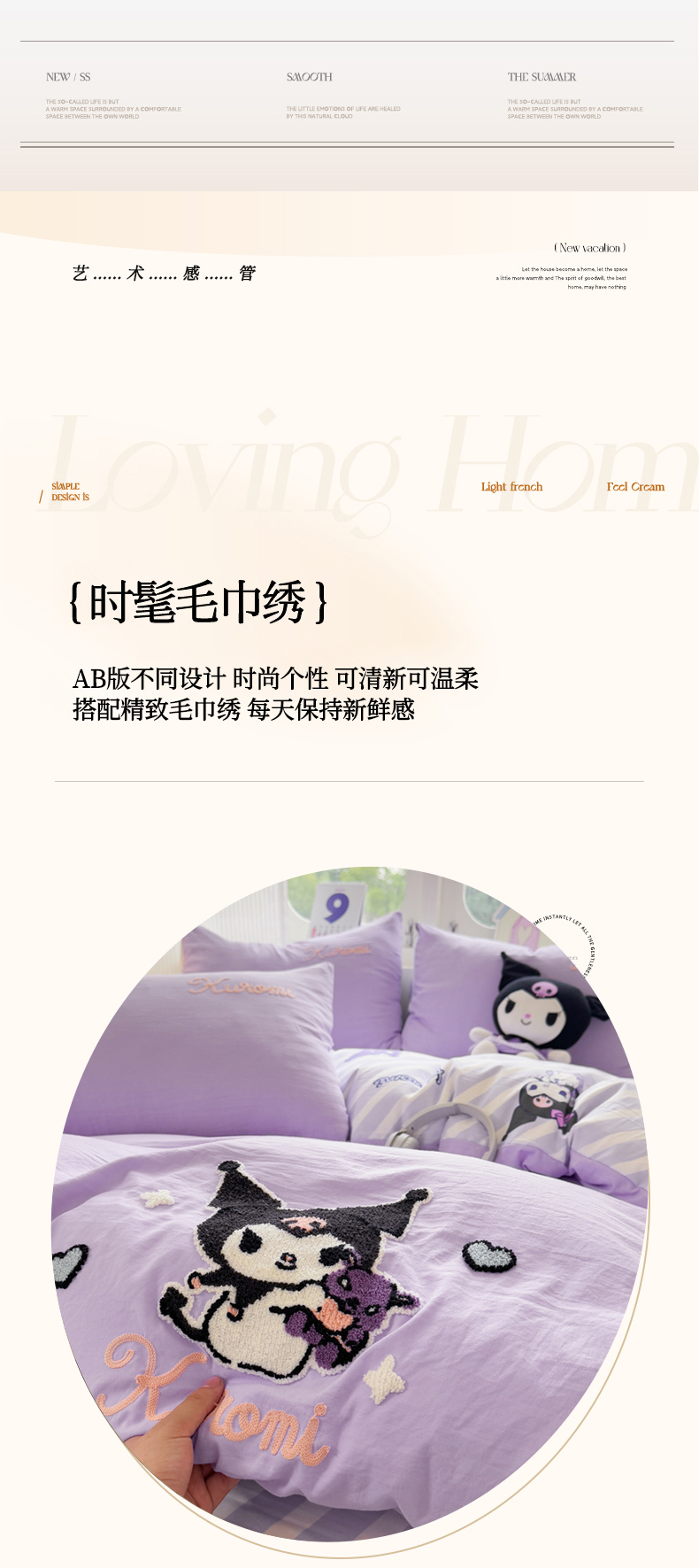 当前位置: 91家纺网 > 商品网购 > 床品套件 > 四件套 > 化纤活性四件套 > 晚爱 2025新款A类ins风毛巾绣三丽鸥卡通水洗棉超柔亲肤云朵棉四件套 库洛米