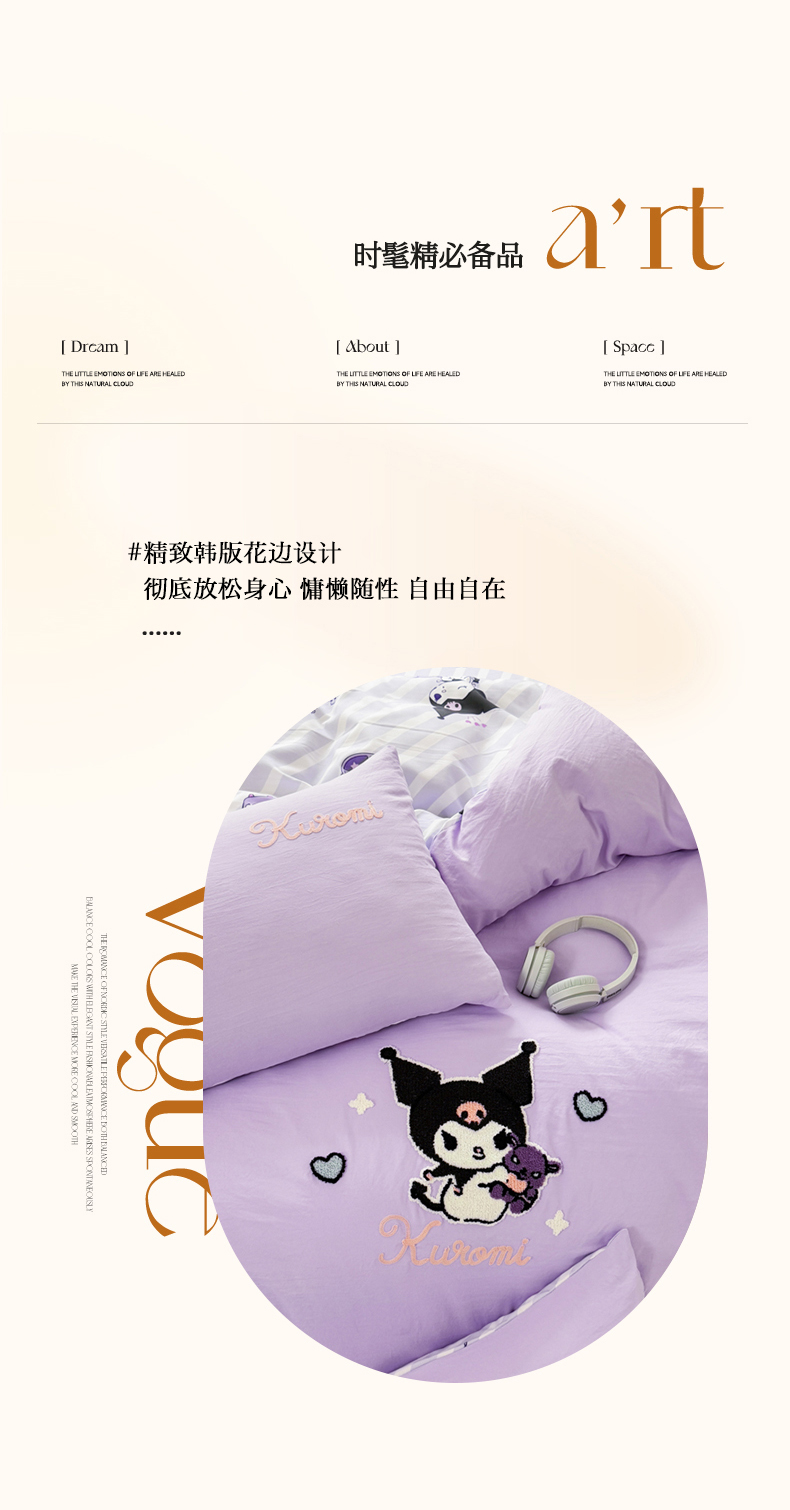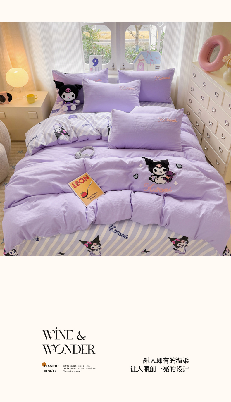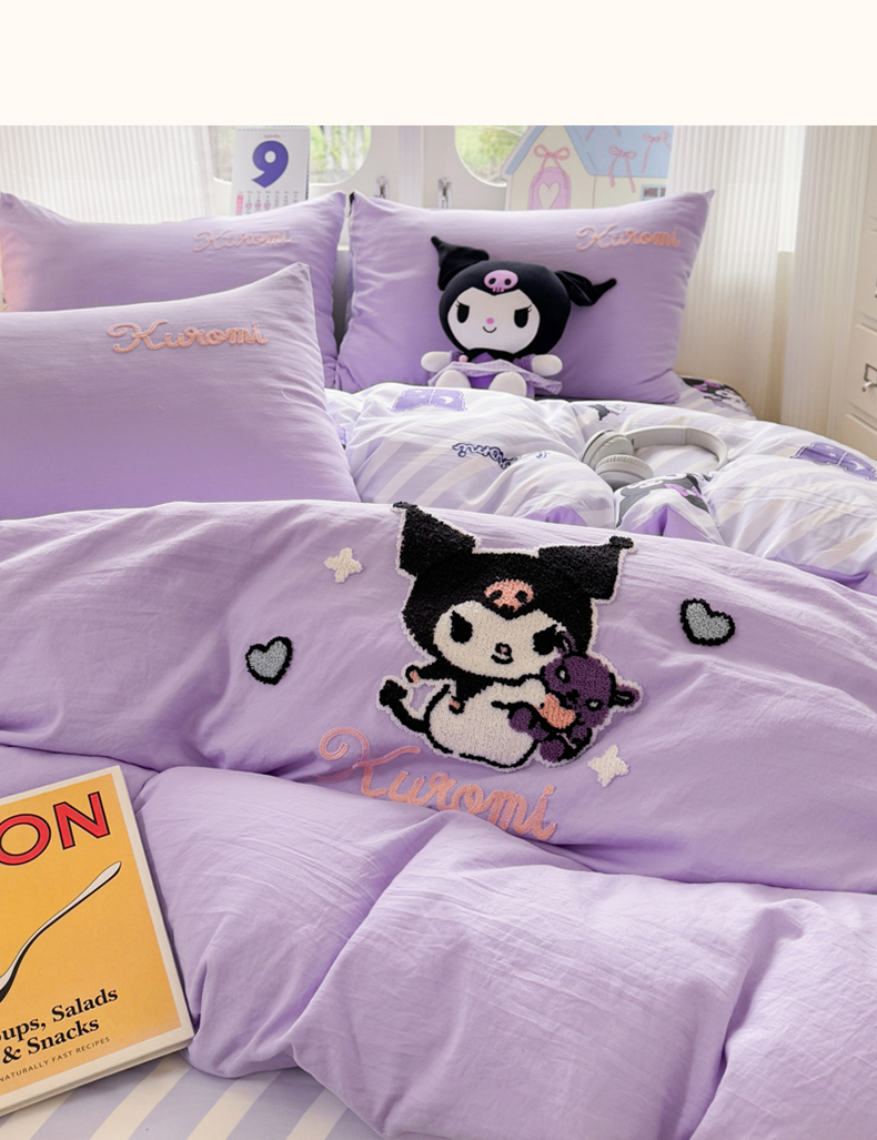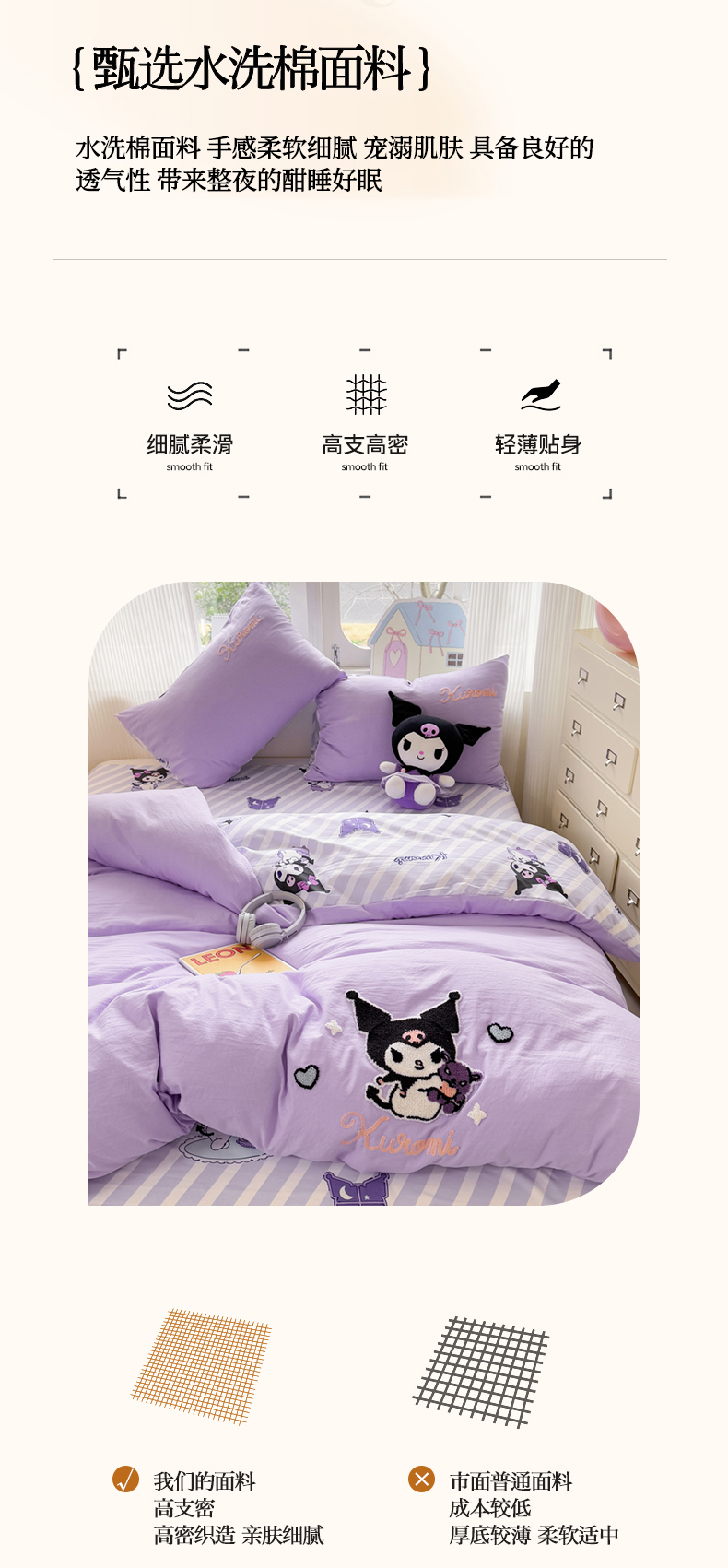 当前位置: 91家纺网 > 商品网购 > 床品套件 > 四件套 > 化纤活性四件套 > 晚爱 2025新款A类ins风毛巾绣三丽鸥卡通水洗棉超柔亲肤云朵棉四件套 库洛米