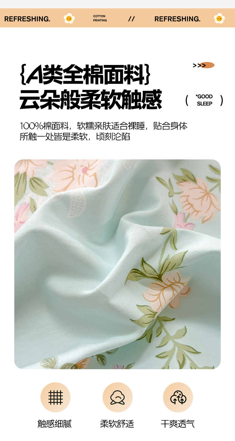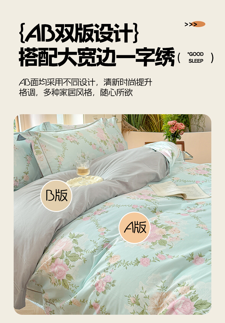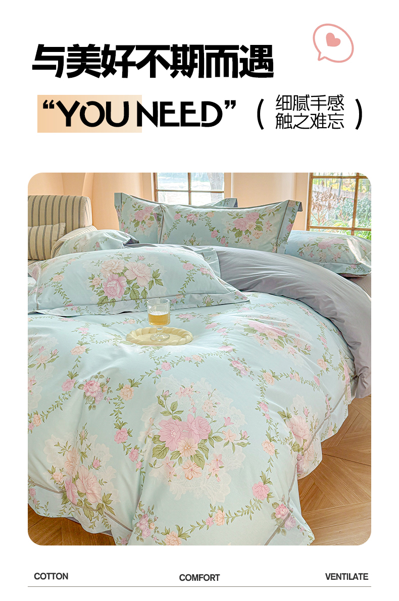 当前位置: 91家纺网 > 商品网购 > 床品套件 > 四件套 > 全棉普通四件套 > 7V 2025新款轻奢大宽边100%纯棉四件套133*76全棉喷气宽幅长绒棉被套床单床笠套件 曼妙
