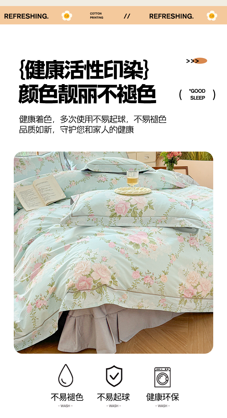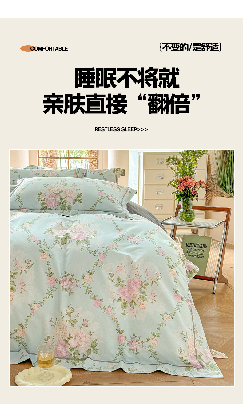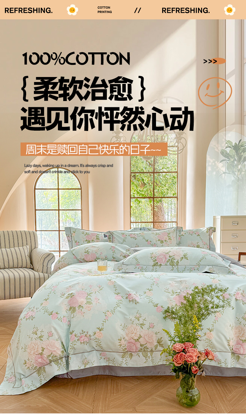 当前位置: 91家纺网 > 商品网购 > 床品套件 > 四件套 > 全棉普通四件套 > 7V 2025新款轻奢大宽边100%纯棉四件套133*76全棉喷气宽幅长绒棉被套床单床笠套件 曼妙