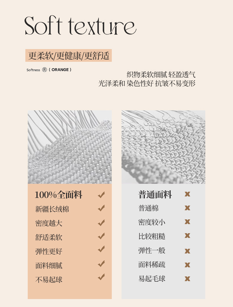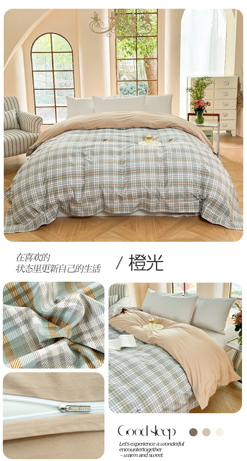 商品名称:7V 2025全棉被套133*76纯棉轻奢宽边单被套喷气长绒棉面料 橙光