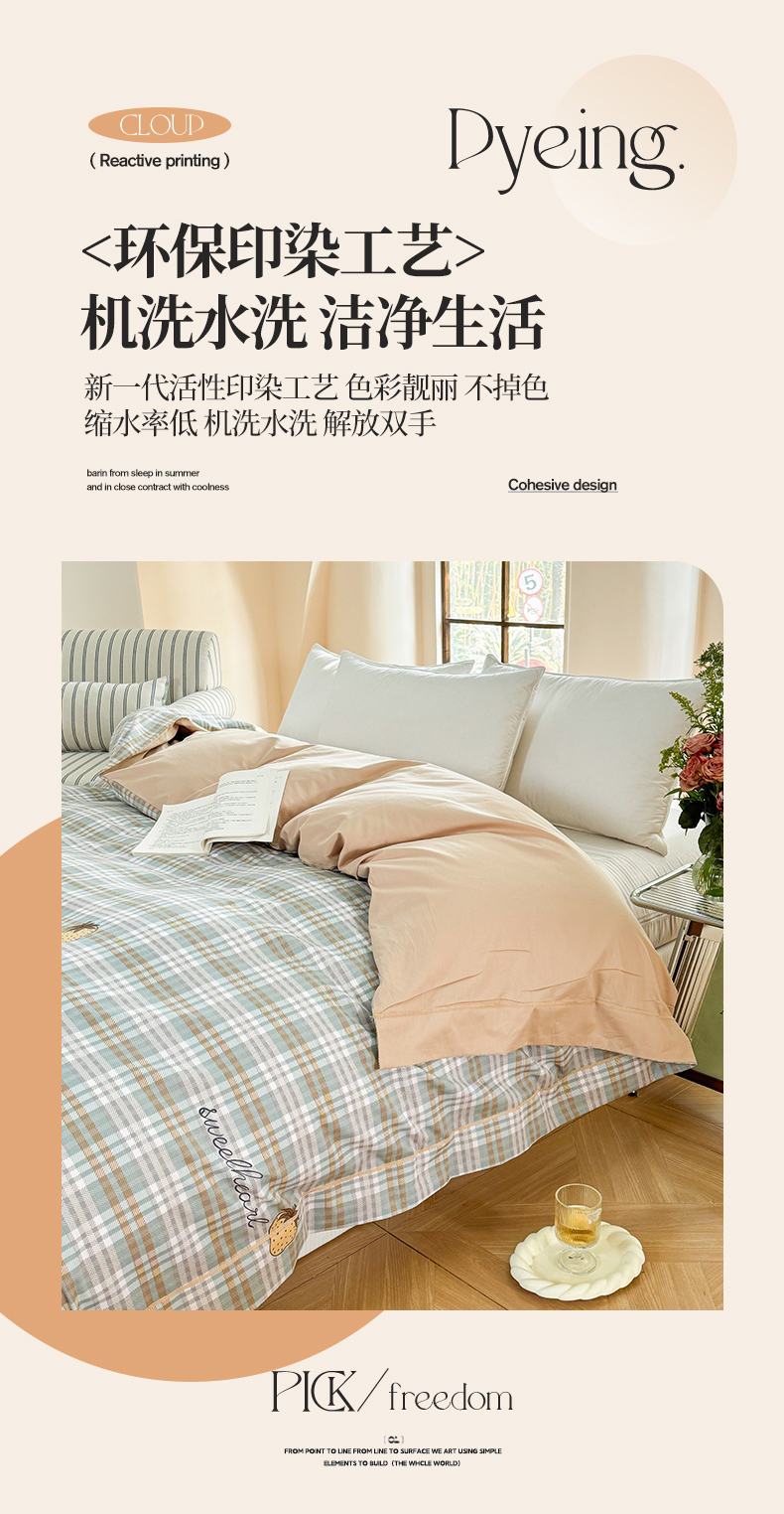 (总)7V 小清新大宽边100%纯棉法式四件套轻奢13376全棉喷气宽幅长绒棉被套床单床笠套件,乐享时光,动感兔-米,半夏花海,南枝-粉,圈点幸福,小熊日记-米黄,幽韵飘香,枫叶格-蓝,简约世界,自由简约,花绘-粉,落落晨光-粉,雨蝶-绿