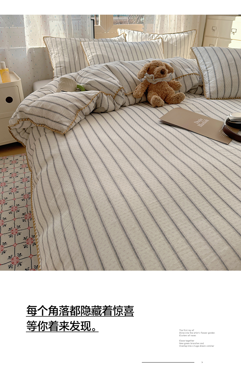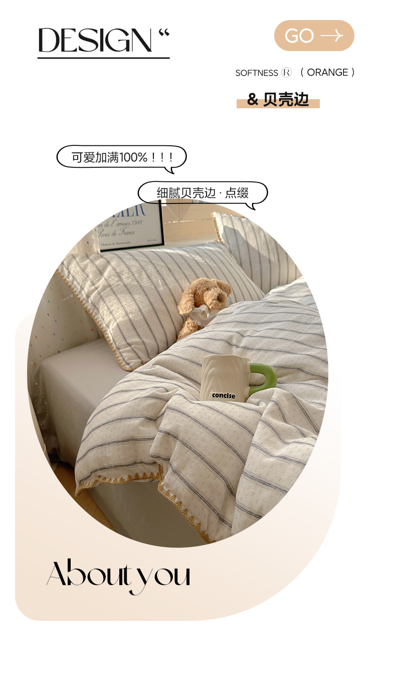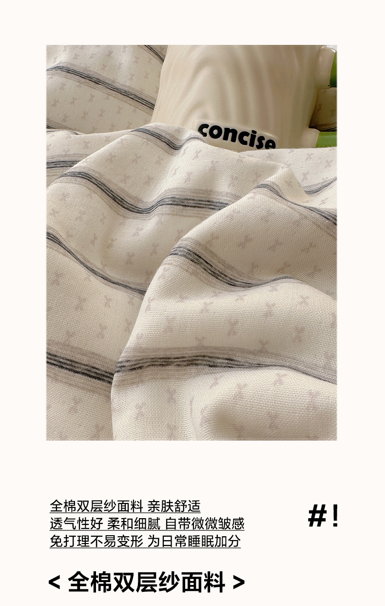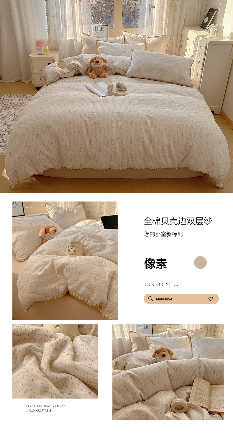 商品名称:雅居纺家纺 2025新款全棉贝壳边双层纱四件套 雅致卡其