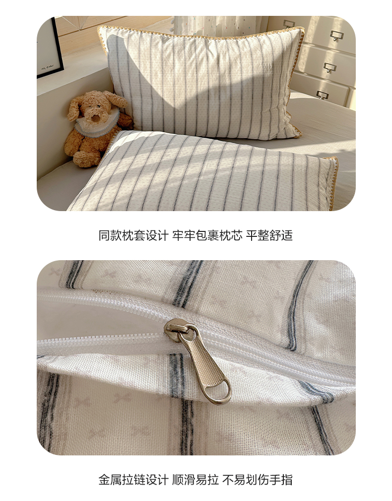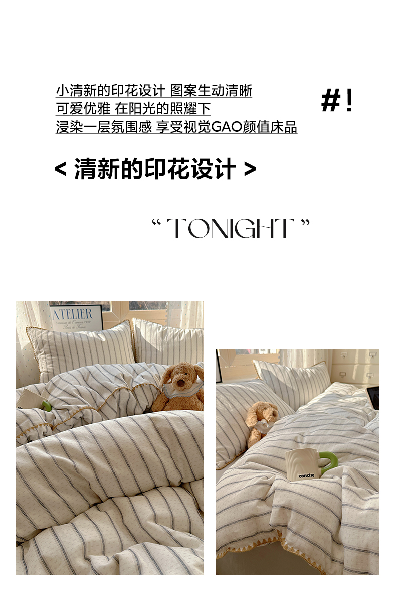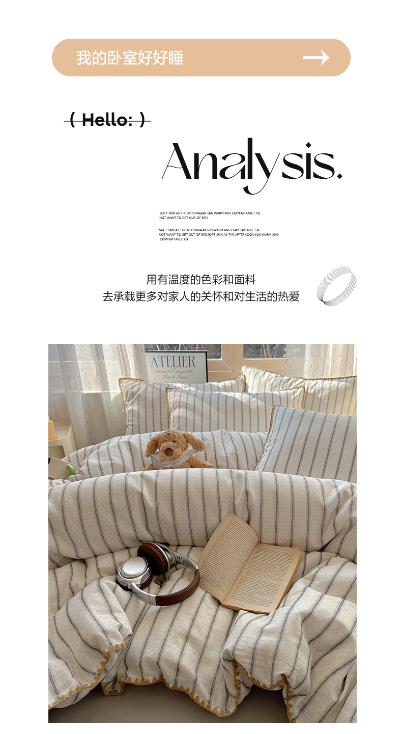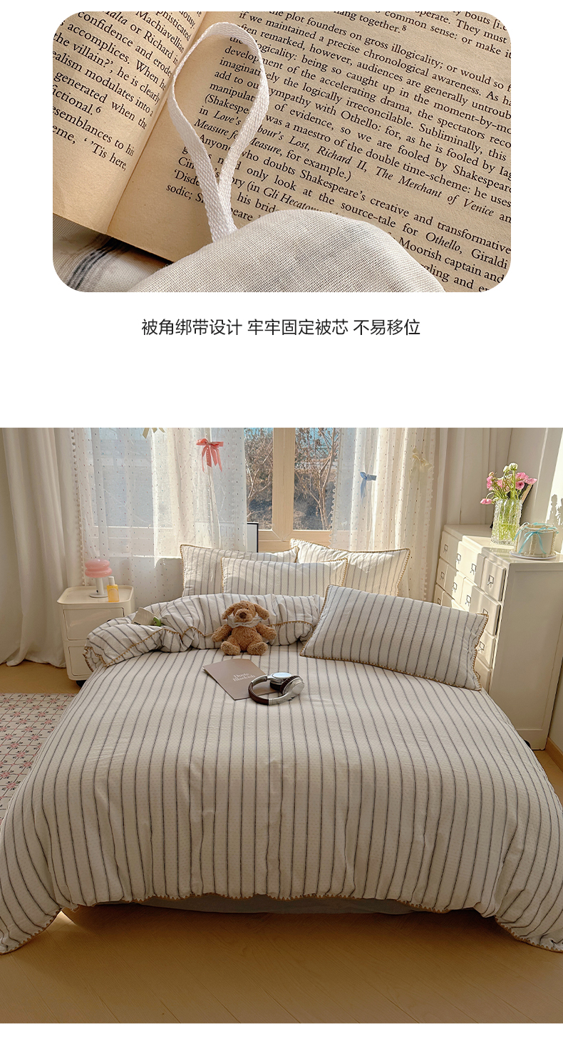 商品名称:雅居纺家纺 2025新款全棉贝壳边双层纱四件套 雅致卡其
