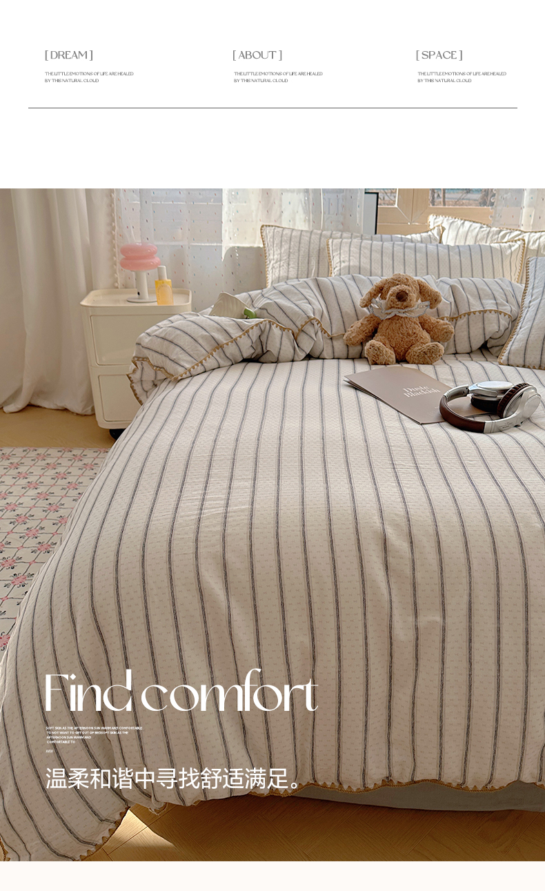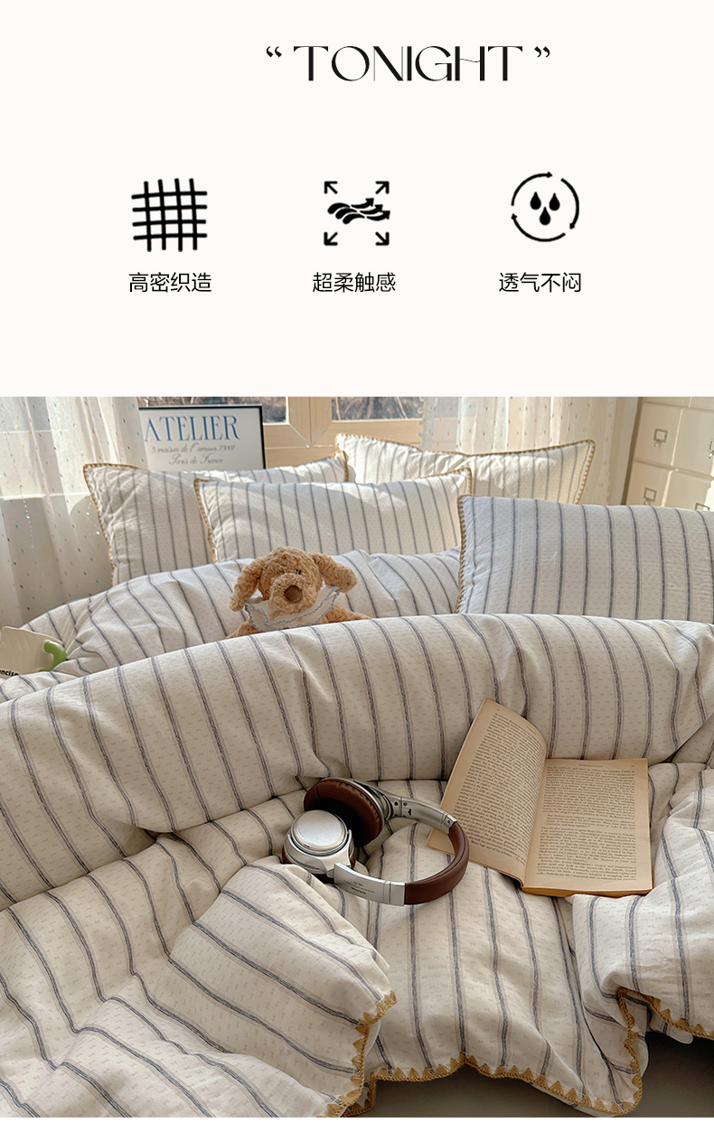(总)雅居纺家纺 2022新款华夫格花边款四件套,梦幻蓝,橙色,纯白,米咖,浅粉,浅灰,优雅灰