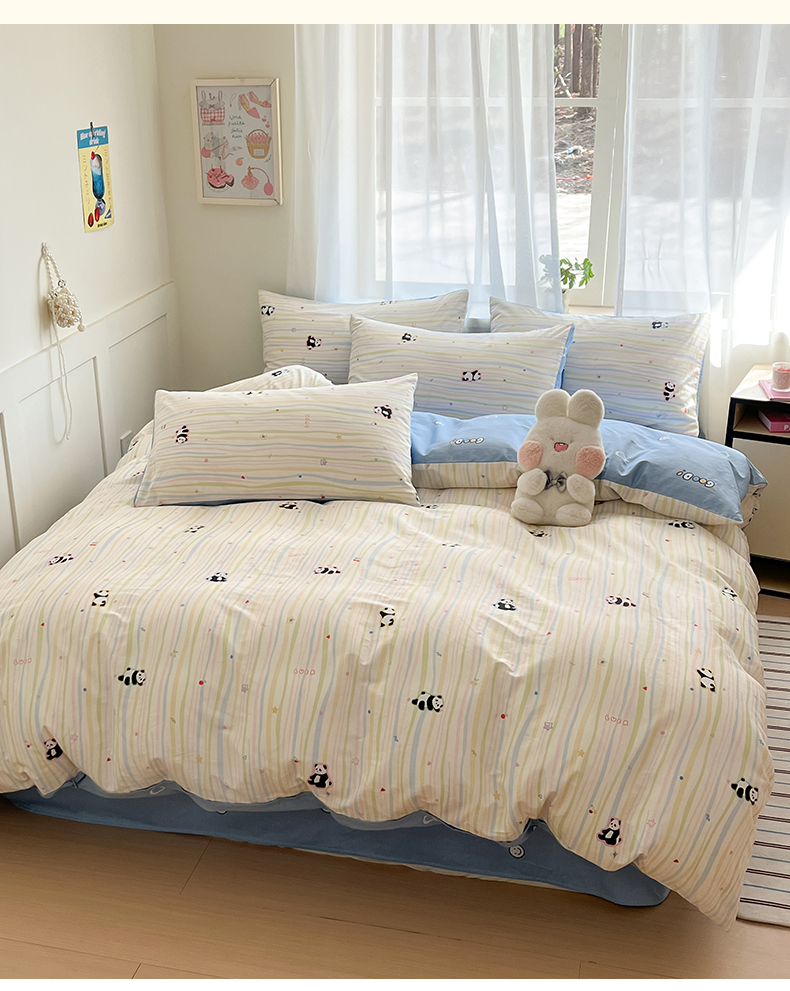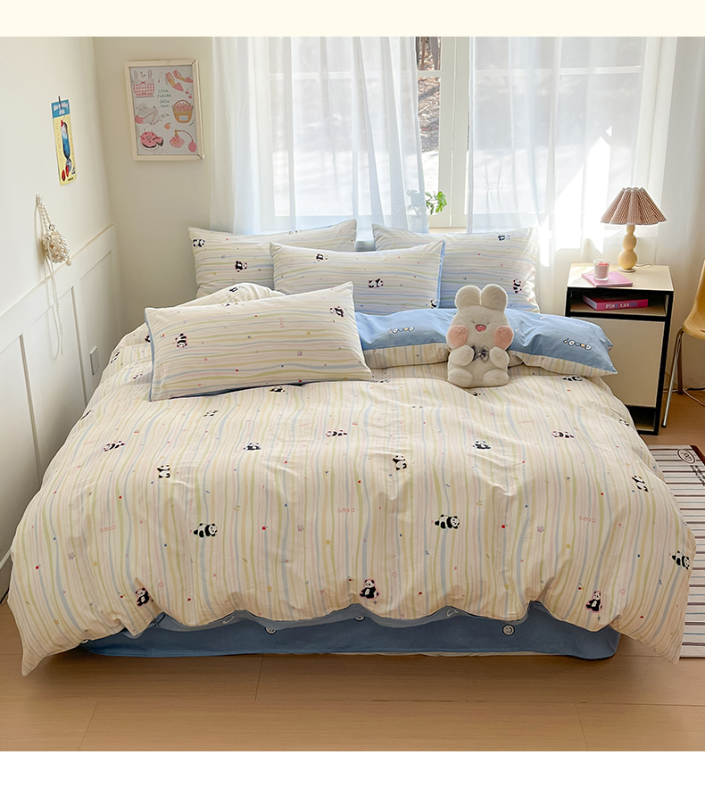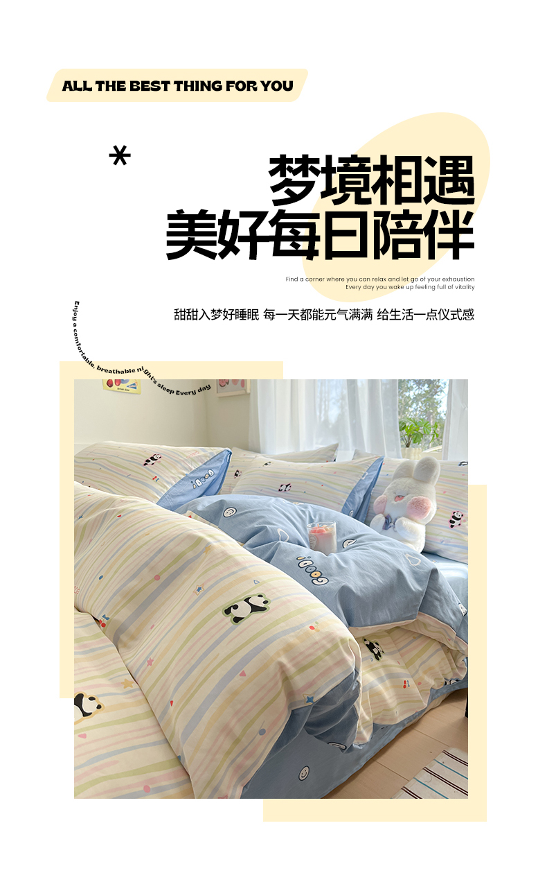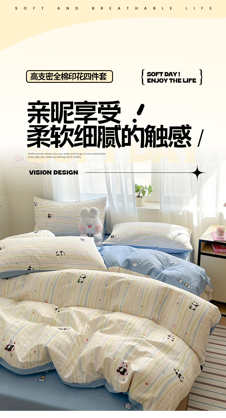 吉象家纺 2025新款高支密全棉印花四件套12868跑量款 懒萌潘达