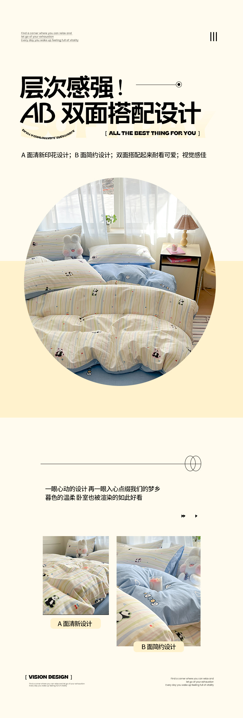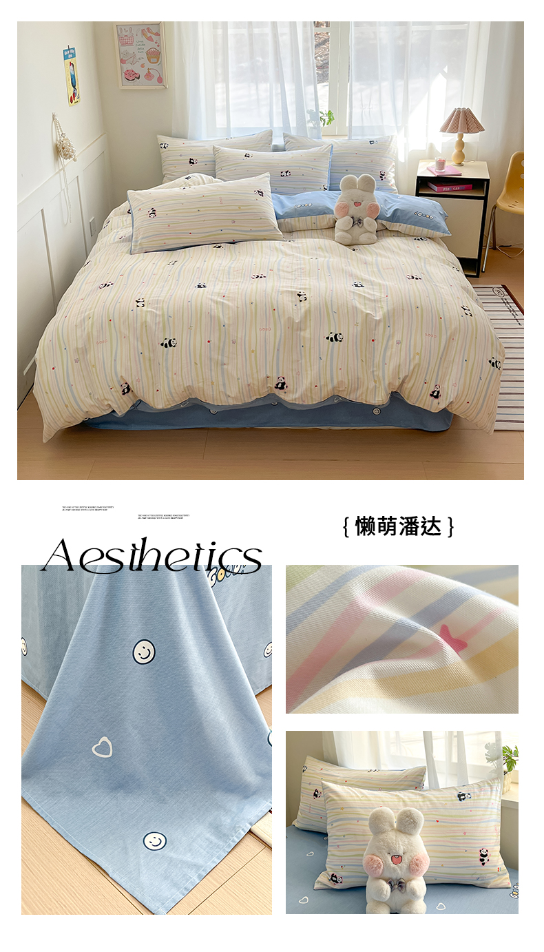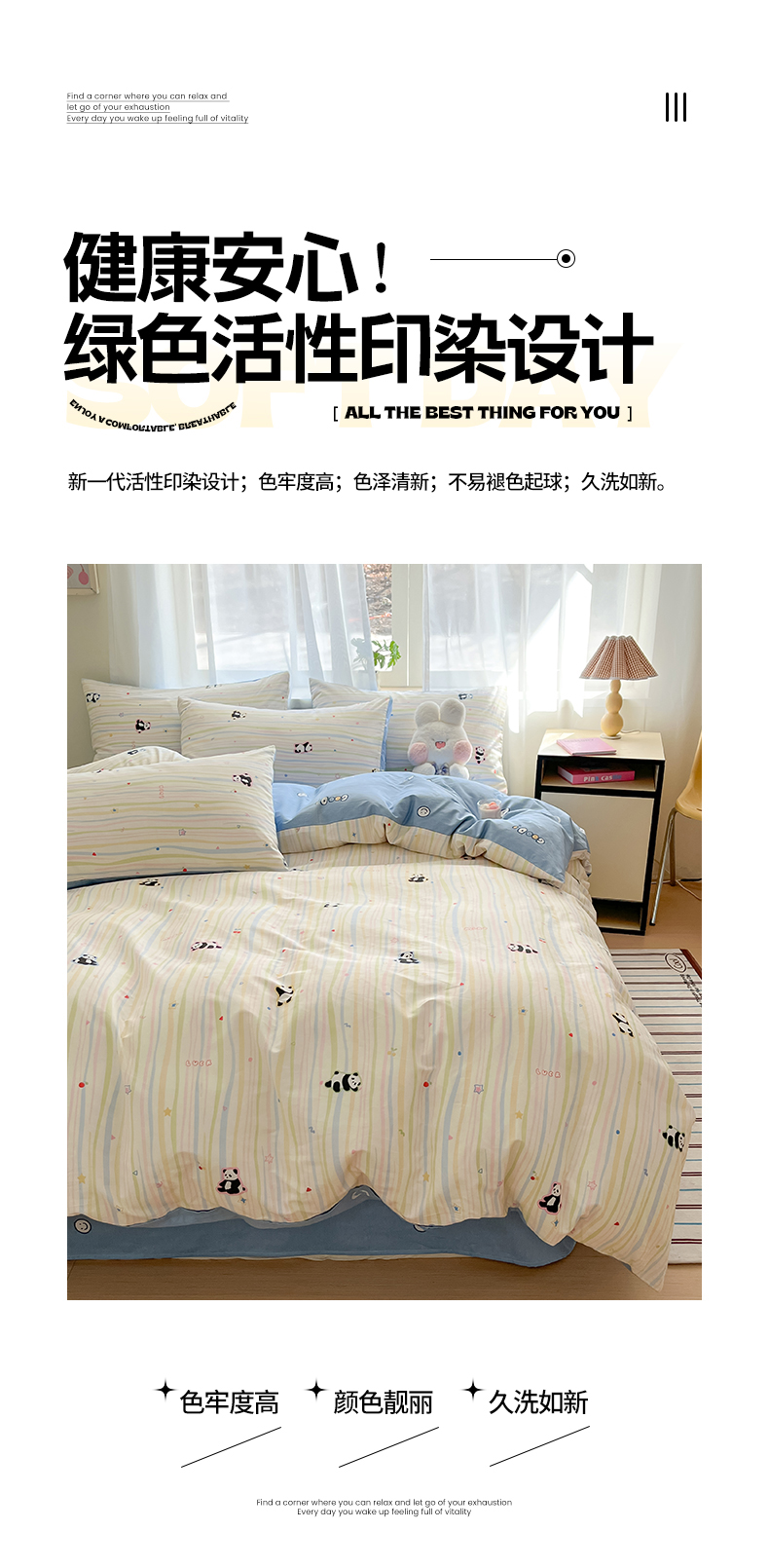 商品名称:吉象家纺 2025新款高支密全棉印花四件套12868跑量款 懒萌潘达