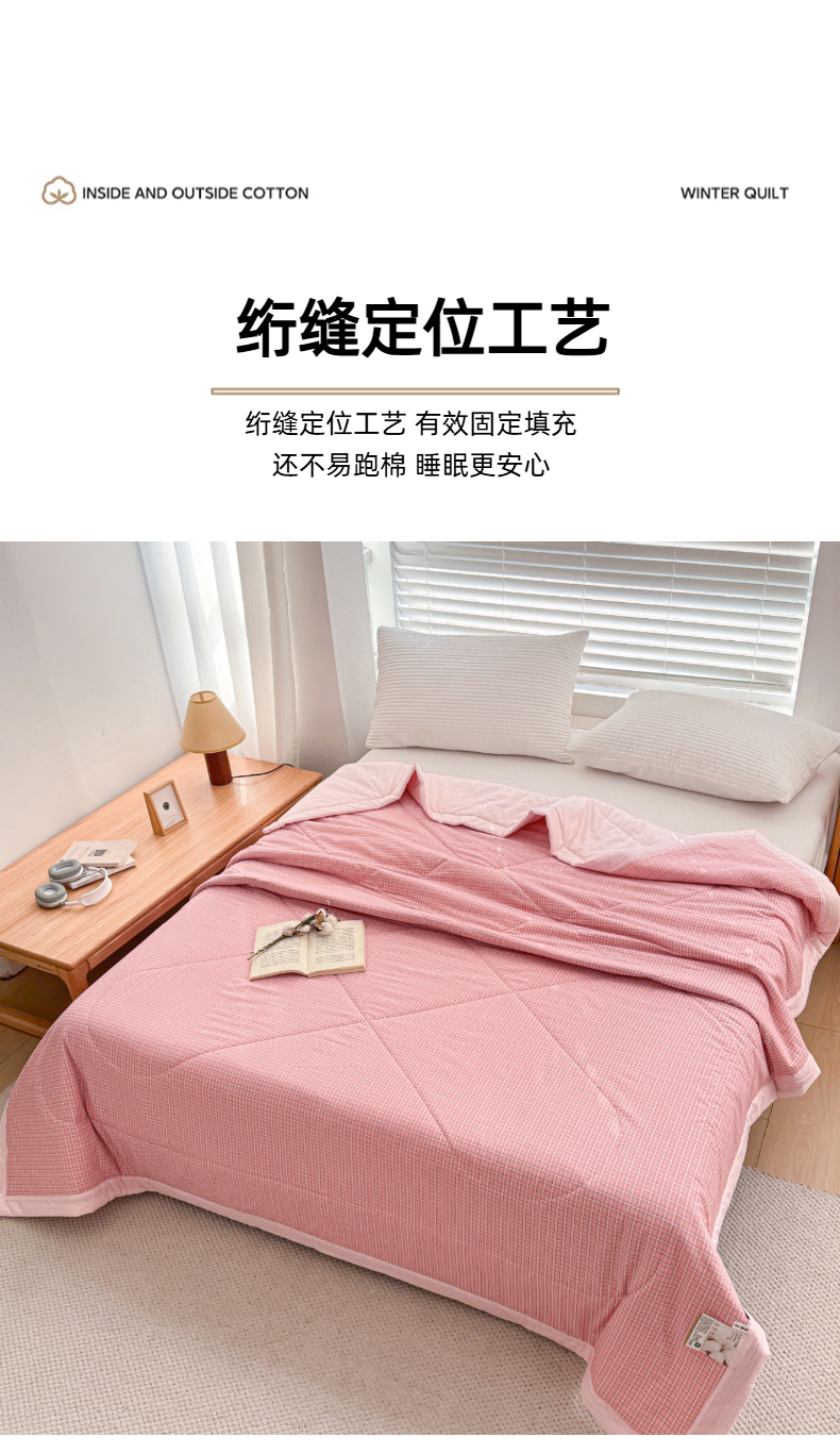 商品名称:金泰莱 2025新款里外全棉手包边棉花夏被 倾恋粉