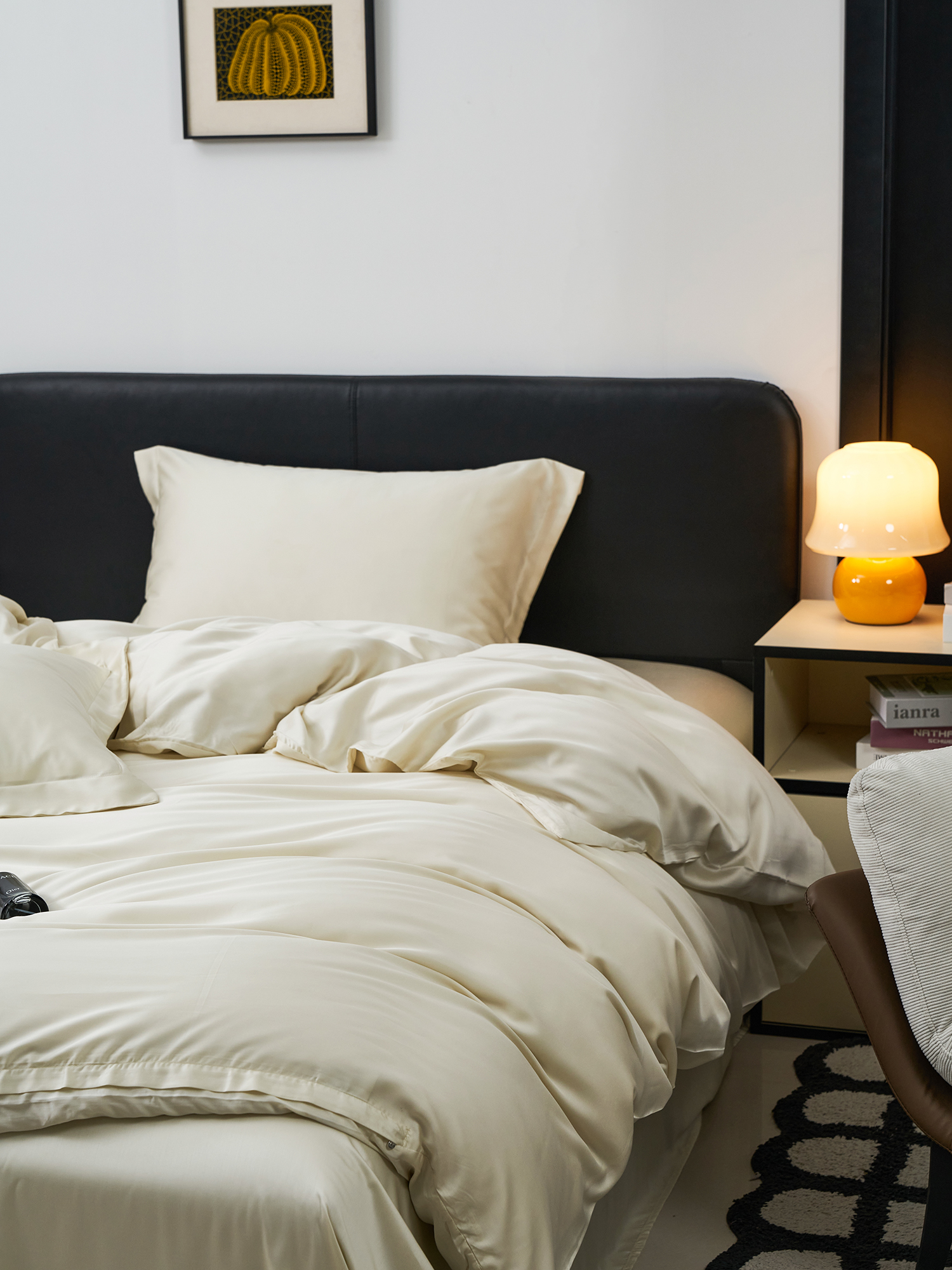 商品名称:顾家家居 2025新款纯色兰精天丝四件套 芝士黄