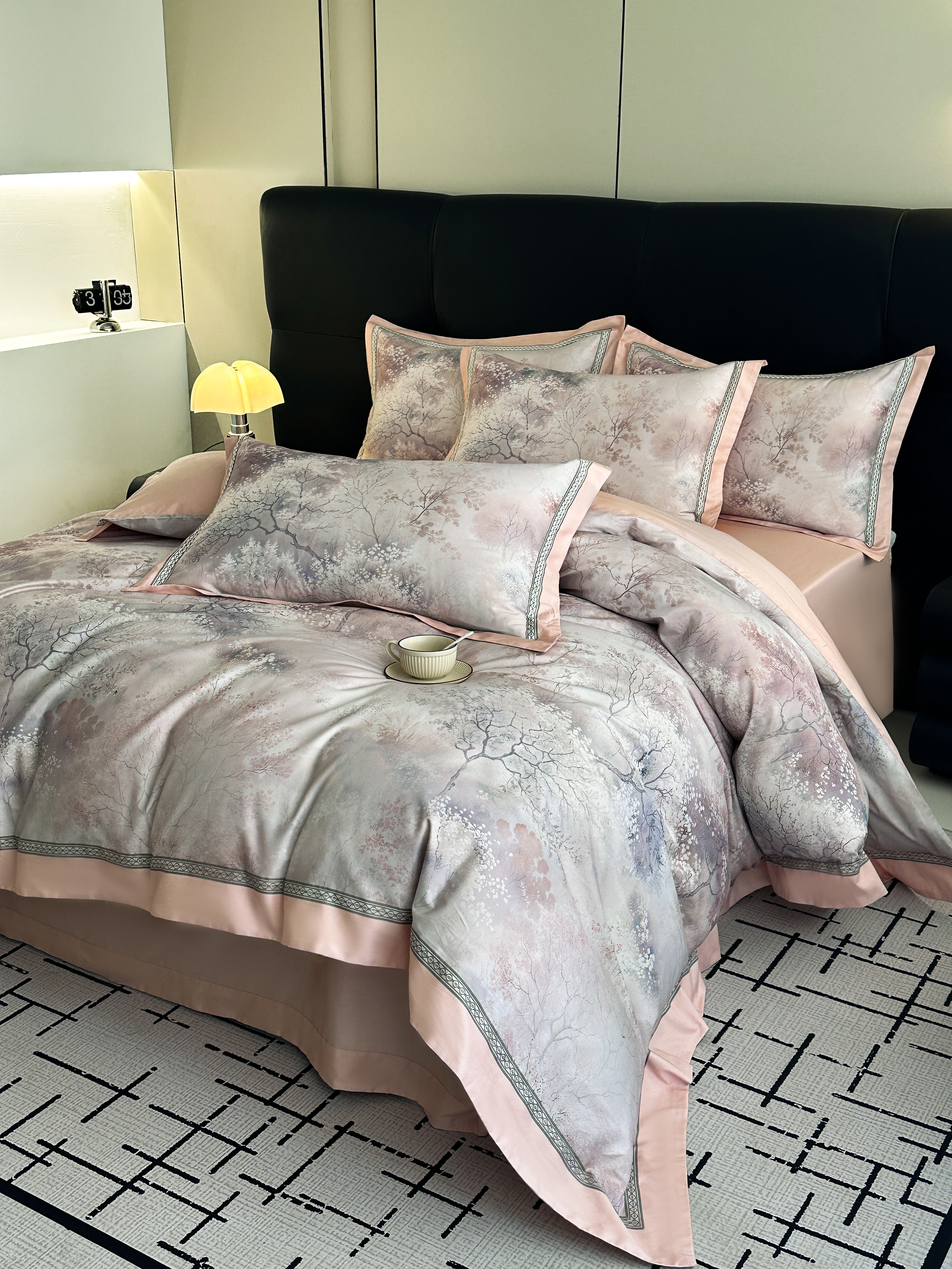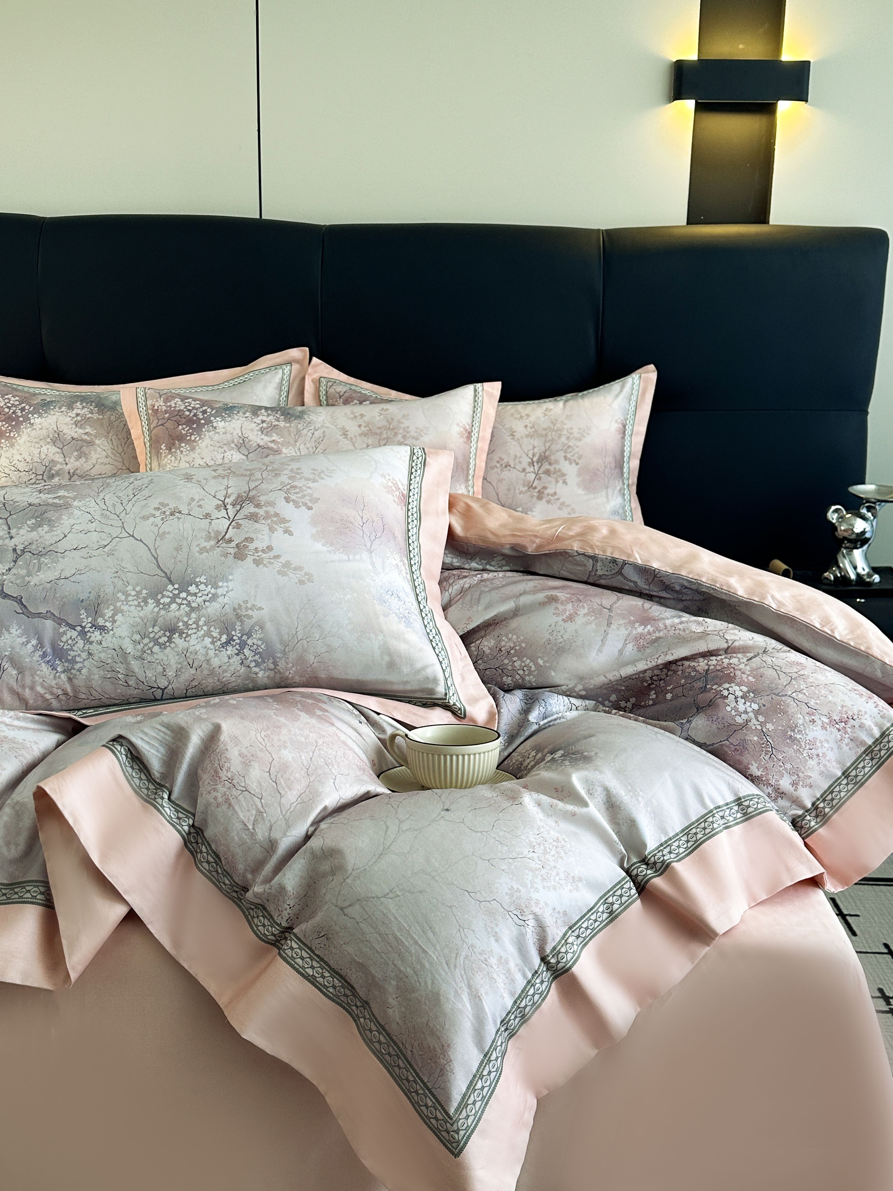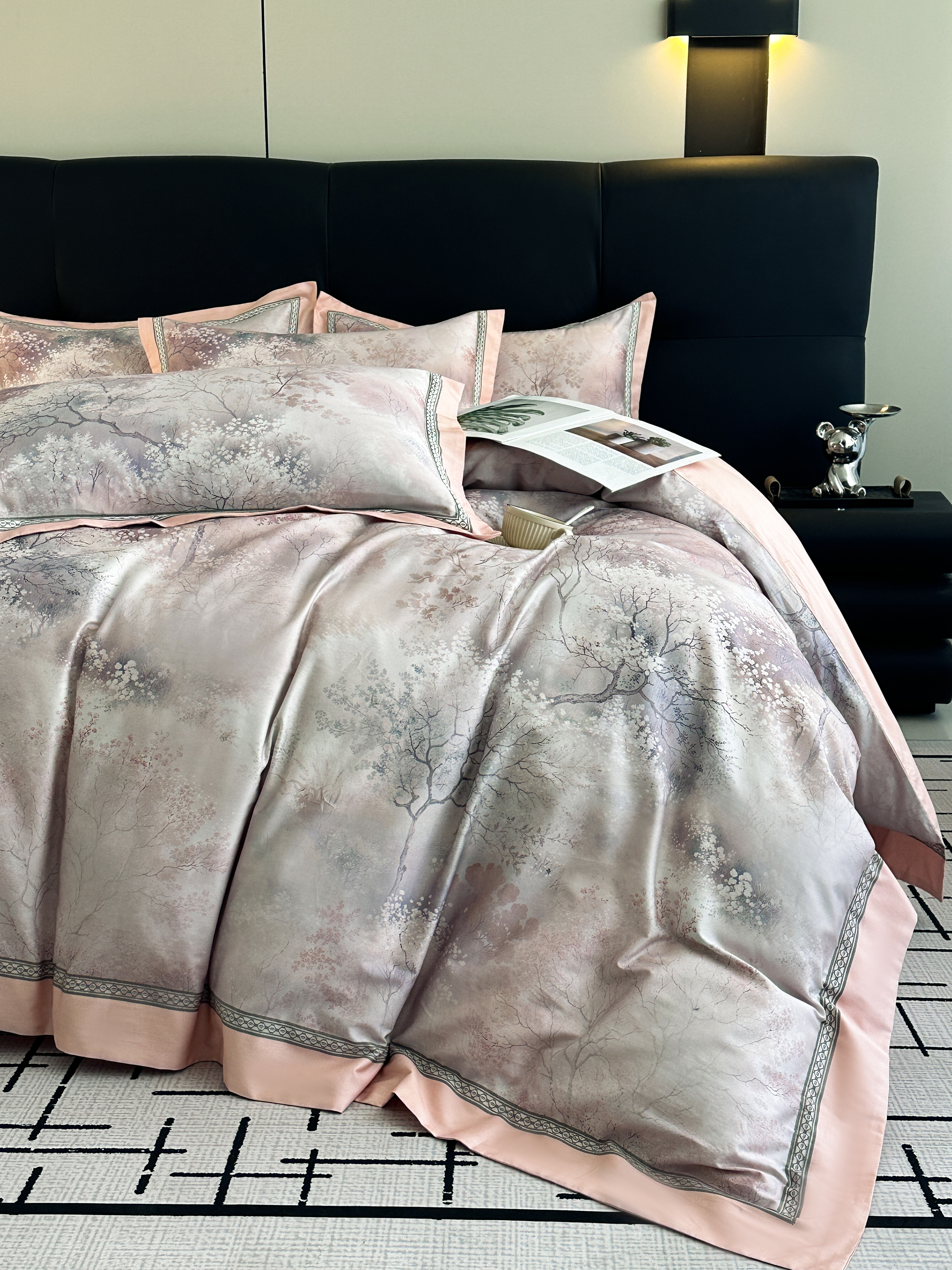 商品名称:顾家家居 2025新款长绒棉数码印花隐形宽边四件套 珠台玉露