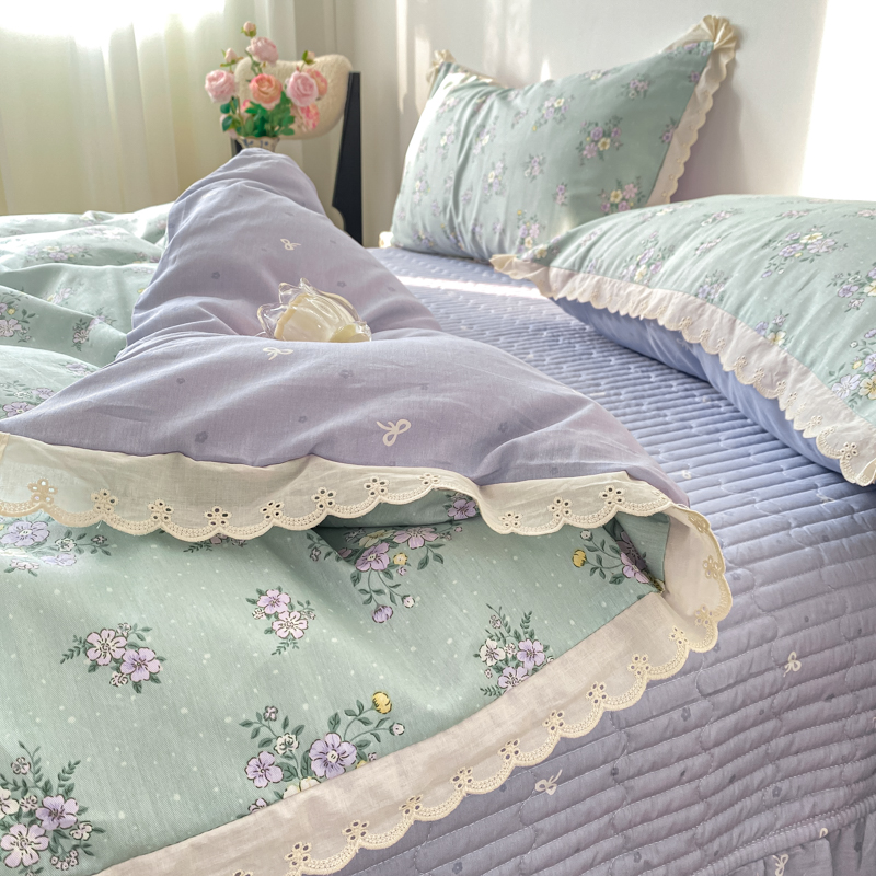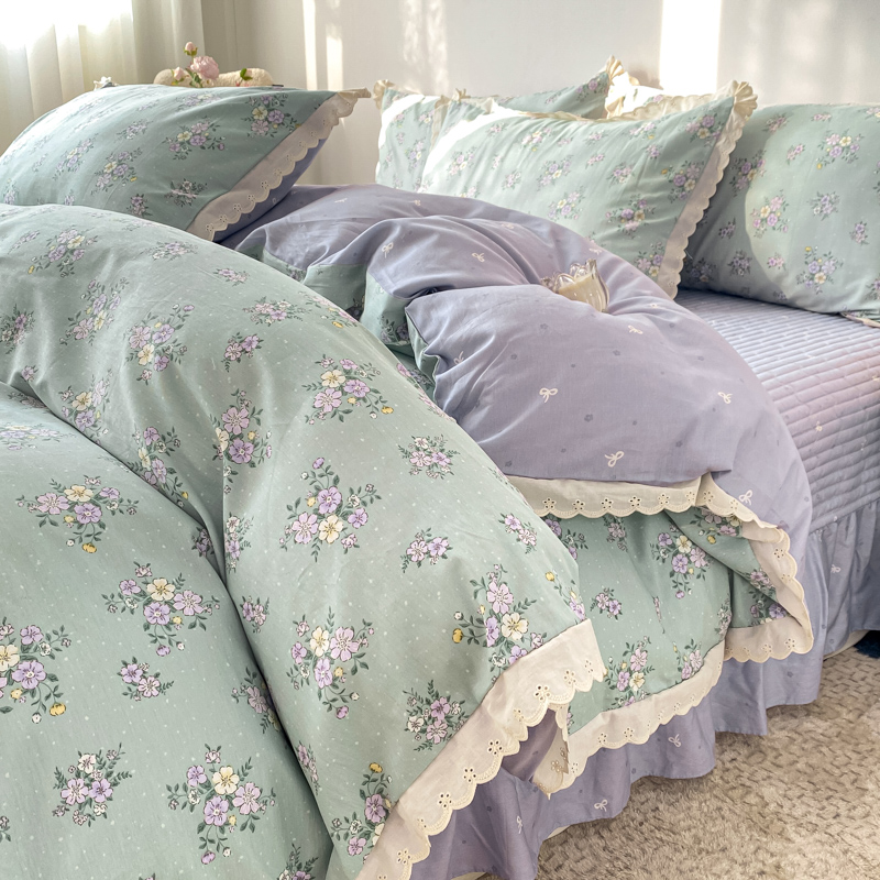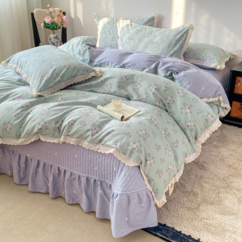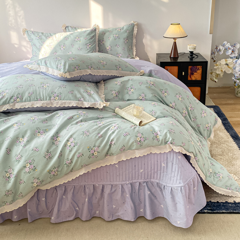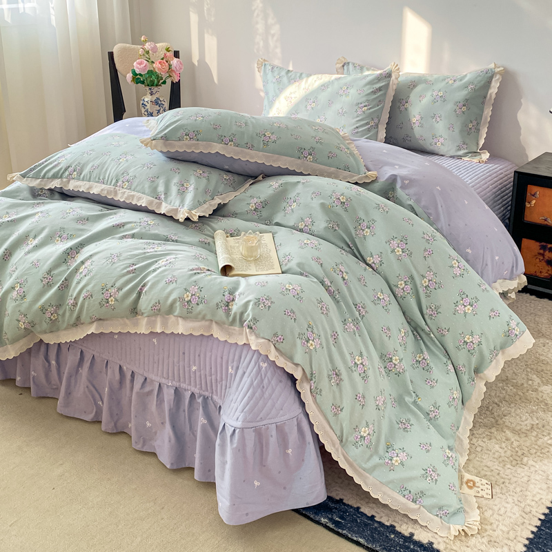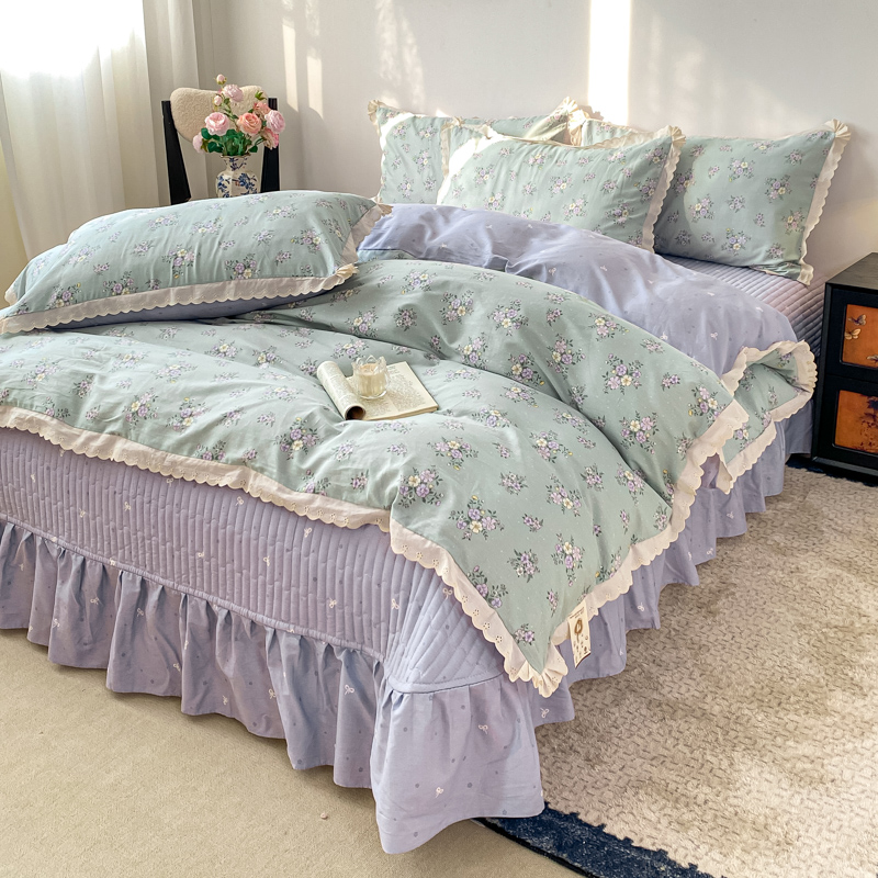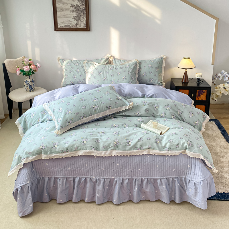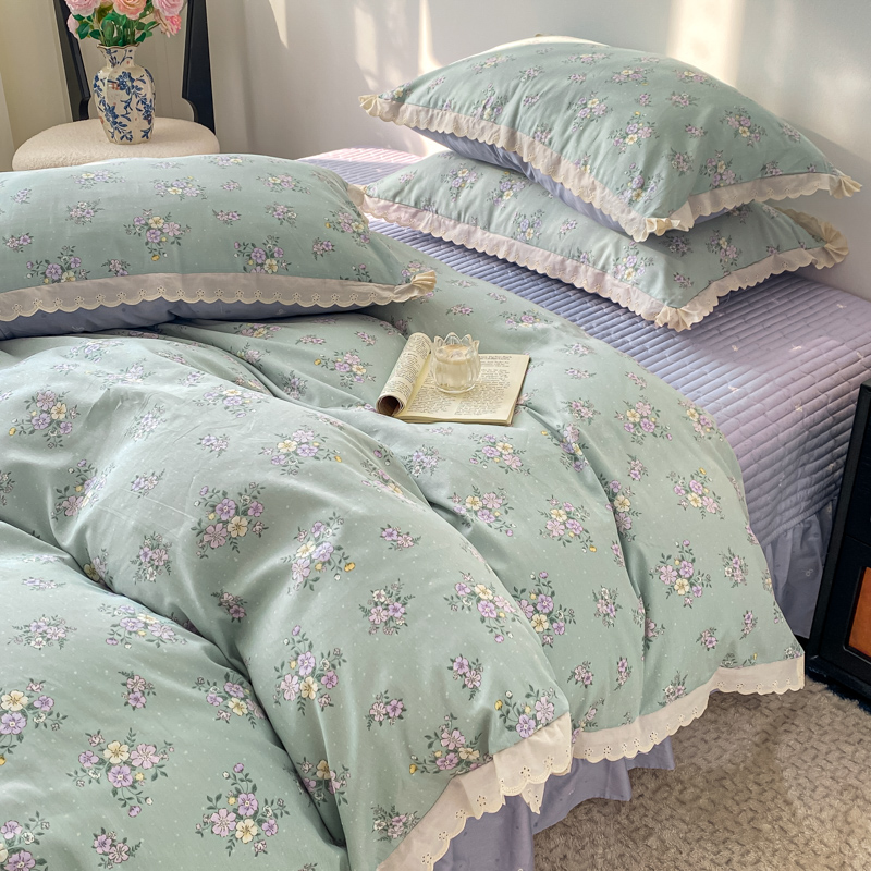 梦可莱家居 2025新款全棉韩版蕾丝边床盖四件套 罗兰