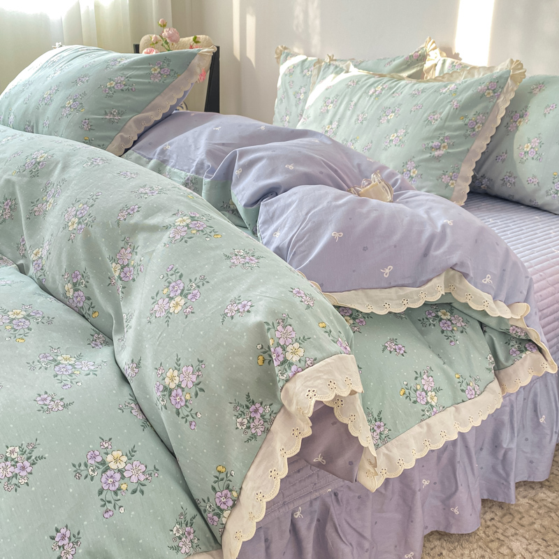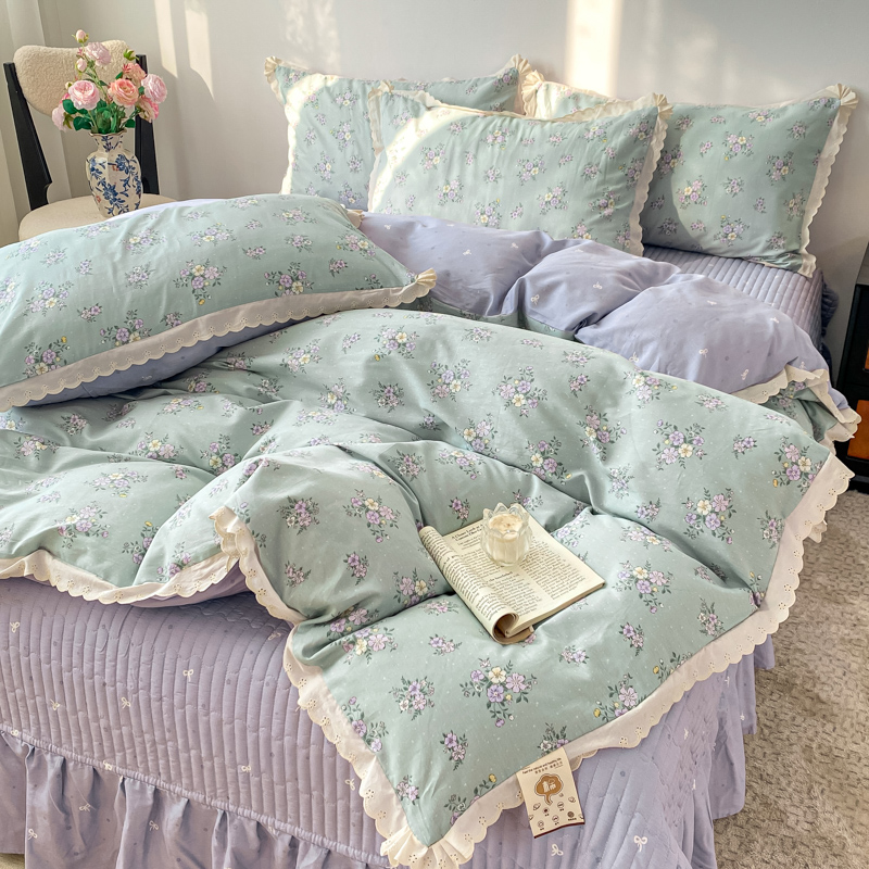 商品名称:梦可莱家居 2025新款全棉韩版蕾丝边床盖四件套 罗兰