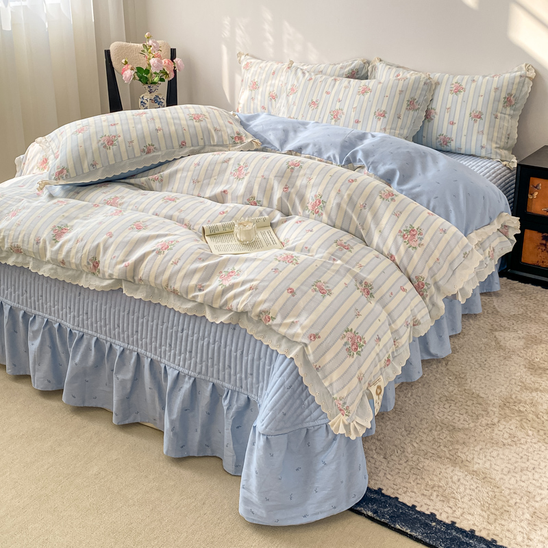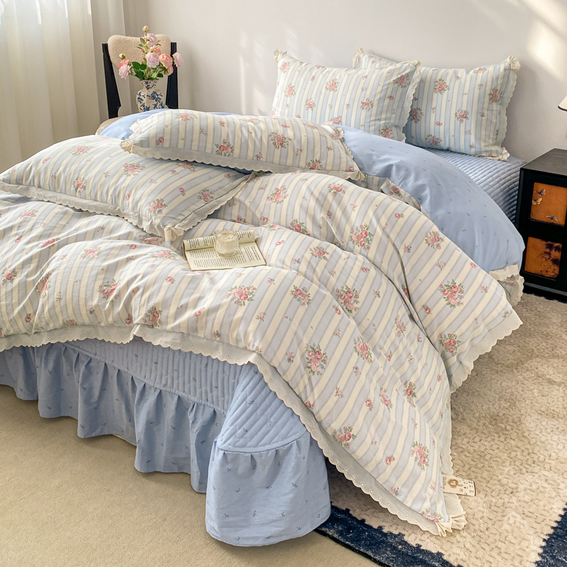 商品名称:梦可莱家居 2025新款全棉韩版蕾丝边床盖四件套 香奈儿