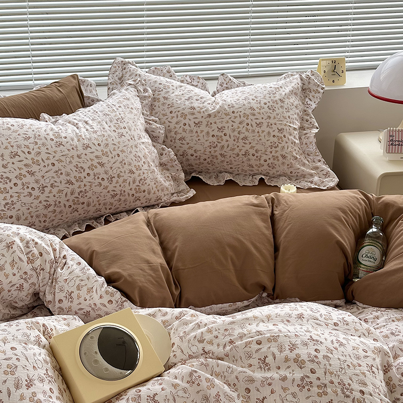 当前位置: 91家纺网 > 商品网购 > 床品套件 > 四件套 > 全棉普通四件套 > 希丞家居 2025新款花卉泡泡纱花边四件套 春野