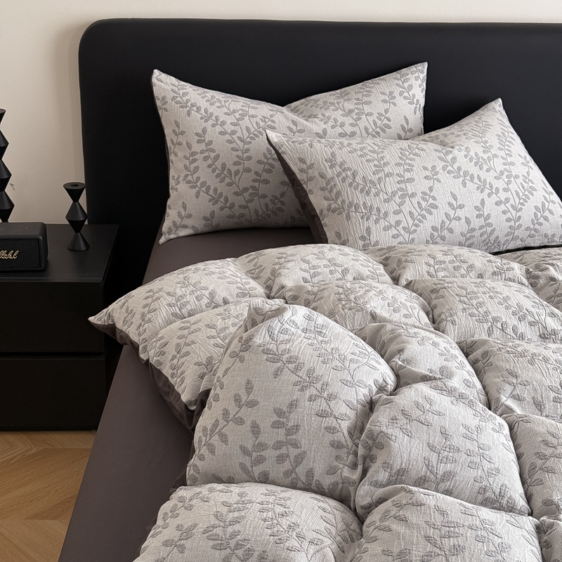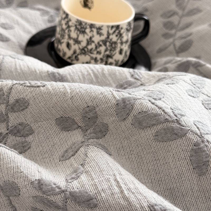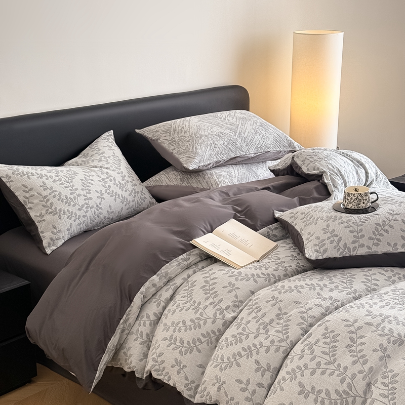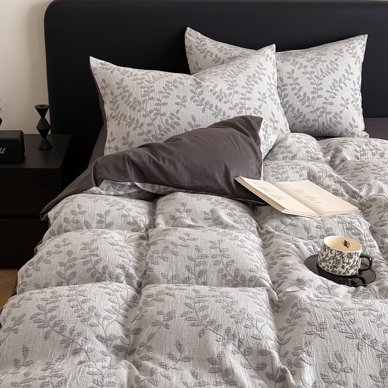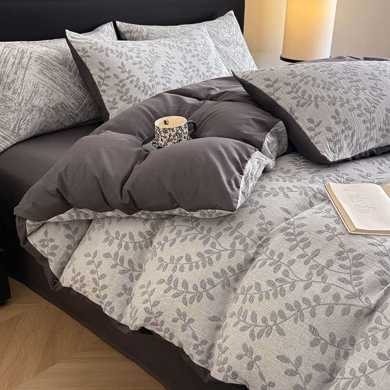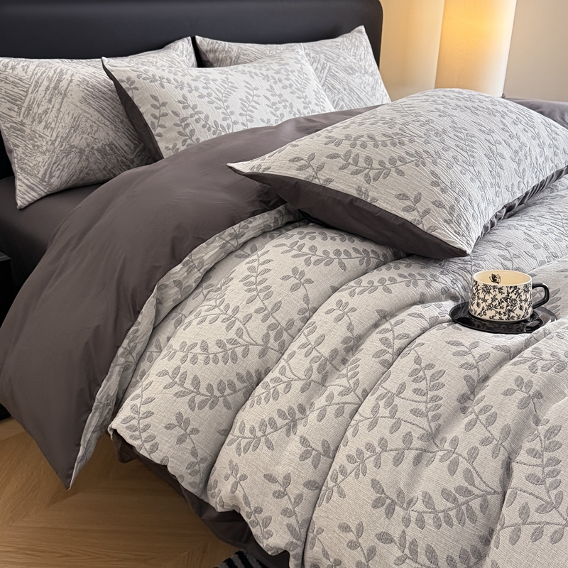 水云缦 2025新款水云缦全棉三层纱色织大提花四件套 叶茂-深灰