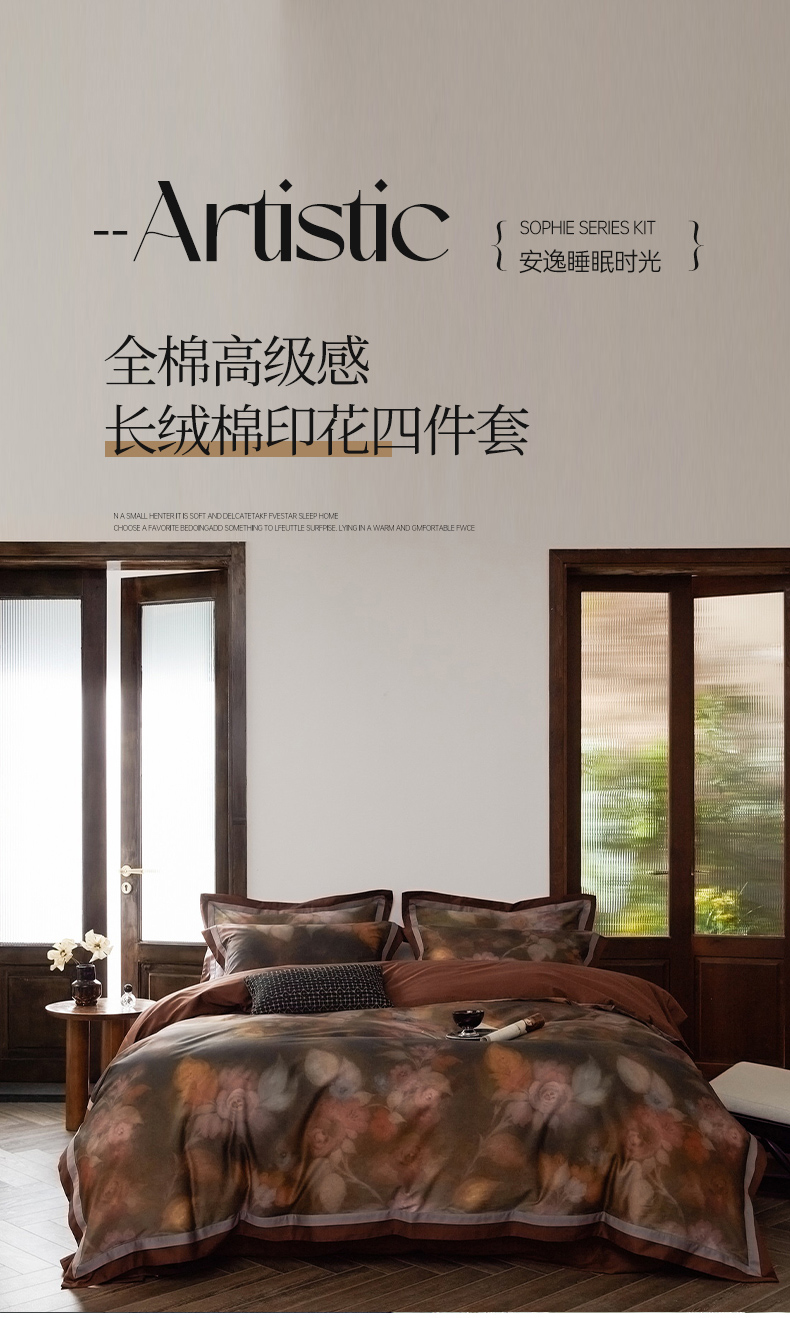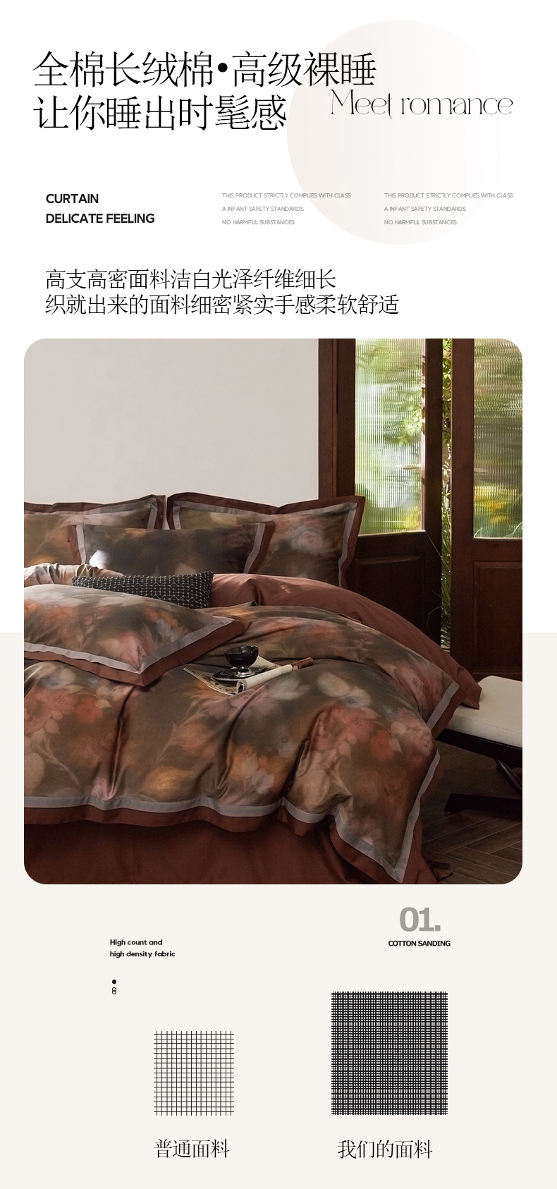 (总)由丽家纺 2025新款亲肤舒适全棉纯棉臻棉数码印花四件套系列,繁花似锦,感棉-粉,金溪-灰,金溪-咖,茂林-兰,明羽-黄,沐恩-绿,野玫瑰-紫,感棉-绿,玫瑰颂-粉
