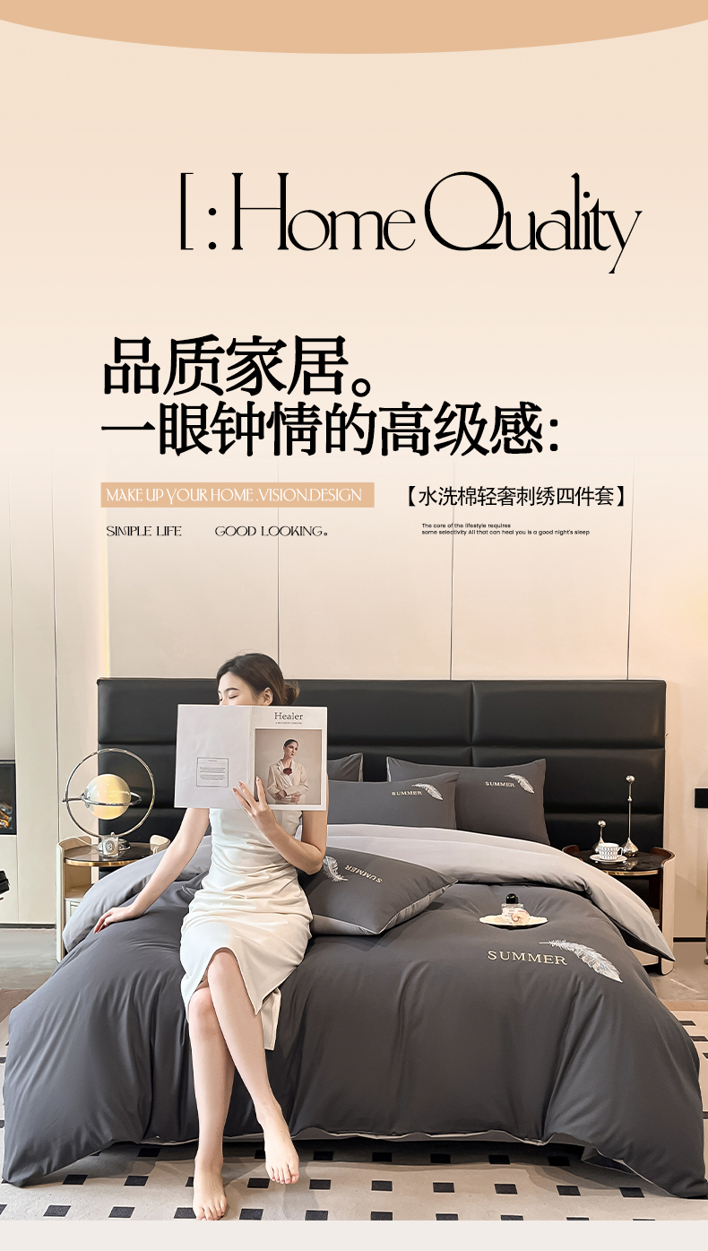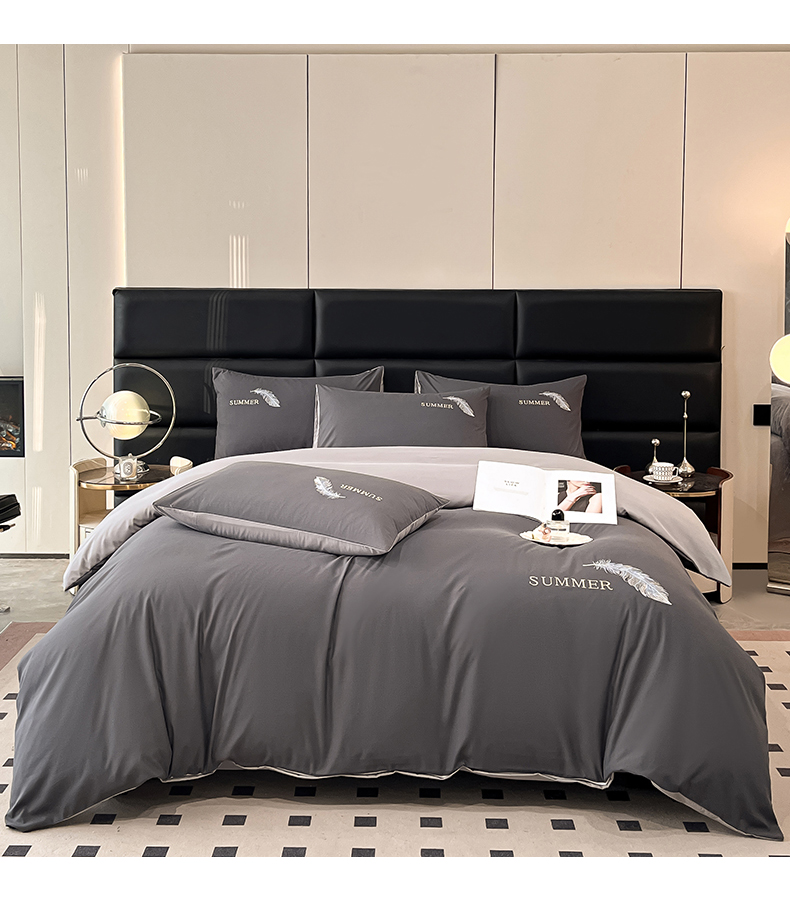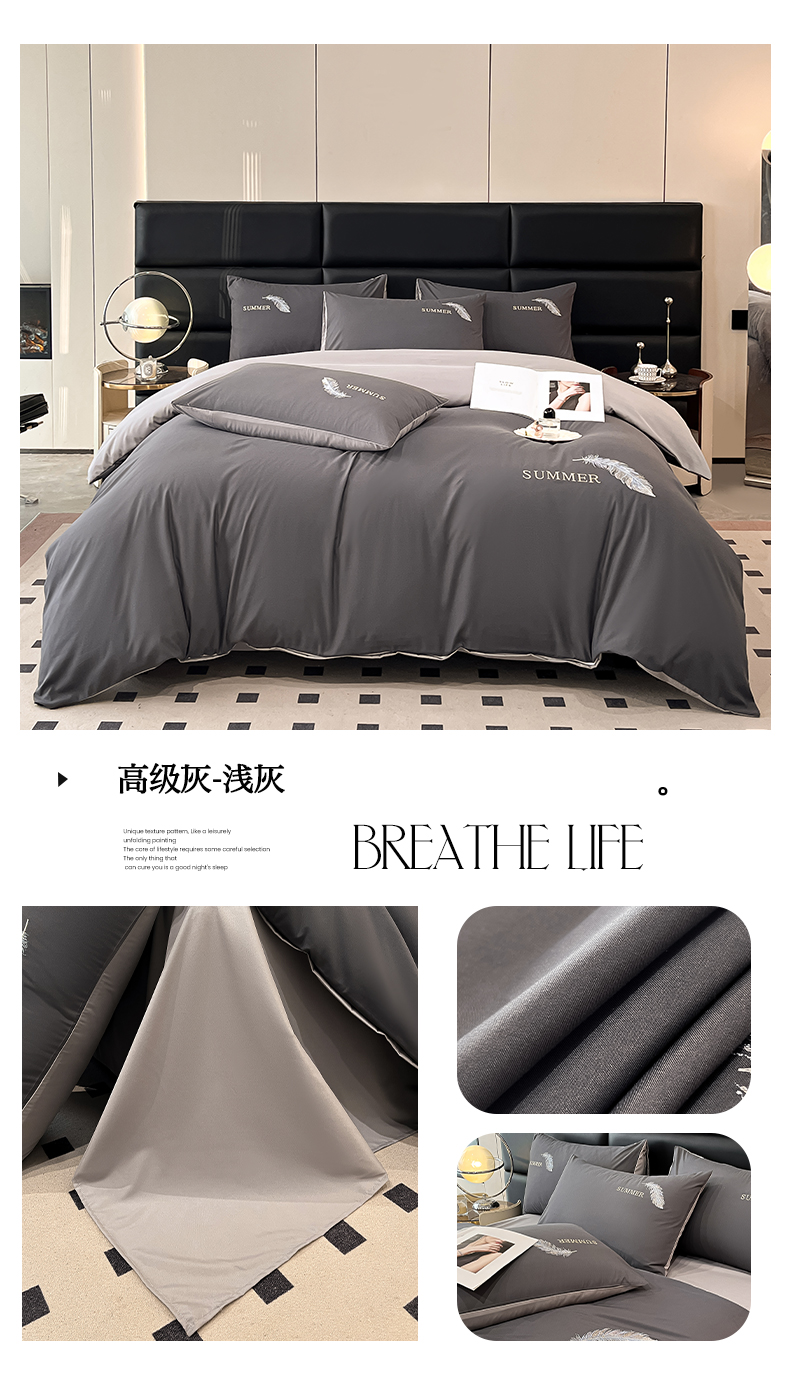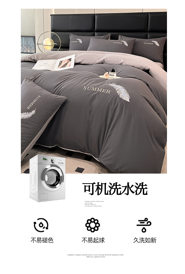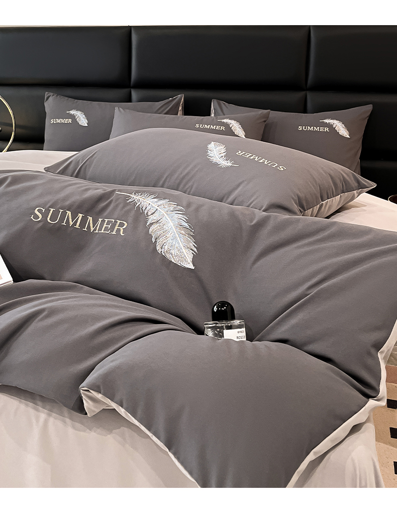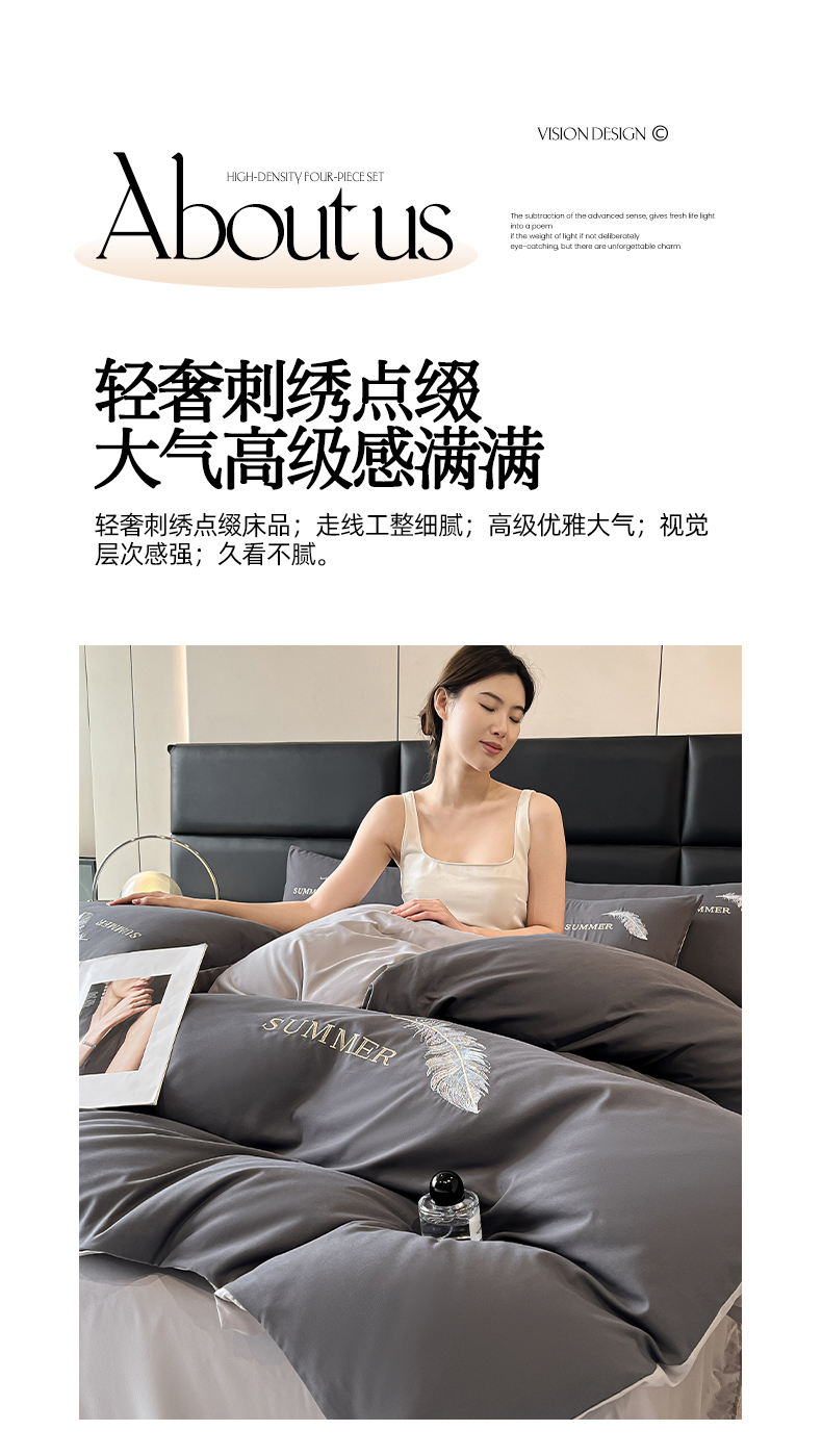 当前位置: 91家纺网 > 商品网购 > 床品套件 > 四件套 > 水洗棉四件套 > 火麒麟 2025新款亲肤水洗棉轻奢刺绣四件套-彩羽系列 彩羽-高级灰-浅灰