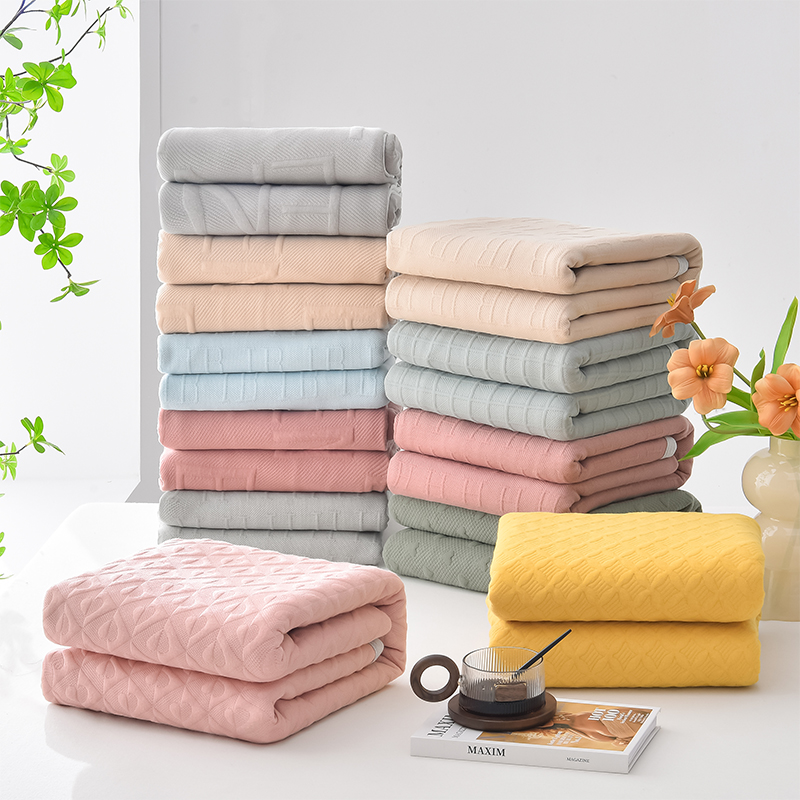 (总)米奈家居 2025全棉针织棉提花多功能盖毯,豆沙粉EN,豆沙粉H,公主粉,莱茵绿,玛雅灰,柠檬黄,绅士灰,天空蓝,香槟金EN,香槟金H,星空灰