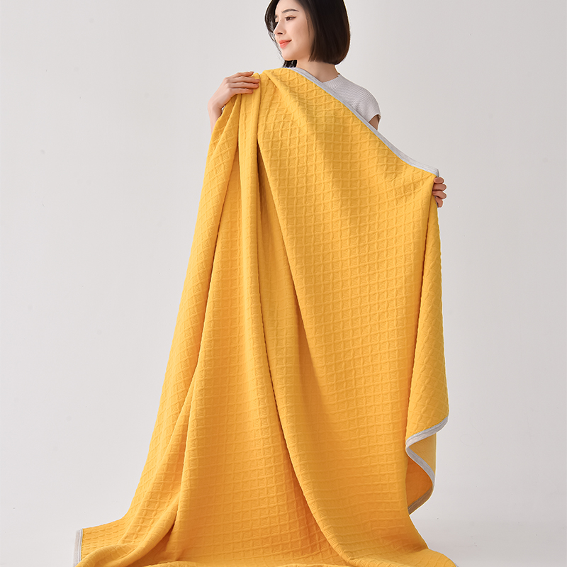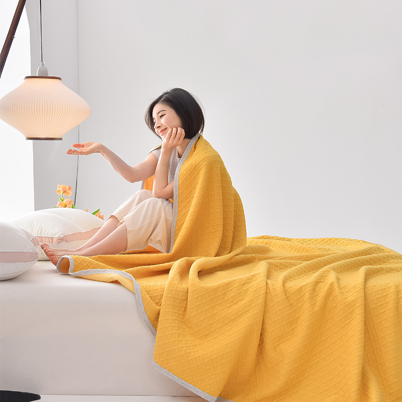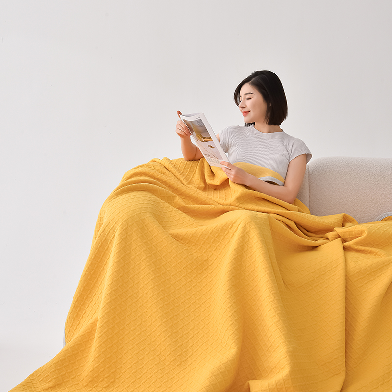 商品名称:米奈家居 2025全棉针织棉提花多功能盖毯 柠檬黄