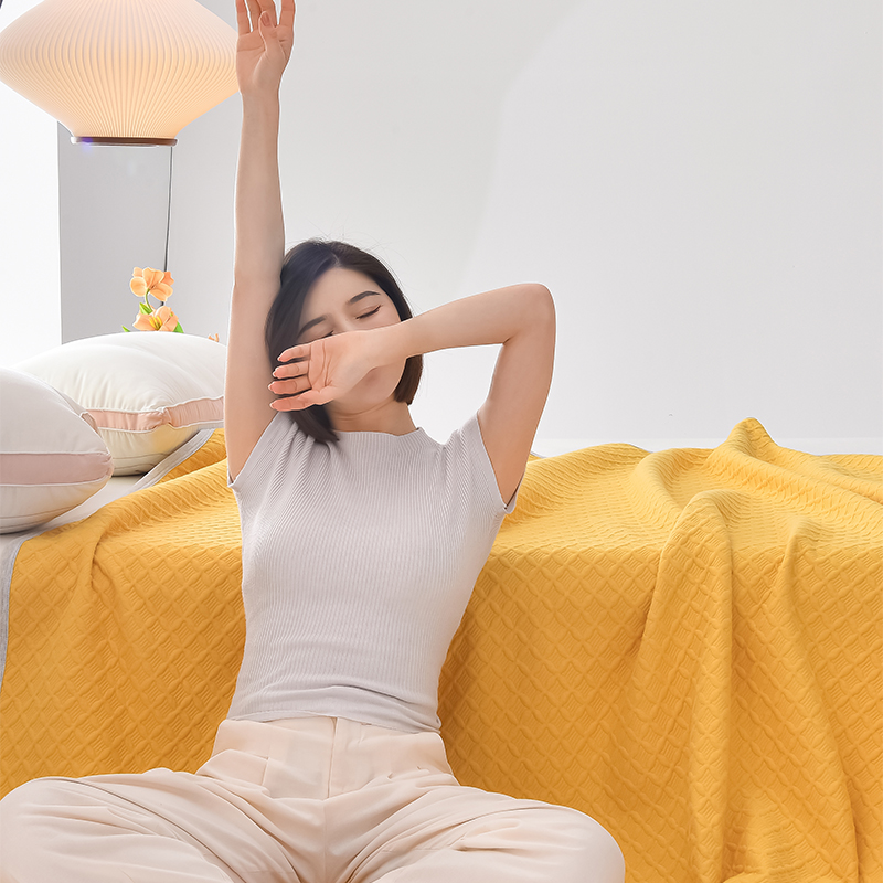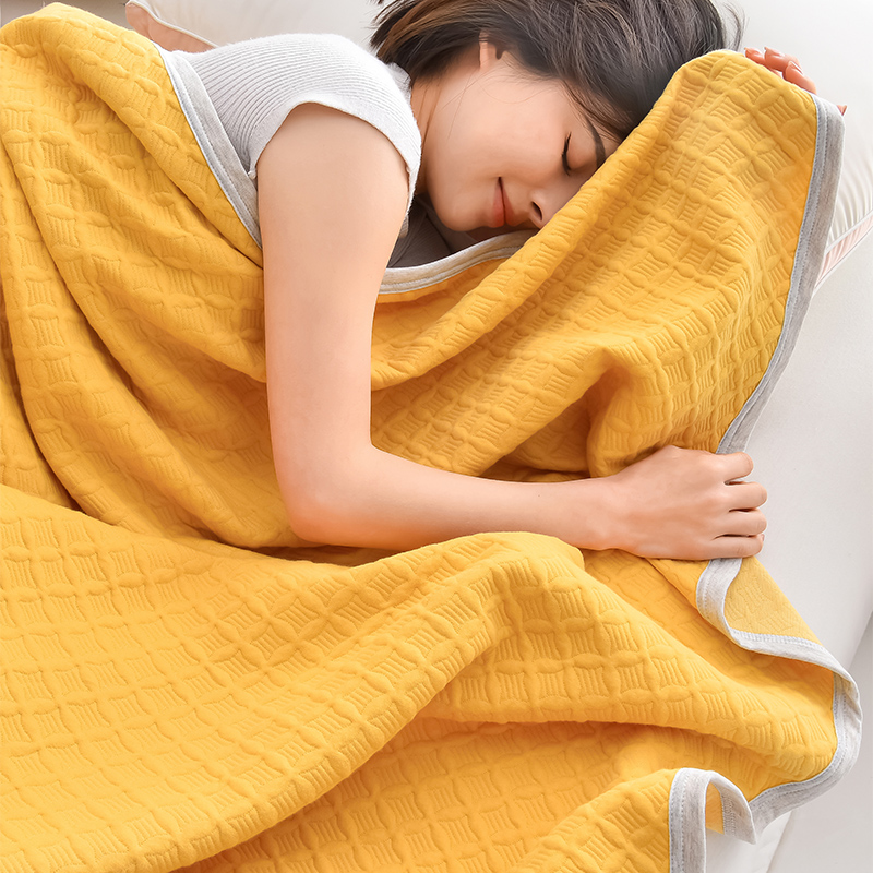 米奈家居 2025全棉针织棉提花多功能盖毯 柠檬黄