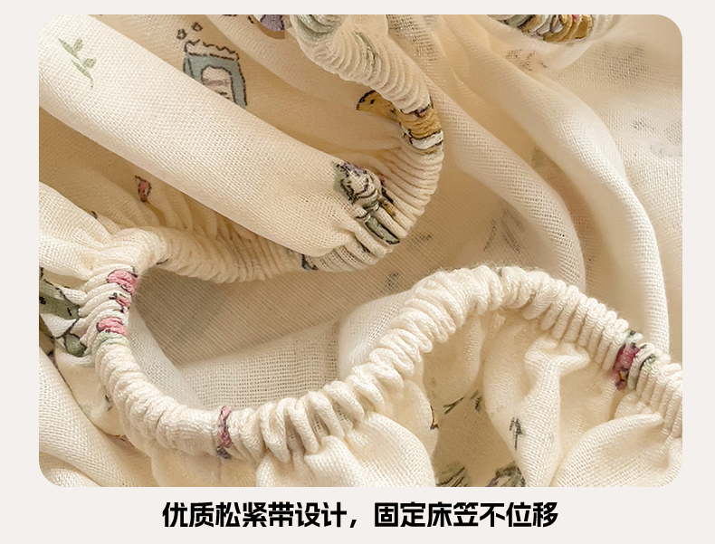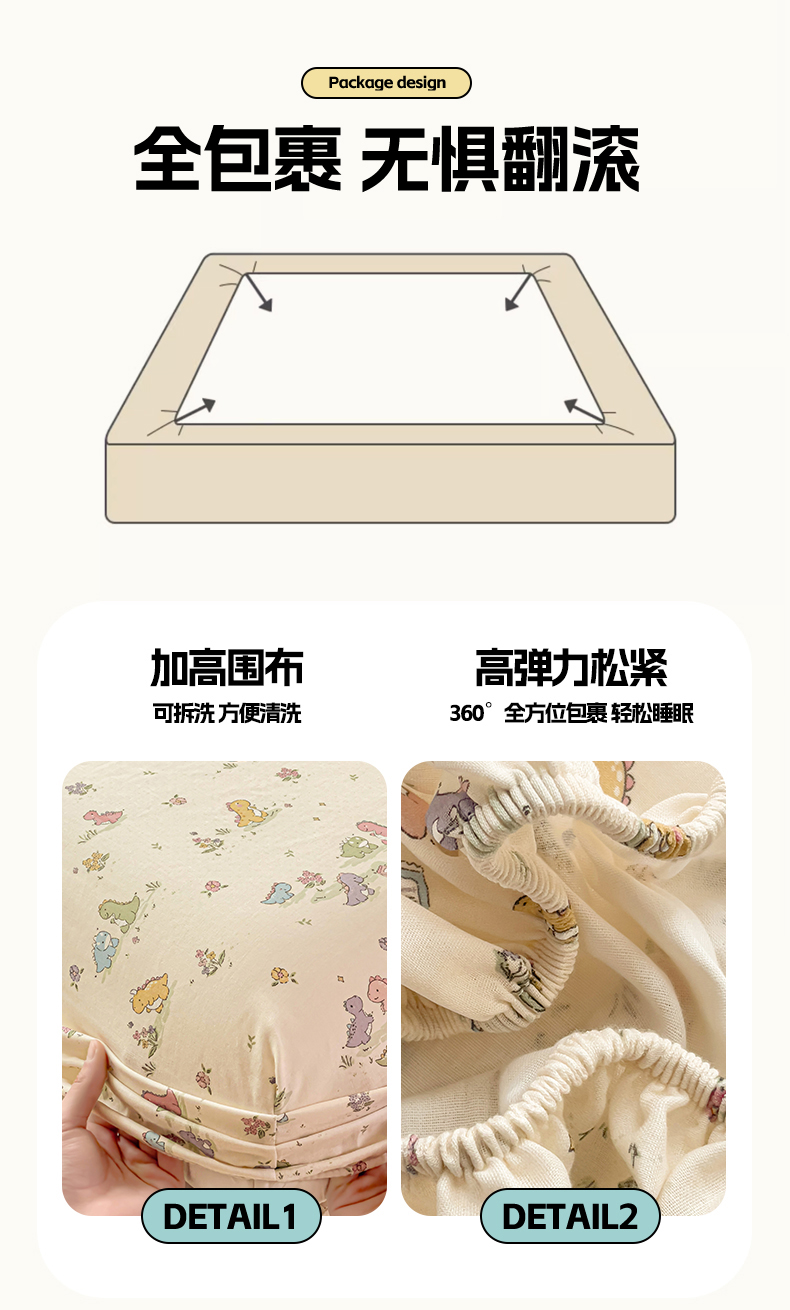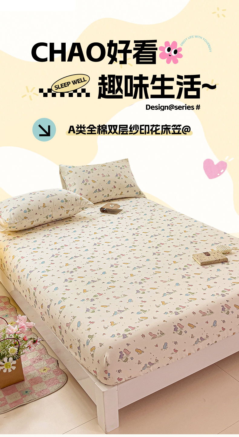 名兮家居 2025新款全棉双层纱床笠 双层纱-恐龙戏水