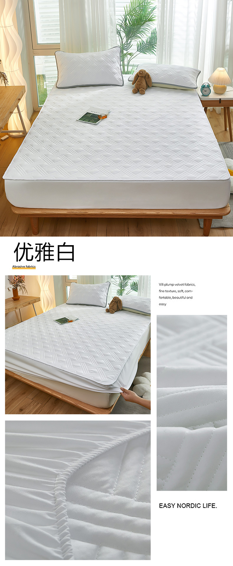 2023新款 印花A类水洗亲肤棉绗绣加厚夹棉防水床笠 优雅白