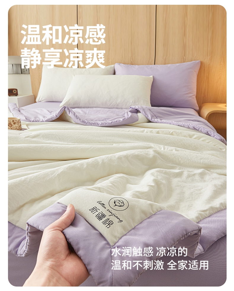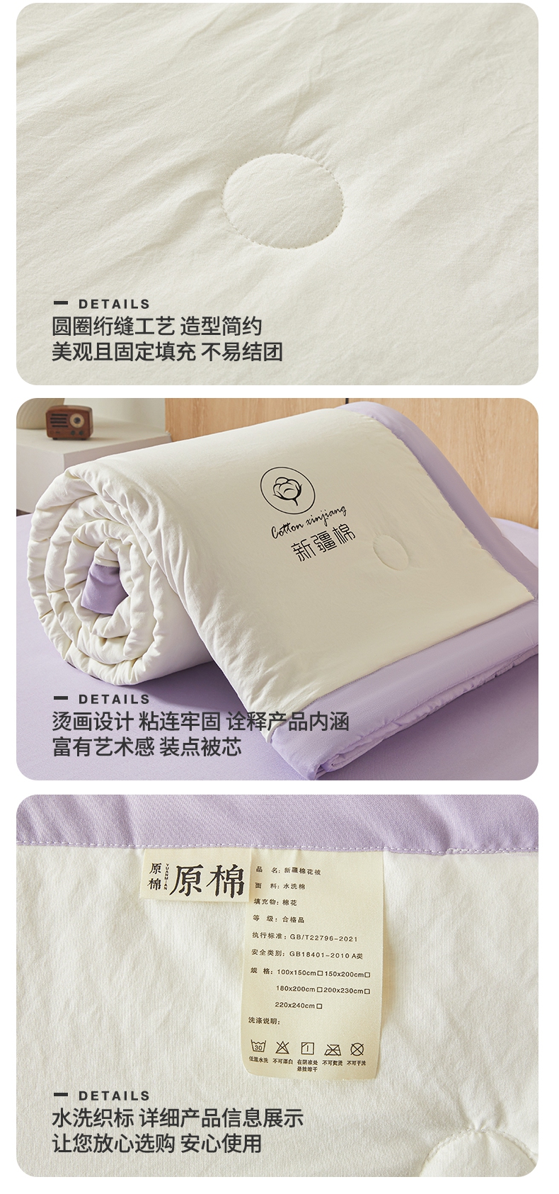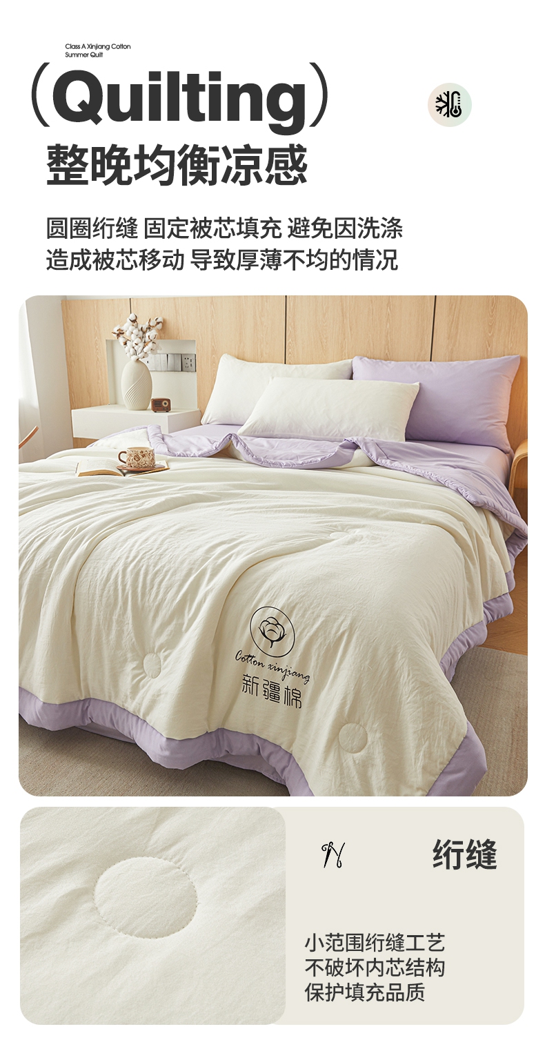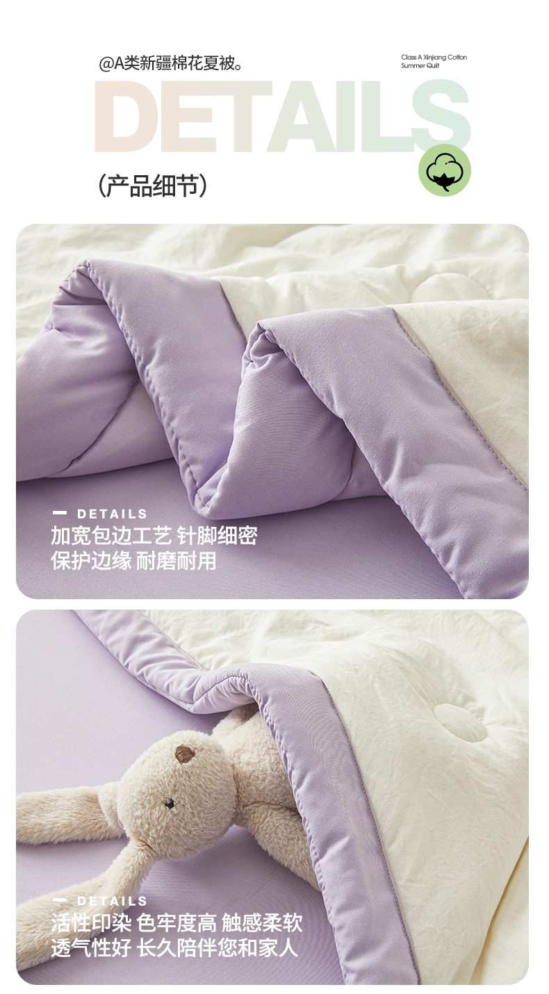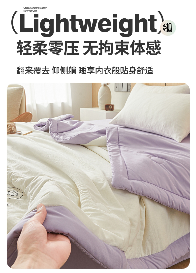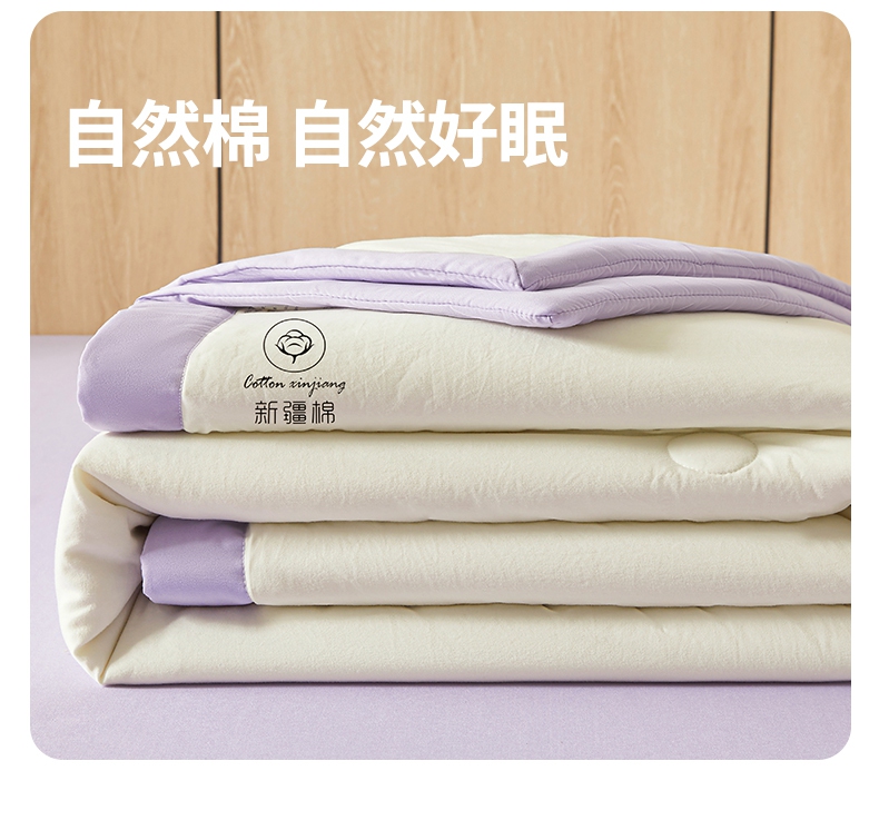 商品名称:晓时候 2025新款无印风水洗棉新疆棉花被夏被夏凉被空调被子 素夏-白紫