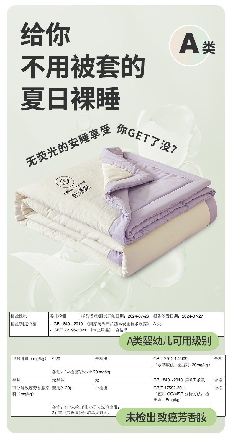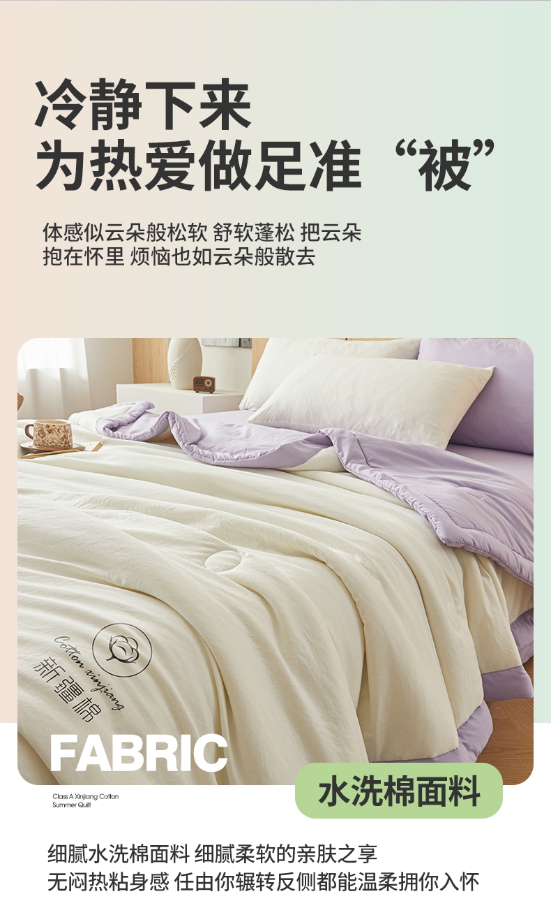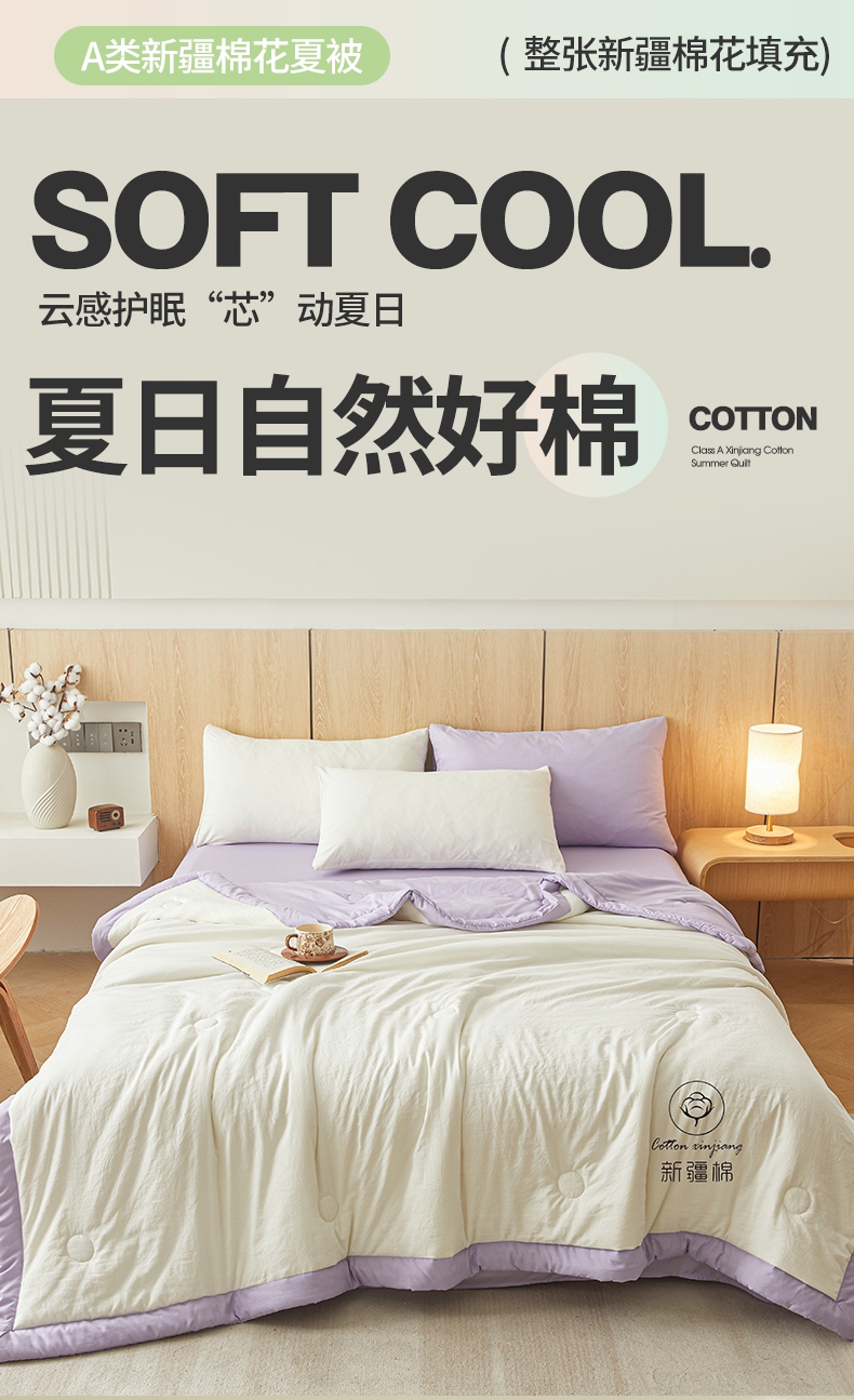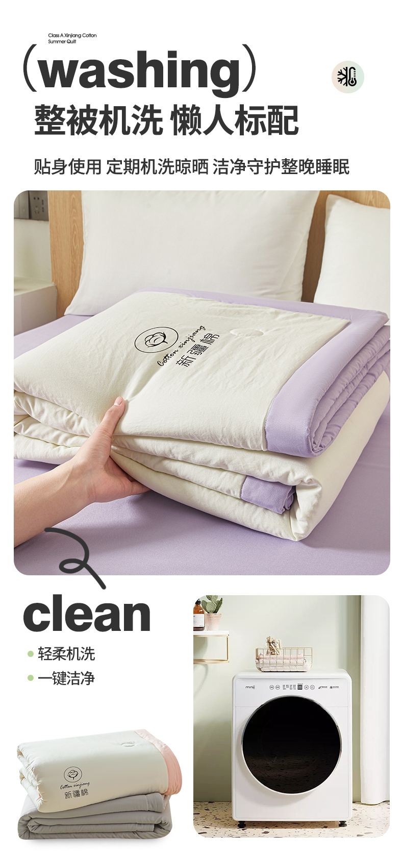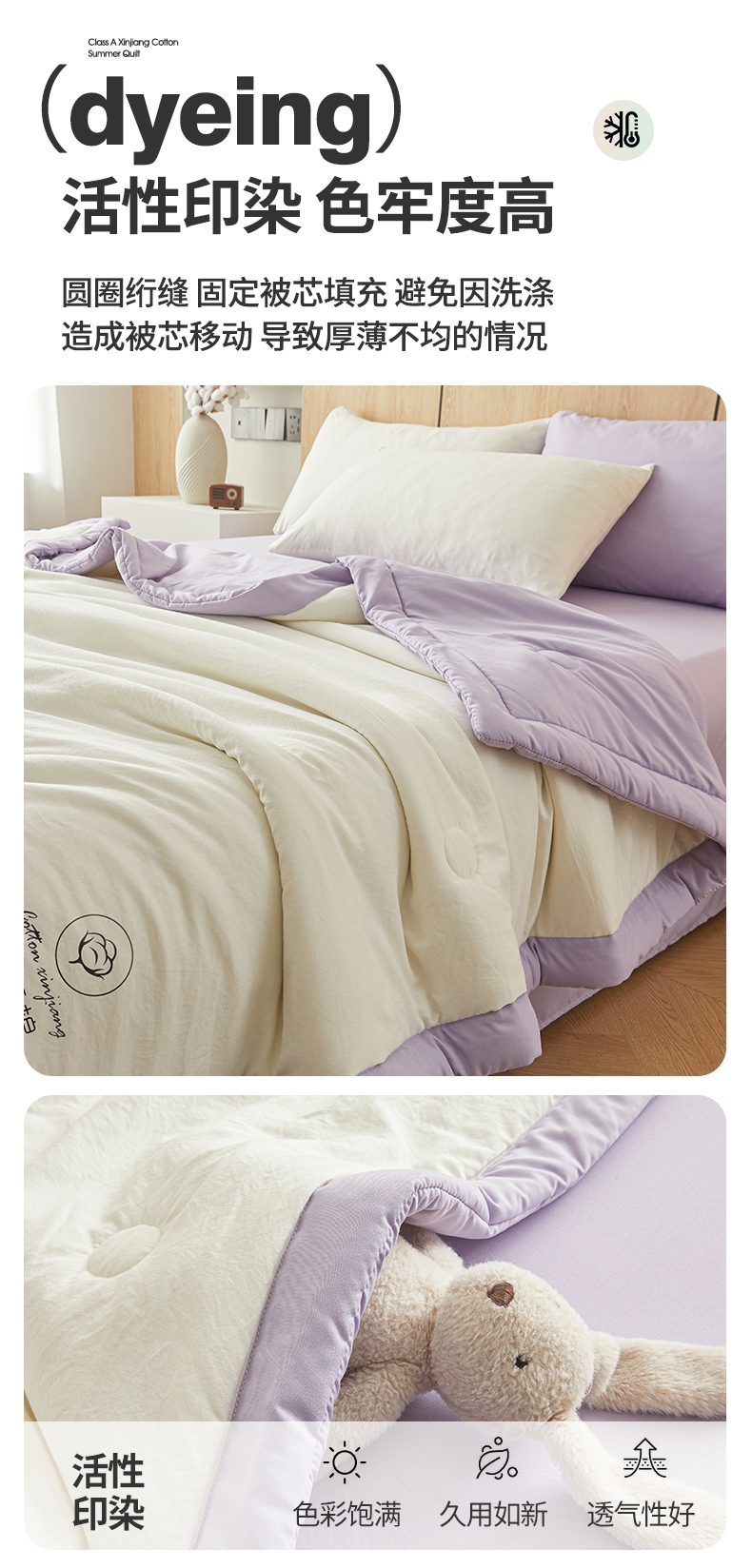 商品名称:晓时候 2025新款无印风水洗棉新疆棉花被夏被夏凉被空调被子 素夏-白紫