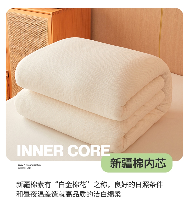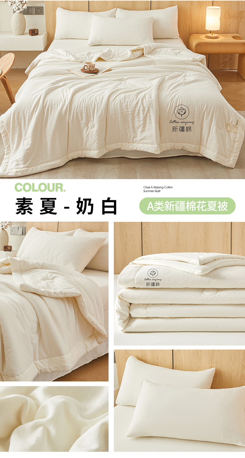 晓时候 2025新款无印风水洗棉新疆棉花被夏被夏凉被空调被子 素夏-白紫