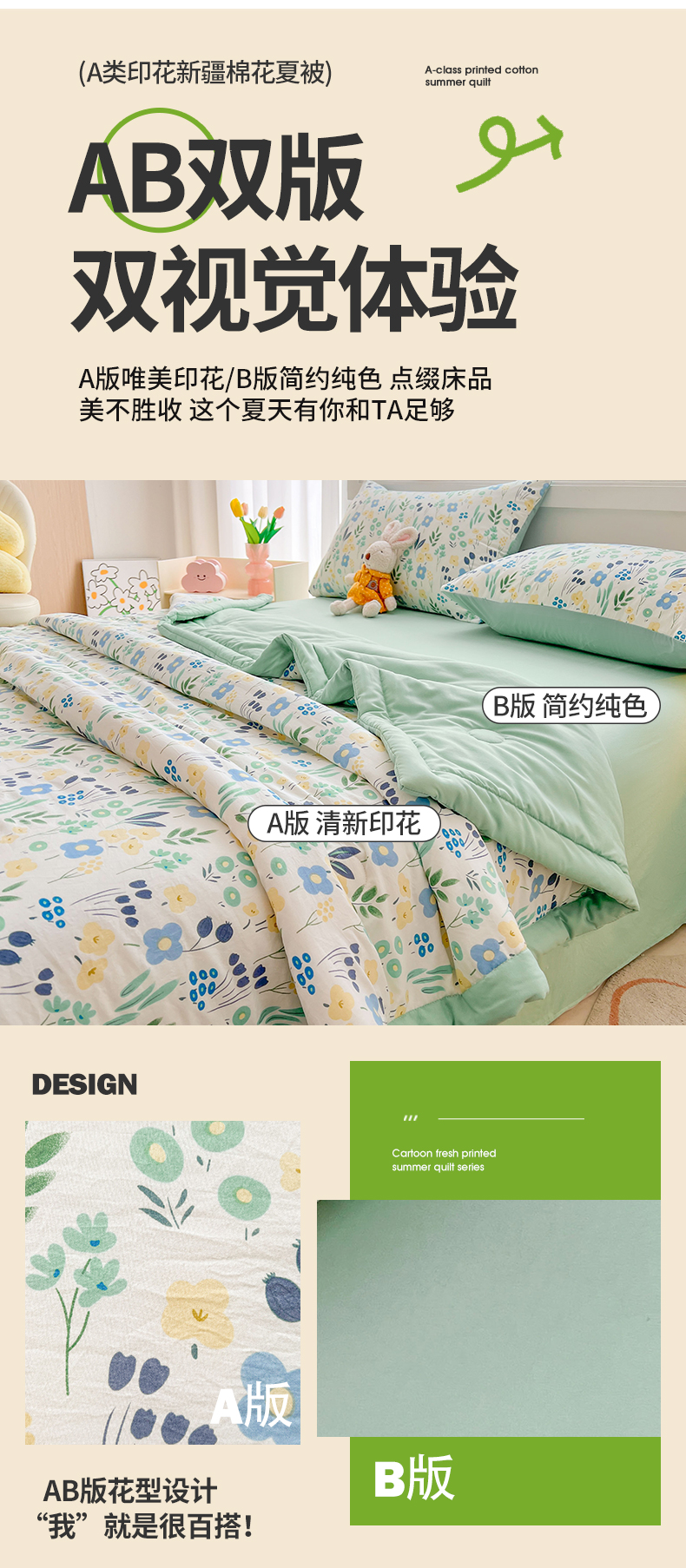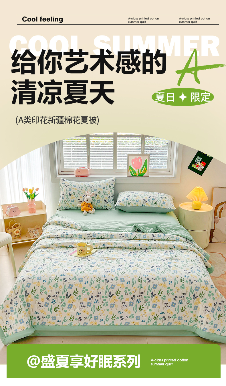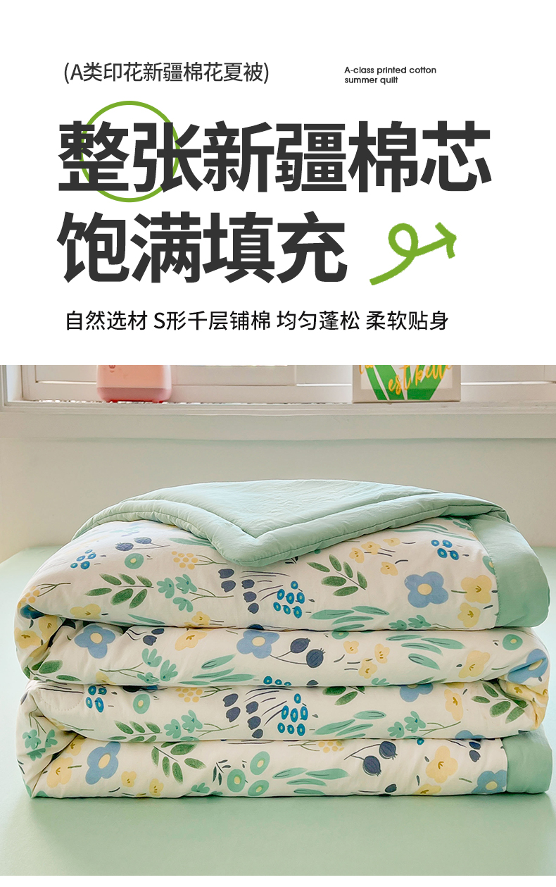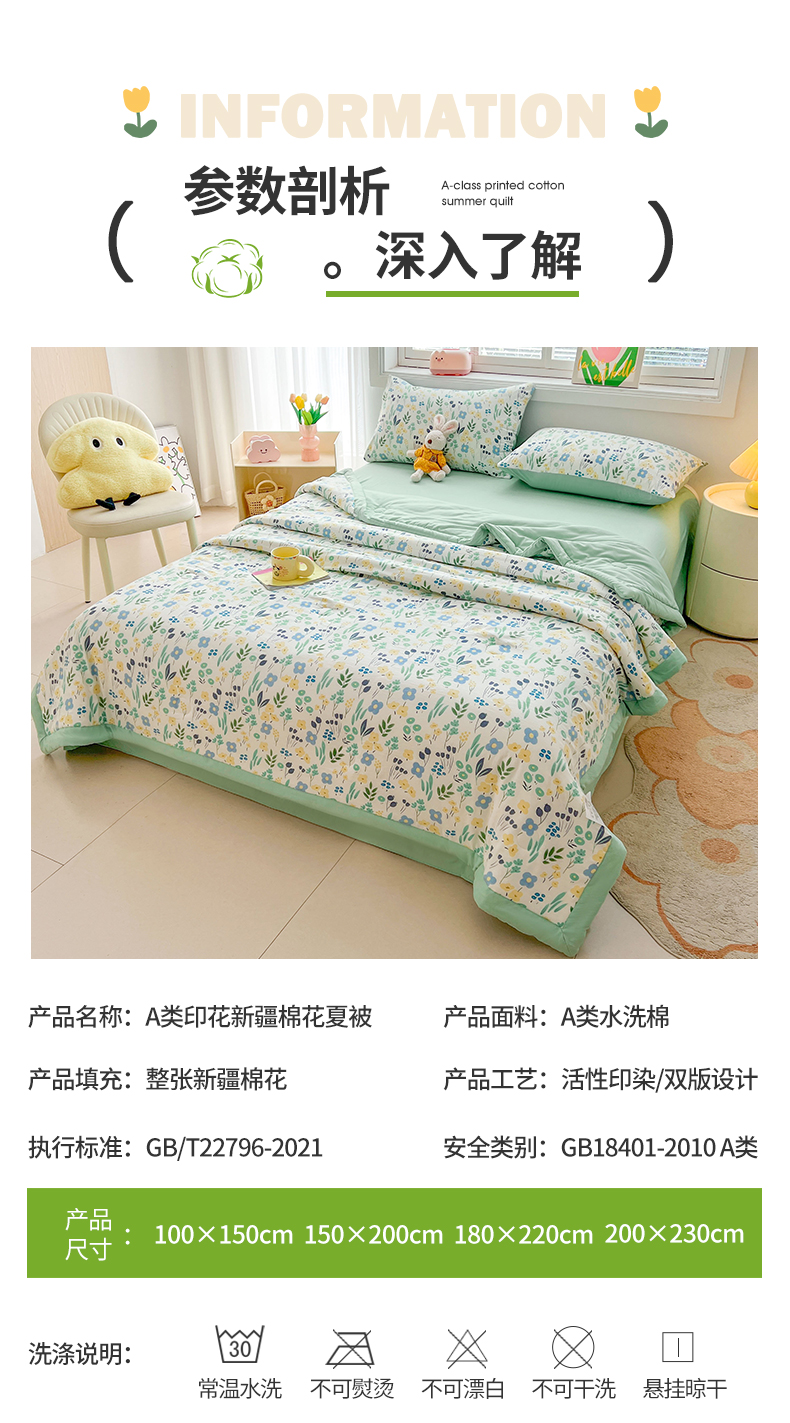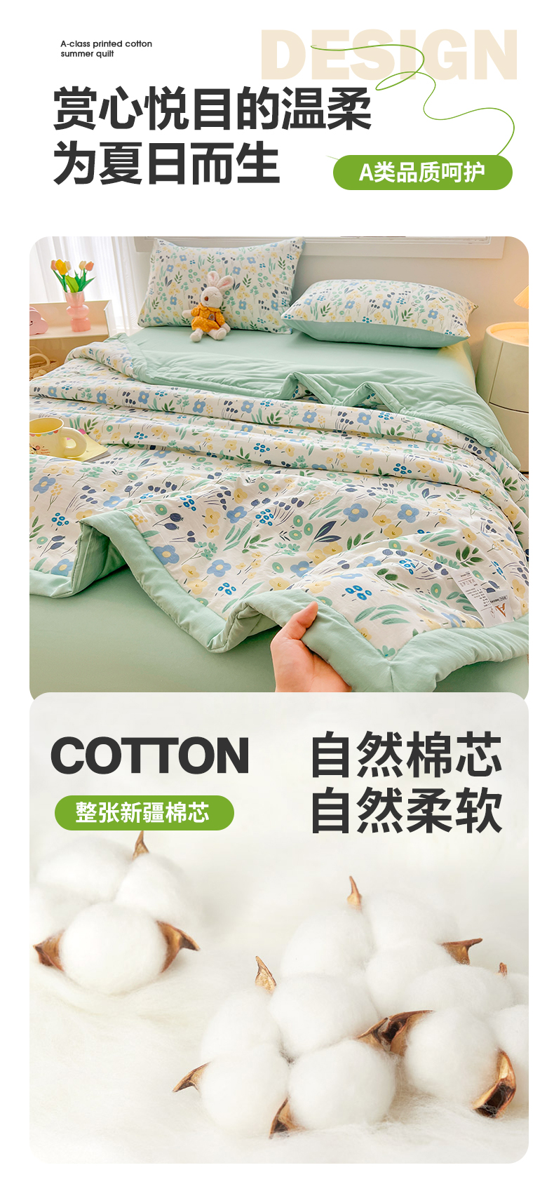 商品名称:晓时候 2025新款水洗棉夏被新疆棉花被印花夏凉被空调被薄被子 清新小花